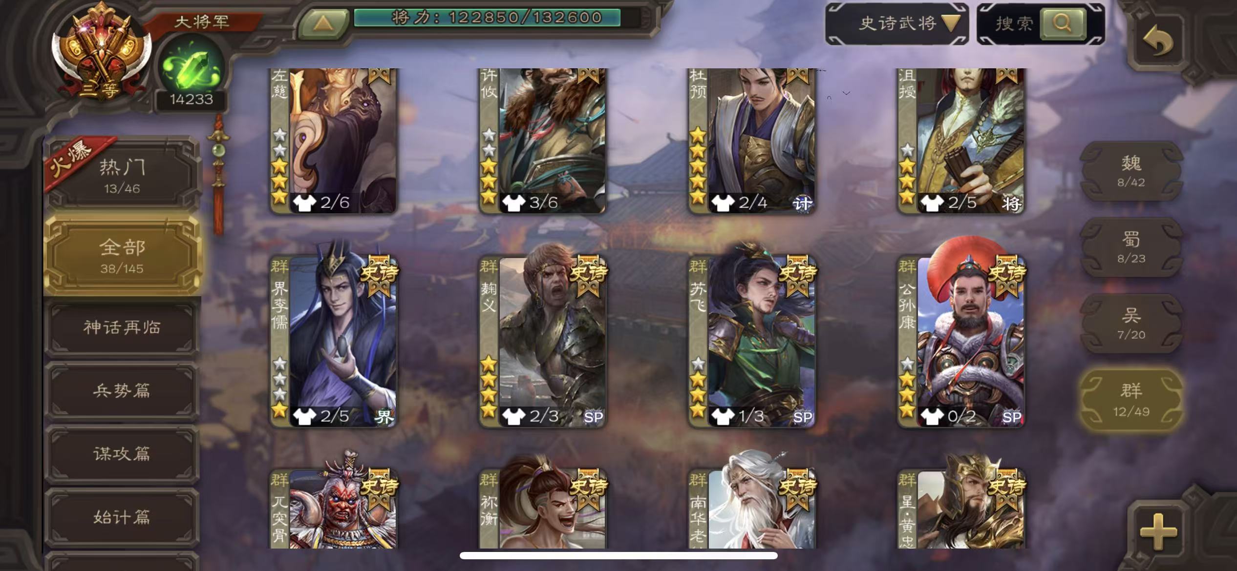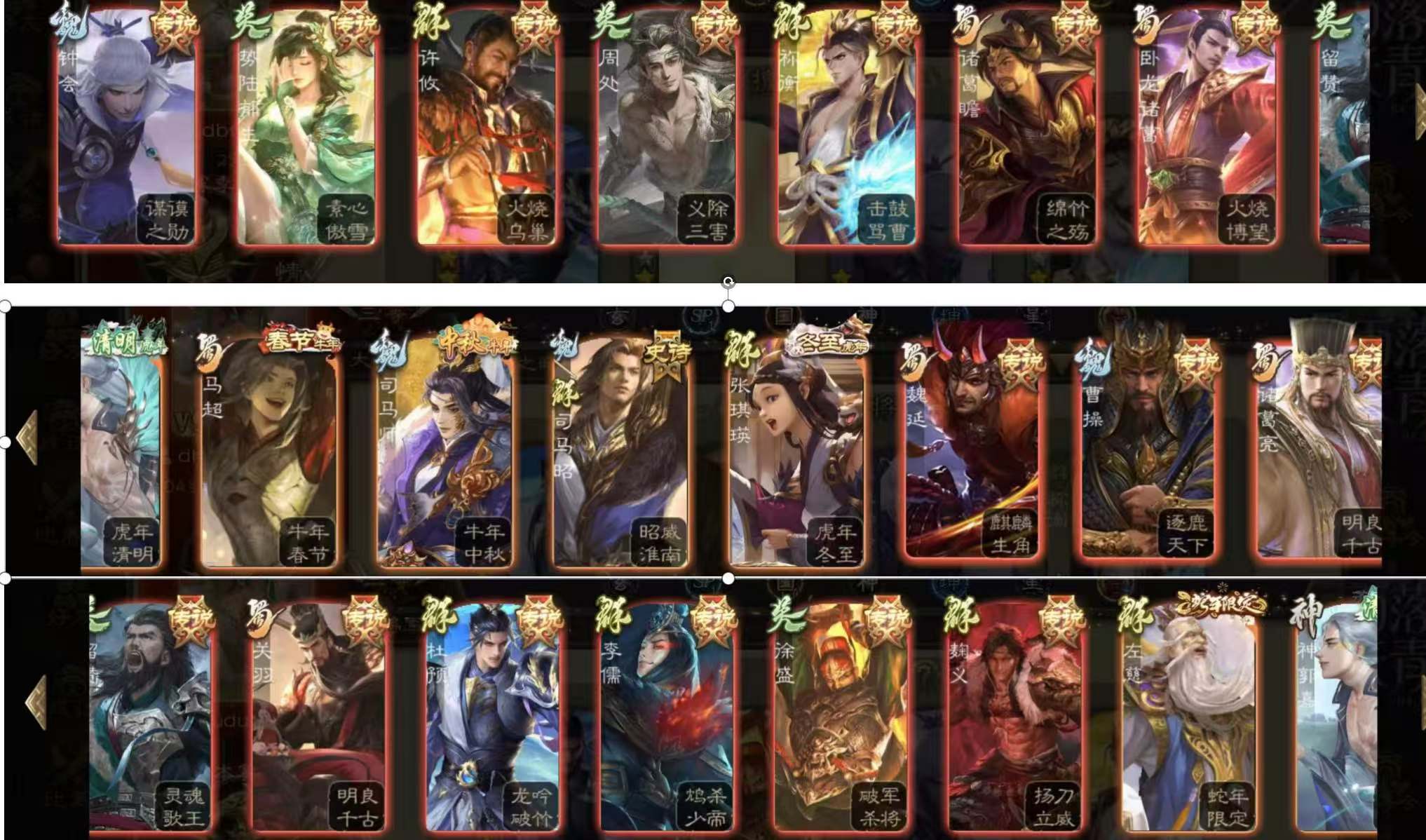 商品描述:大将军23宝珠38史诗动态杜预动势陆郁生动态猴子 动态留赞 动态司马师 动态大宝 动态界钟会 动态诸葛谵 动态白马 戏志才 南华老仙 星黄忠 神赵云 神吕布友徐庶一百多盒子一万将魂