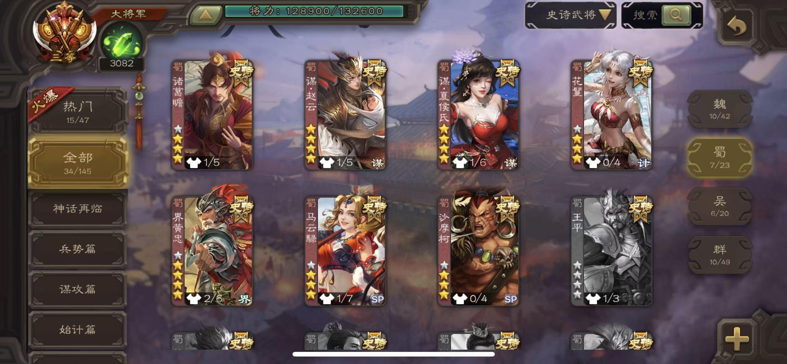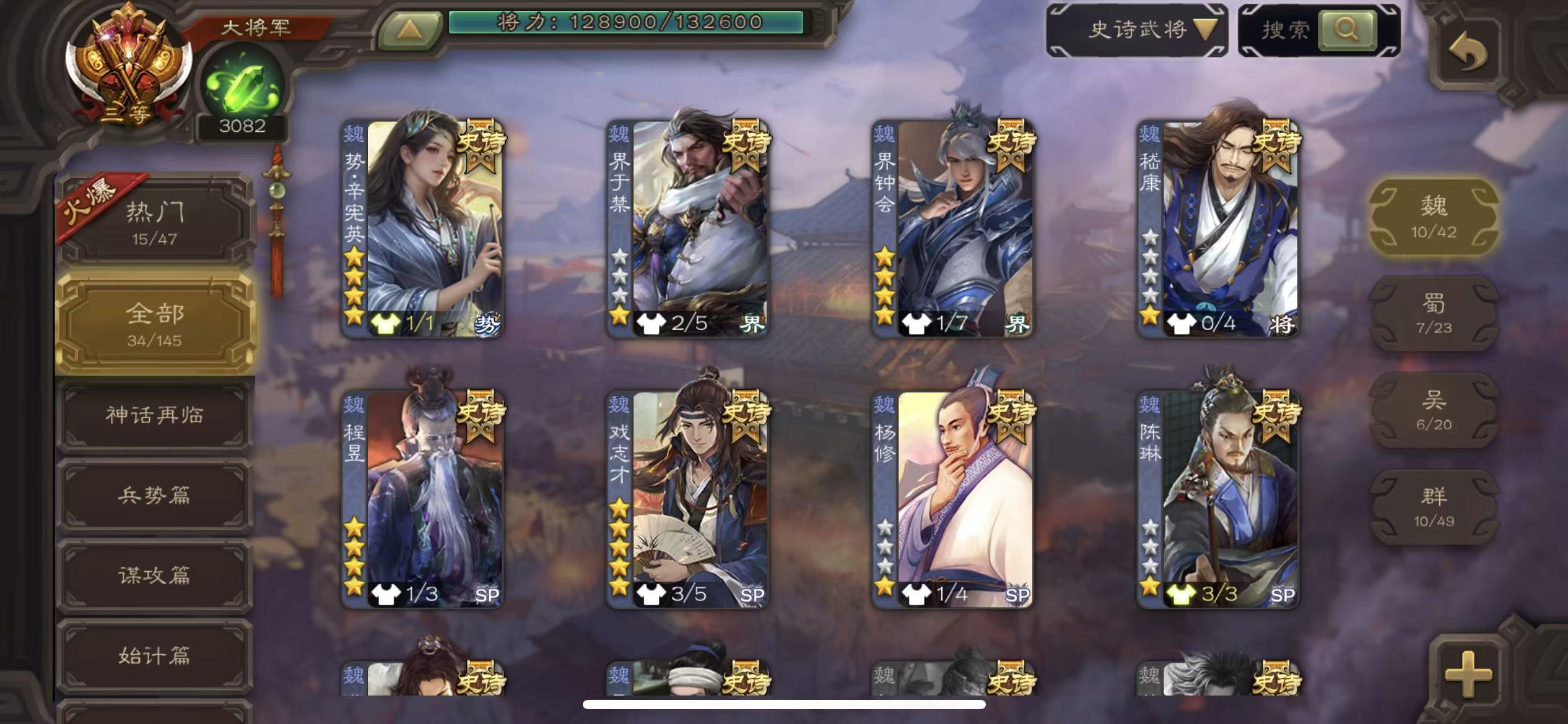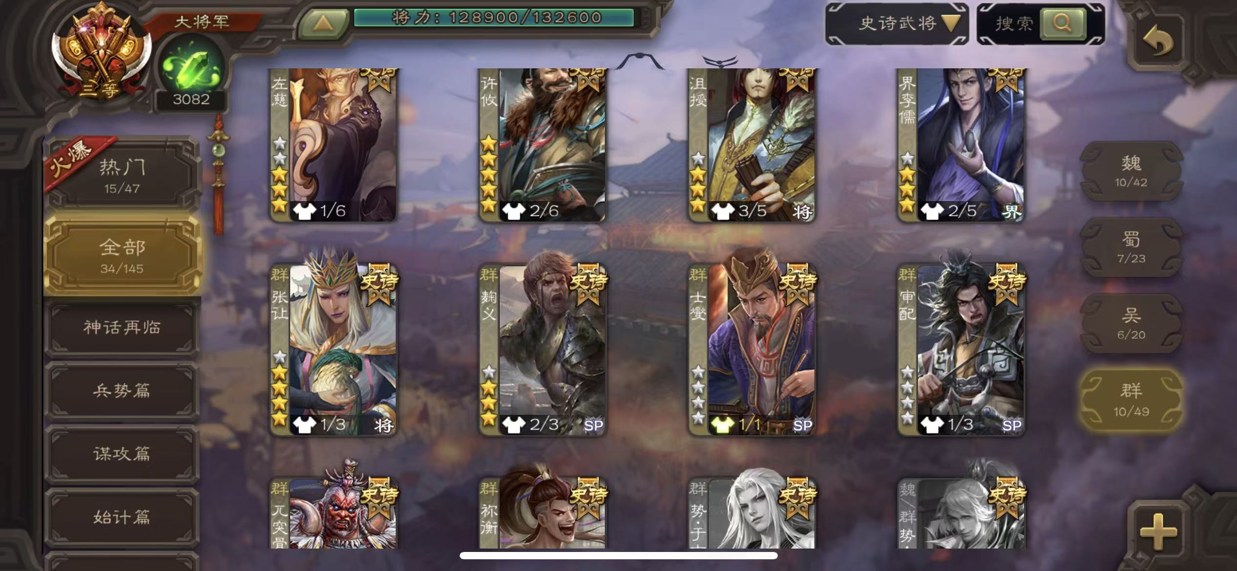 商品描述:大将军34史诗动态势辛宪英马钧势太史慈动大宝动留赞动猴子动许攸动周处三卡