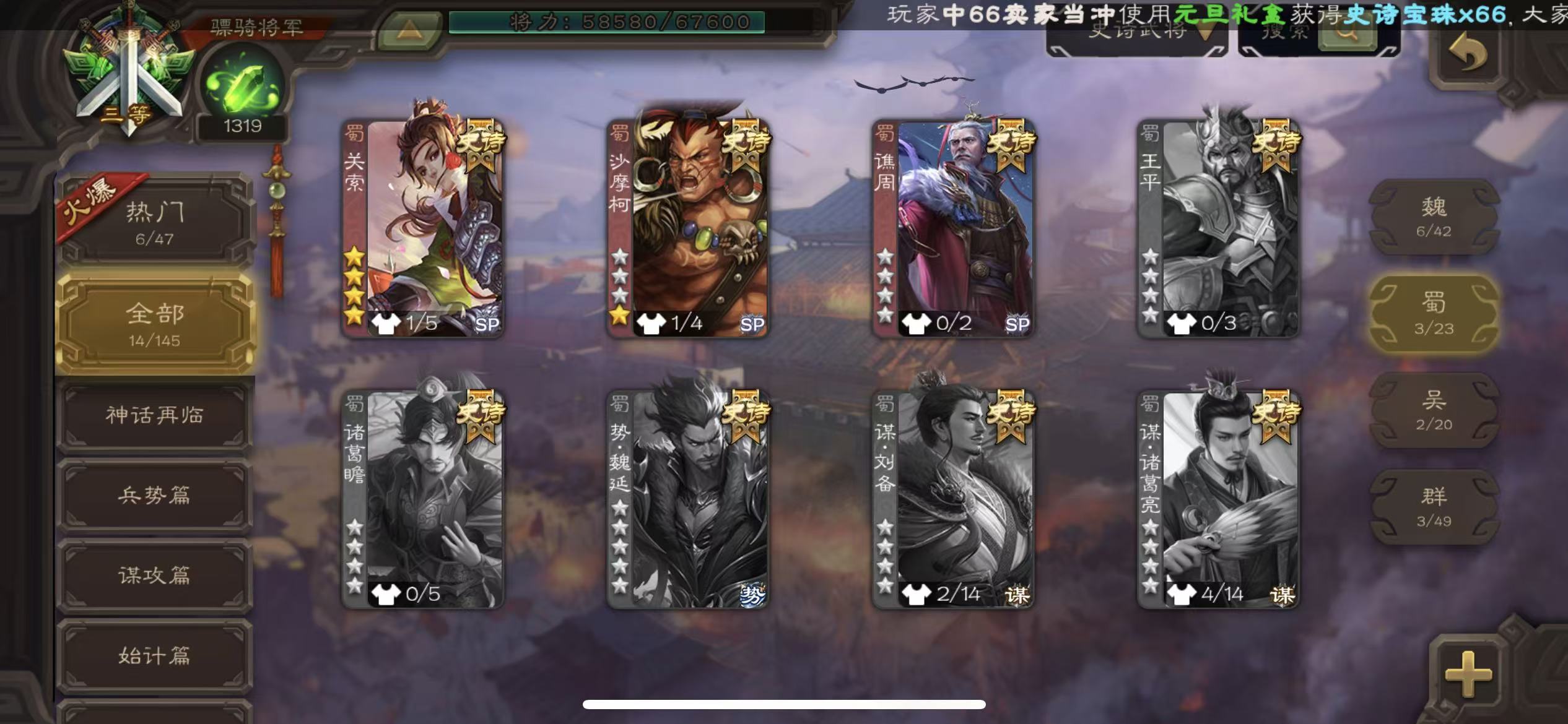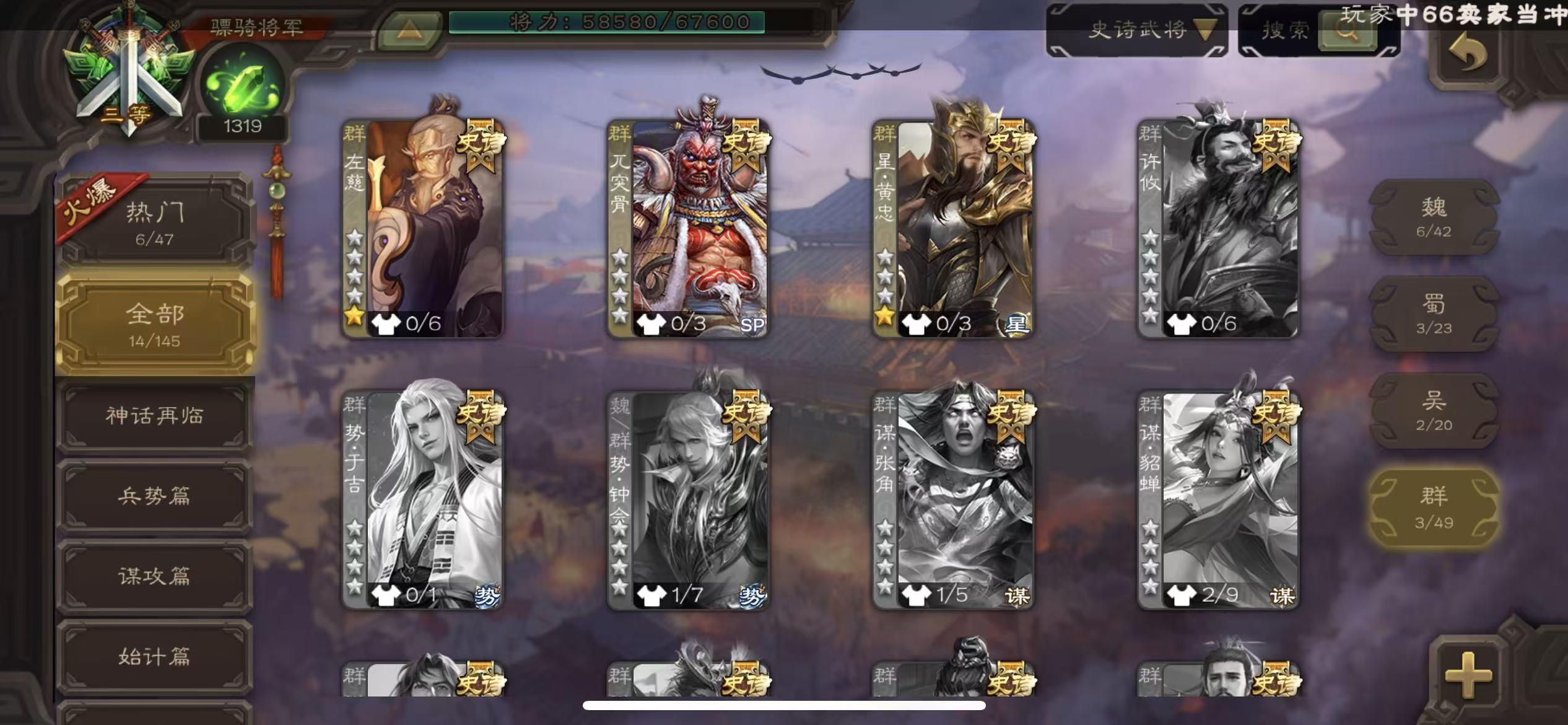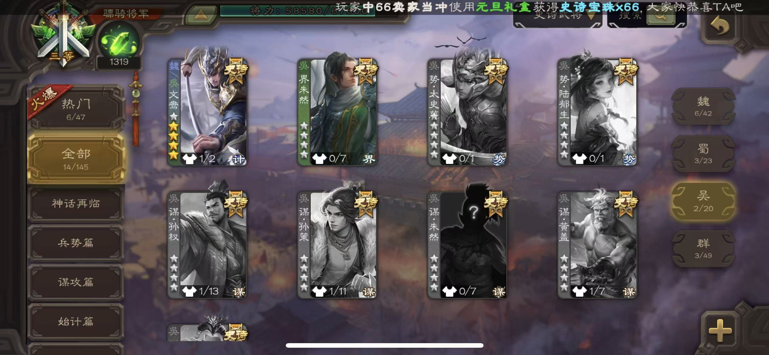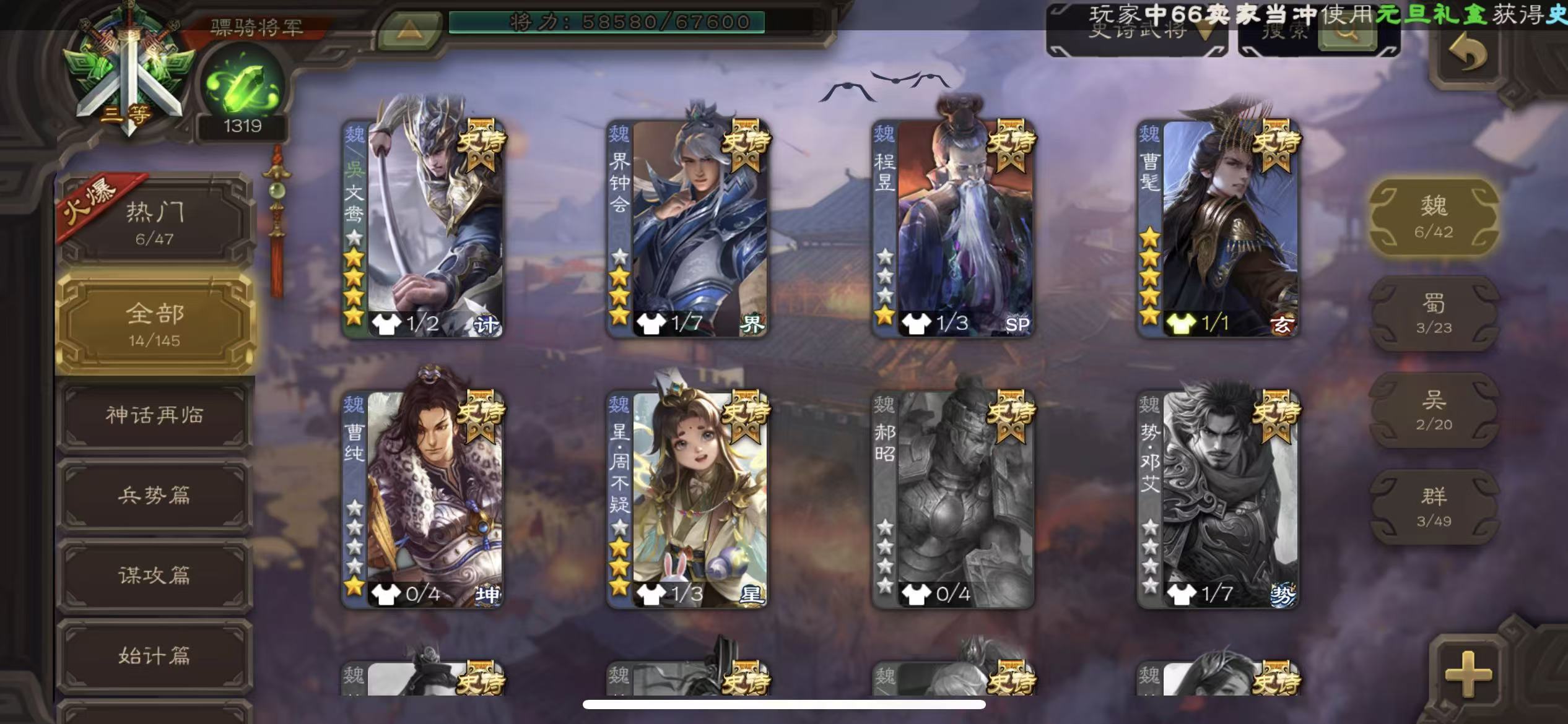 商品描述:年卡骠骑回廊动态曹髦动态文鸯界钟会动态关索星黄忠动态神陆逊三卡天子令sp赵云