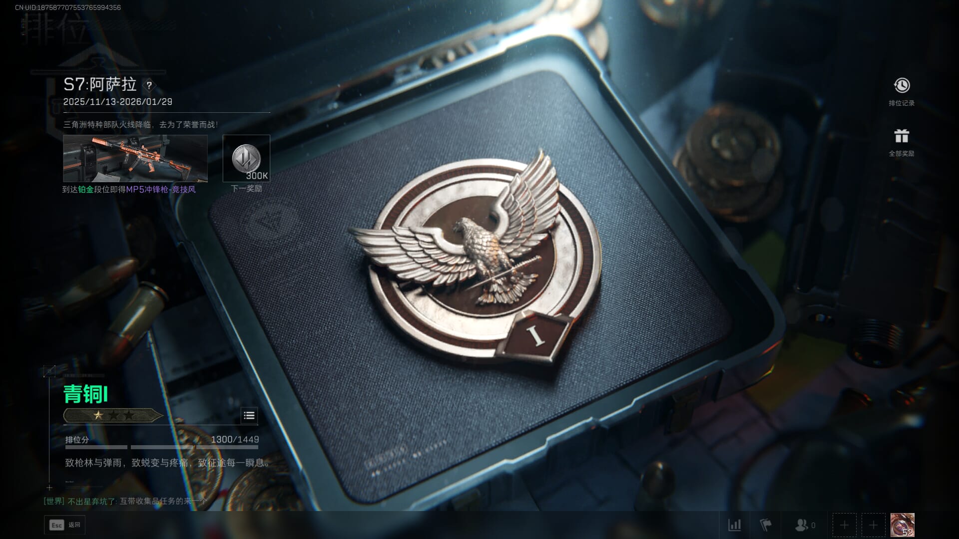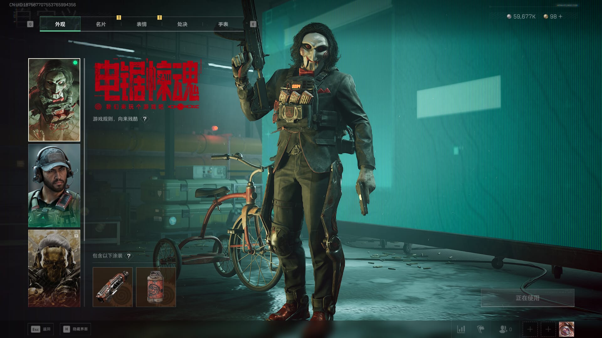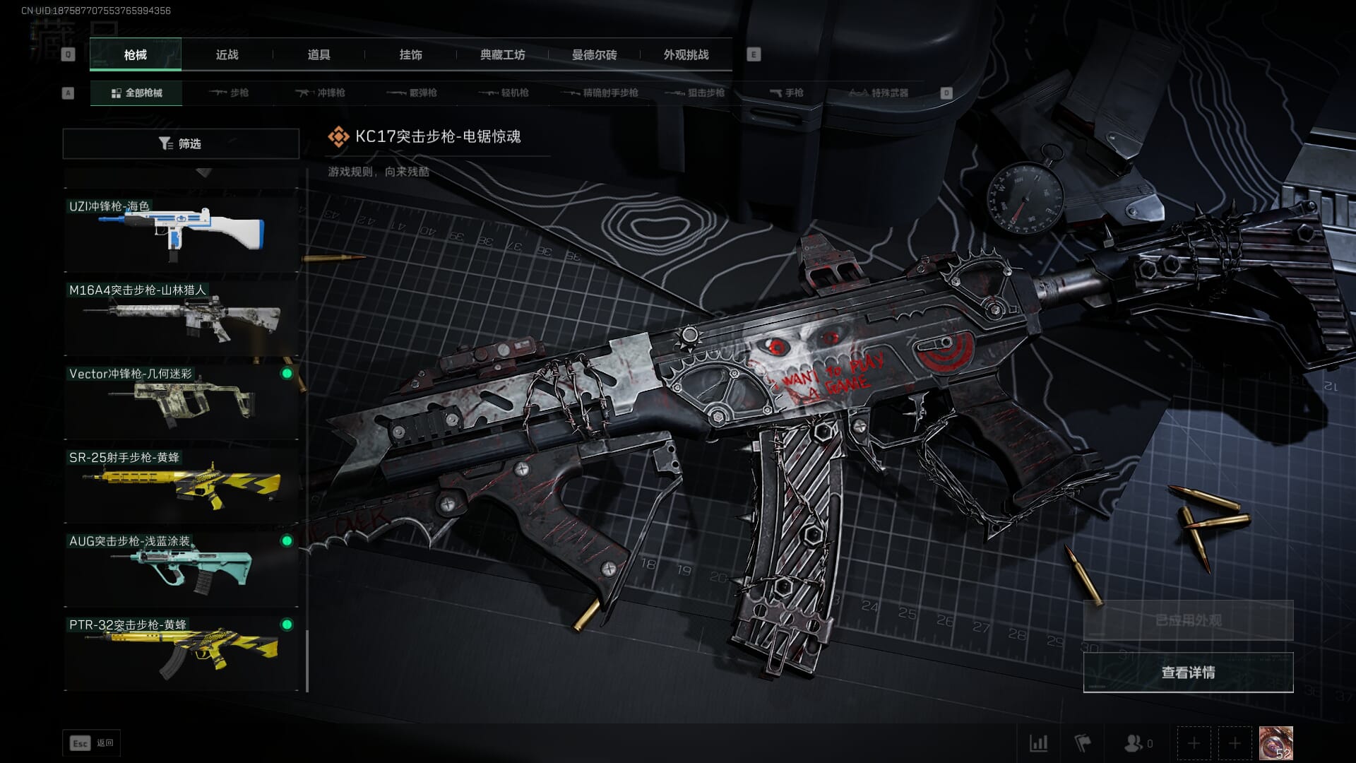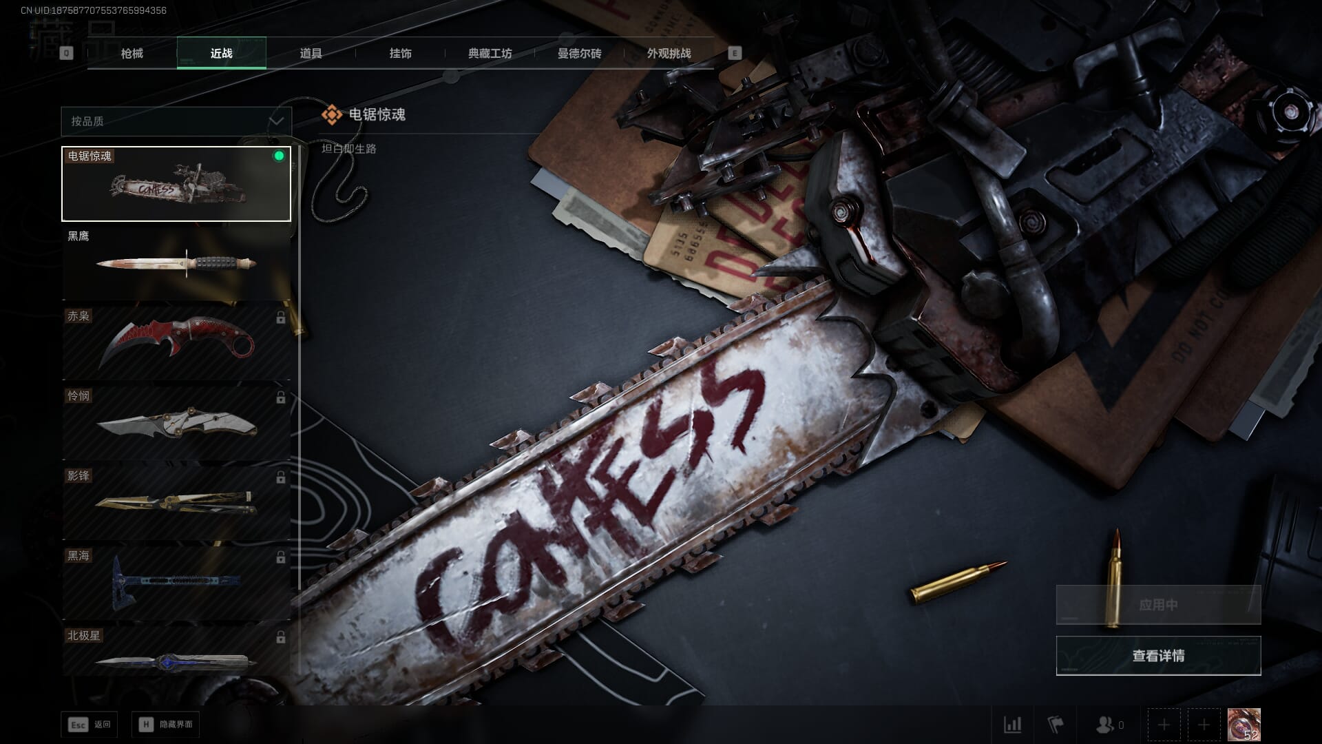 总资产:62.2M,哈夫币:84W,武器皮肤:5,黑鹰_,战场60级:列兵,【安全箱】基础安全箱;【特勤处等级】仓库LV.5,靶场LV.4,训练中心LV.4;【干员皮肤】骇爪维什戴尔,红狼电锯惊魂;【近战武器】近战武器-黑鹰;【步枪皮肤】M4A1突击步枪-阿米娅,SCAR-H战斗步枪-启航,KC17突击步枪-电锯惊魂;【狙击步枪皮肤】R93狙击步枪-维什戴尔;