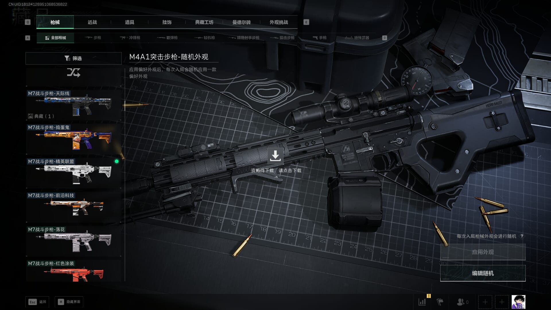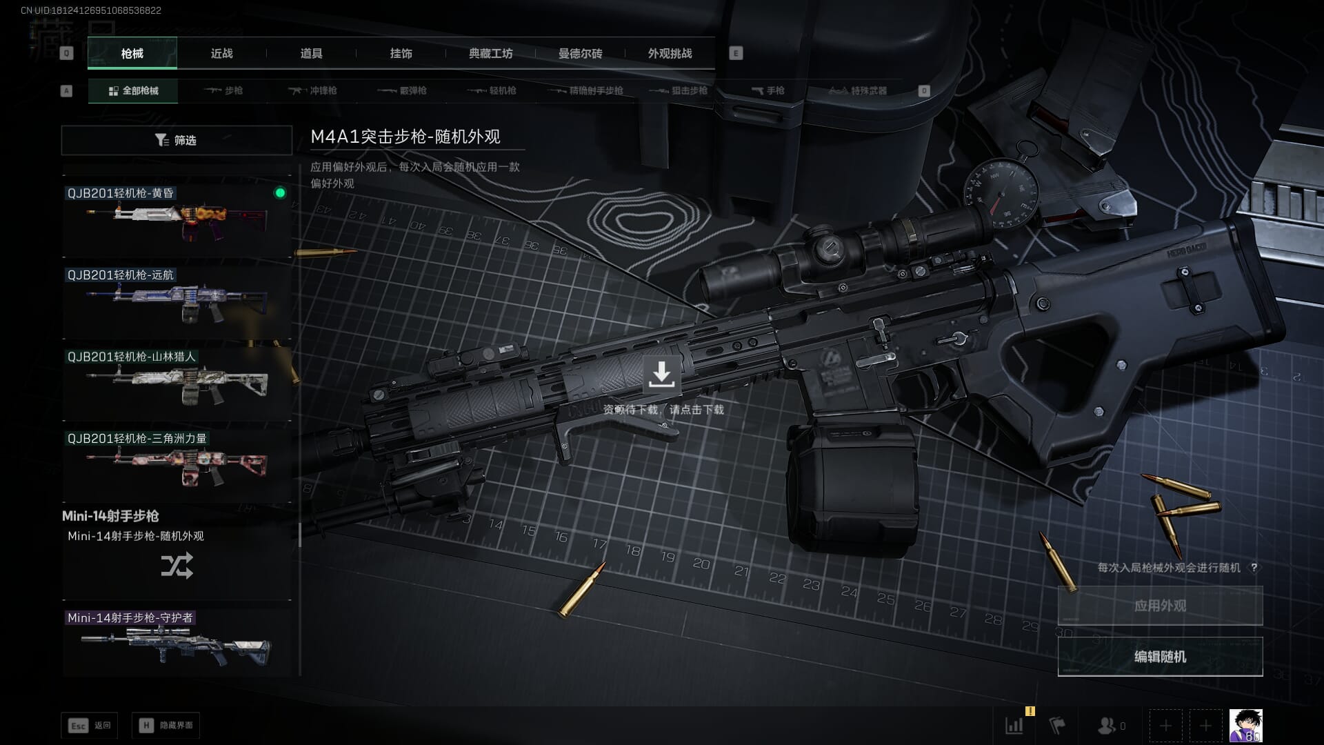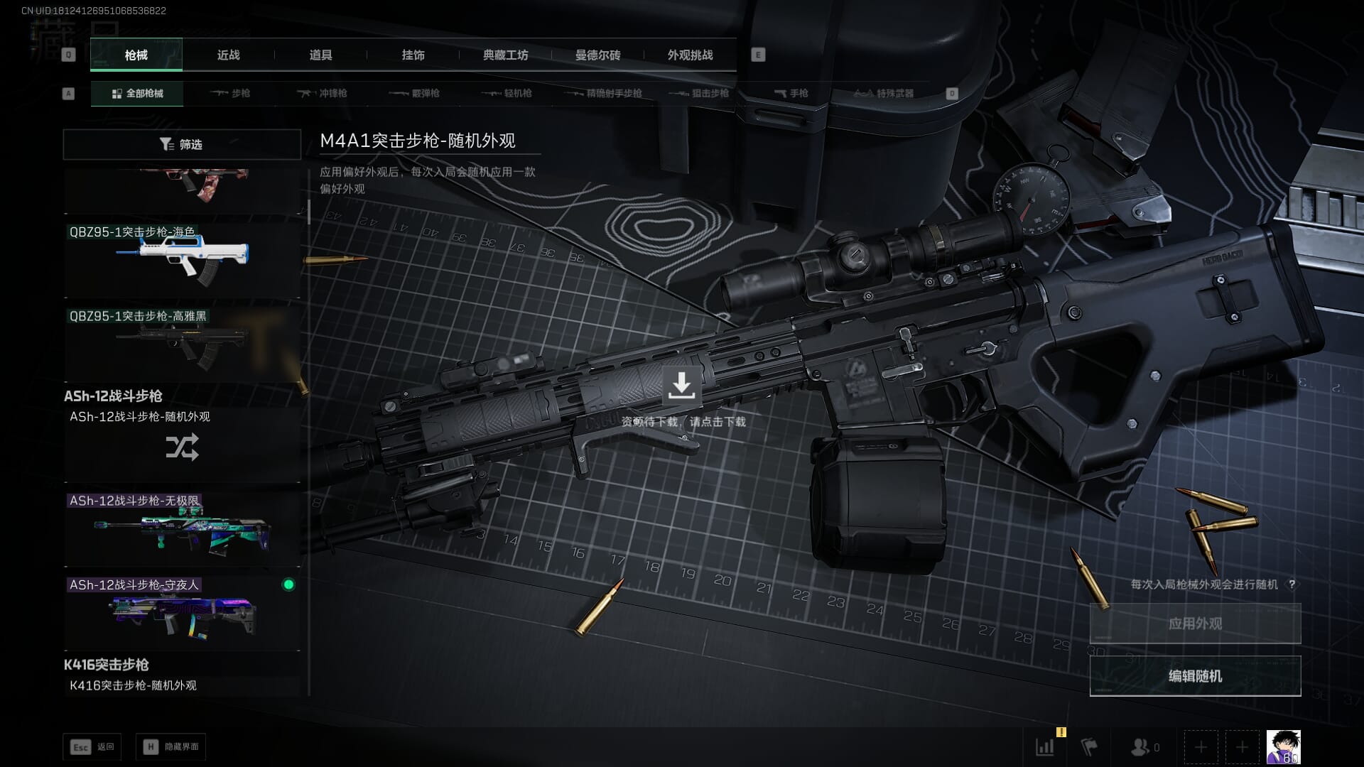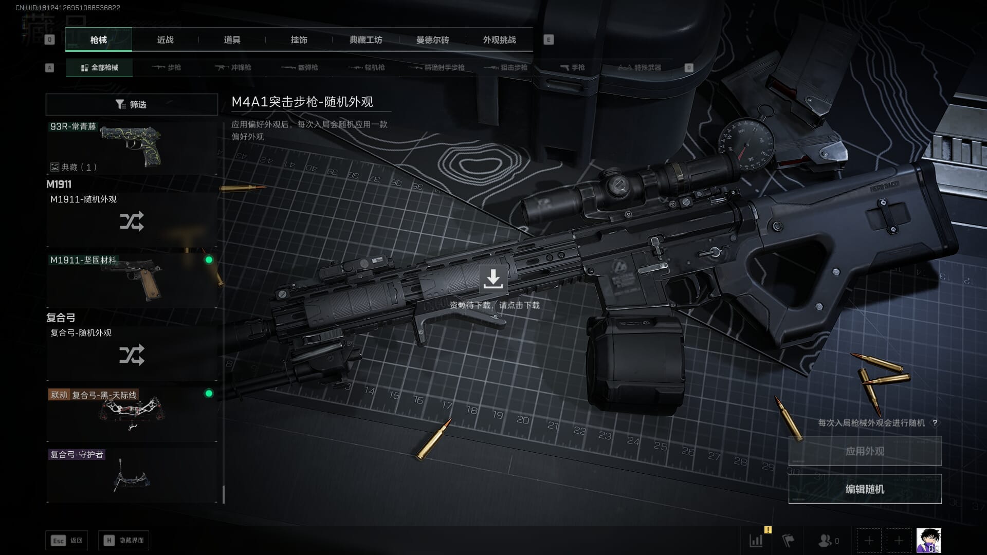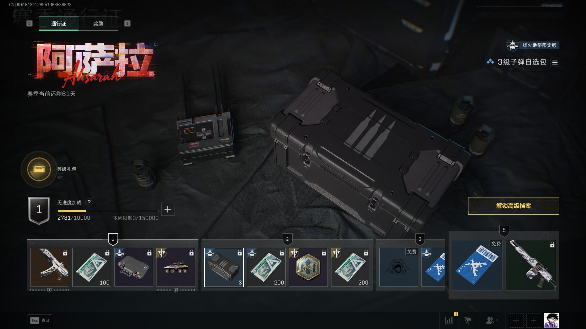 总资产:62.2M,哈夫币:84W,武器皮肤:5,黑鹰_,战场60级:列兵,【安全箱】基础安全箱;【特勤处等级】仓库LV.5,靶场LV.4,训练中心LV.4;【干员皮肤】骇爪维什戴尔,红狼电锯惊魂;【近战武器】近战武器-黑鹰;【步枪皮肤】M4A1突击步枪-阿米娅,SCAR-H战斗步枪-启航,KC17突击步枪-电锯惊魂;【狙击步枪皮肤】R93狙击步枪-维什戴尔;