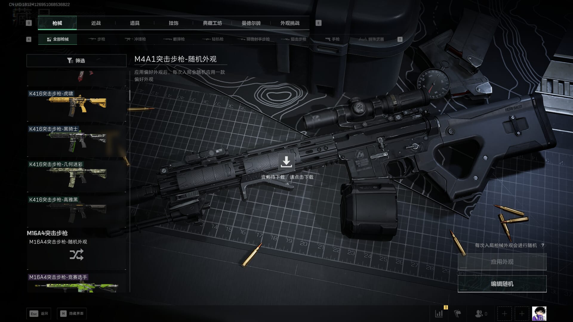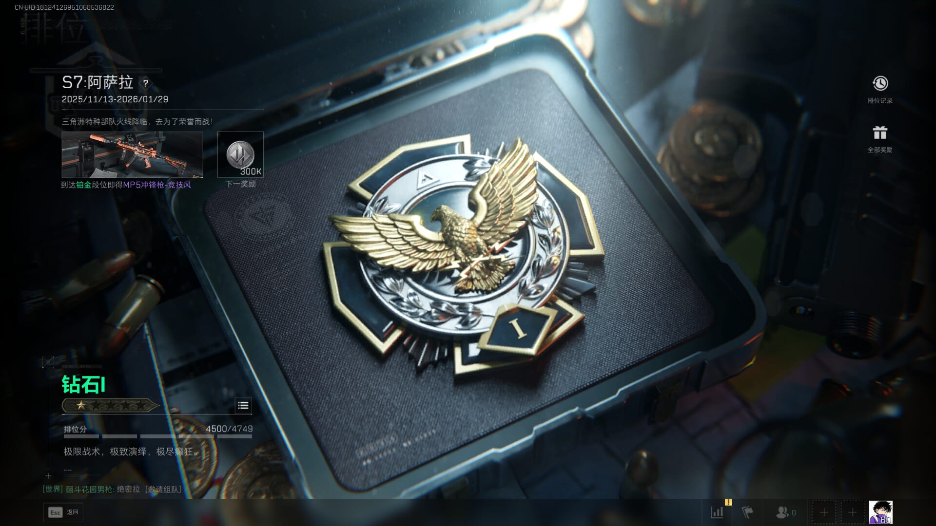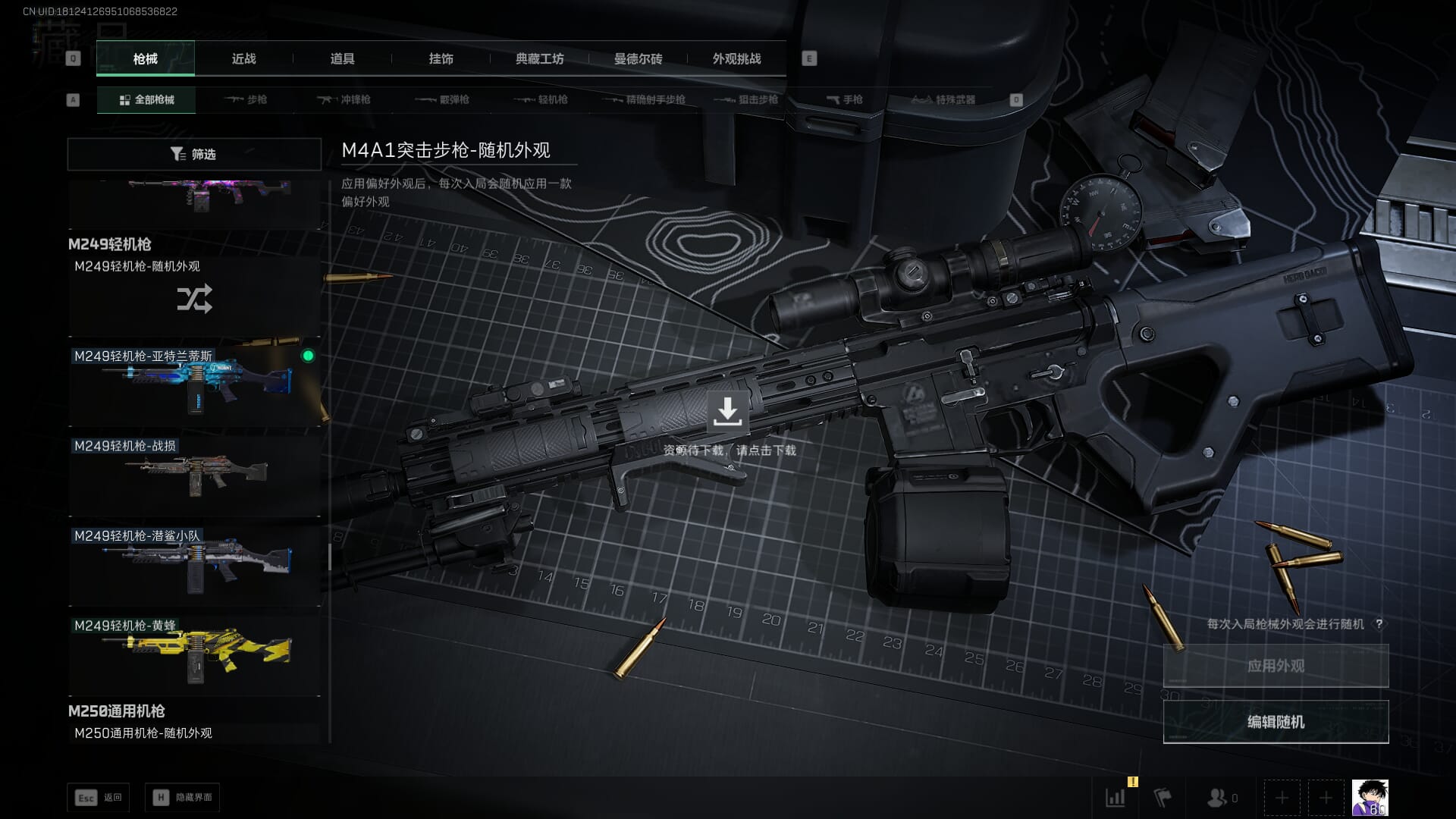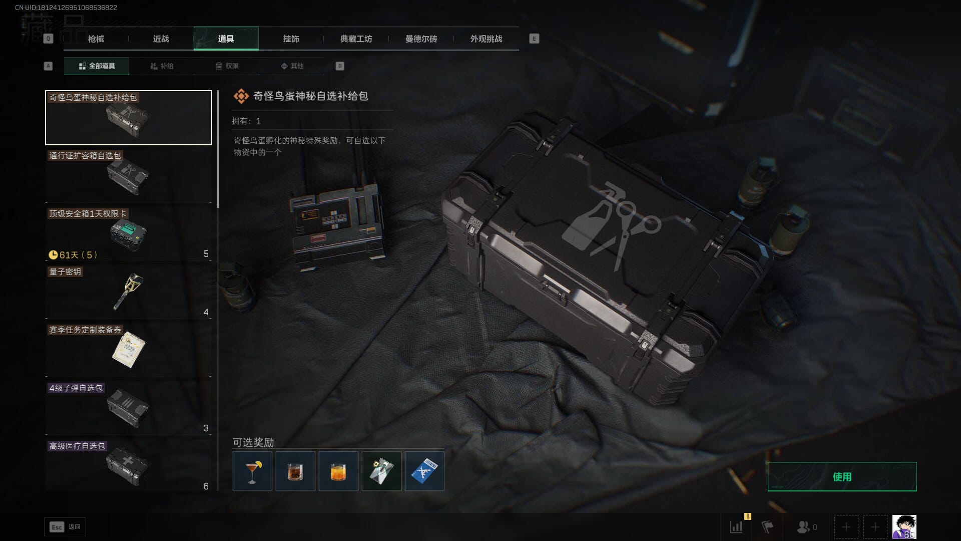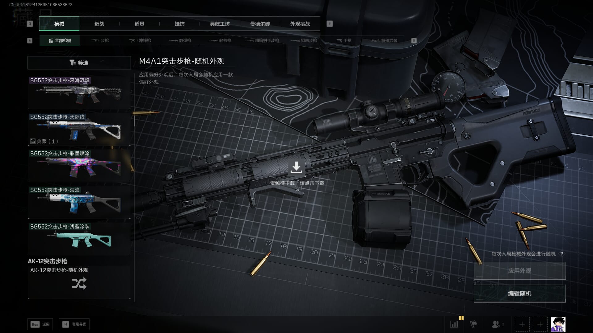 总资产:62.2M,哈夫币:84W,武器皮肤:5,黑鹰_,战场60级:列兵,【安全箱】基础安全箱;【特勤处等级】仓库LV.5,靶场LV.4,训练中心LV.4;【干员皮肤】骇爪维什戴尔,红狼电锯惊魂;【近战武器】近战武器-黑鹰;【步枪皮肤】M4A1突击步枪-阿米娅,SCAR-H战斗步枪-启航,KC17突击步枪-电锯惊魂;【狙击步枪皮肤】R93狙击步枪-维什戴尔;