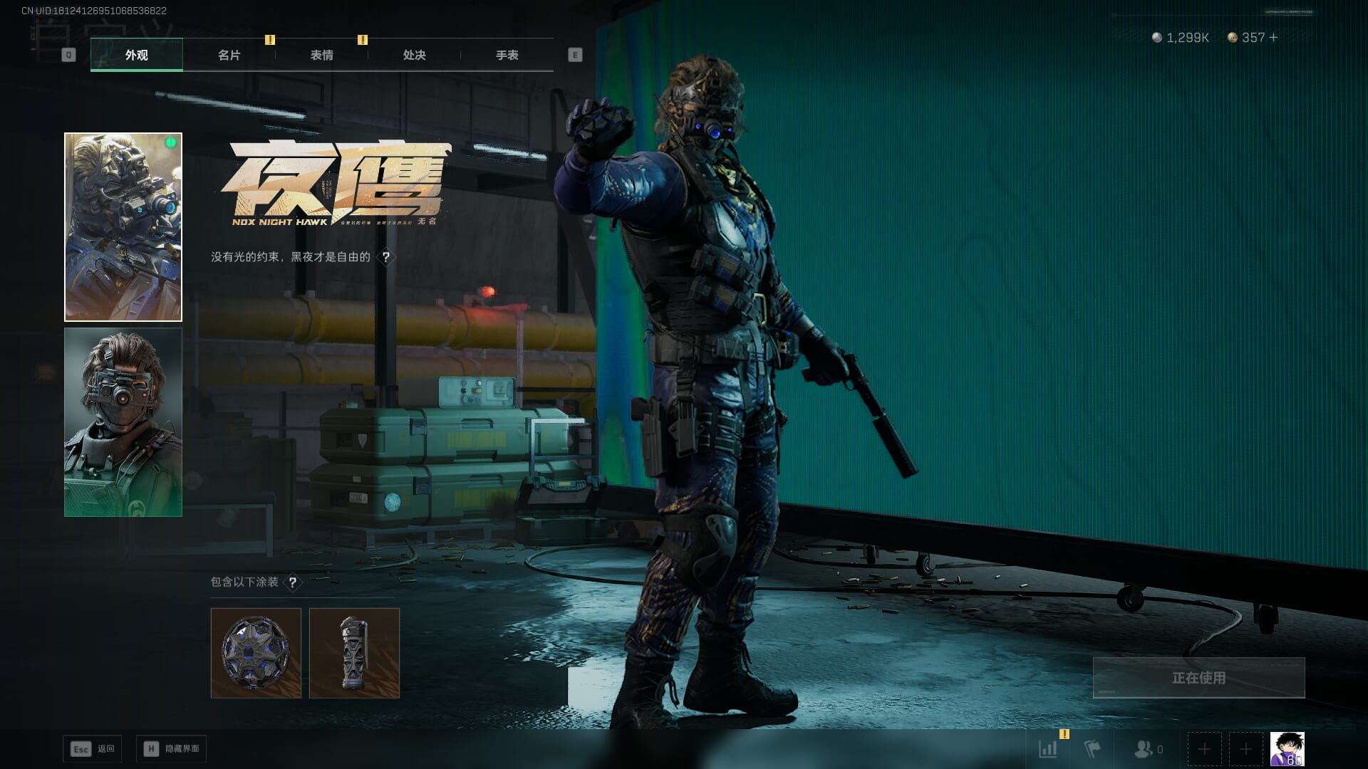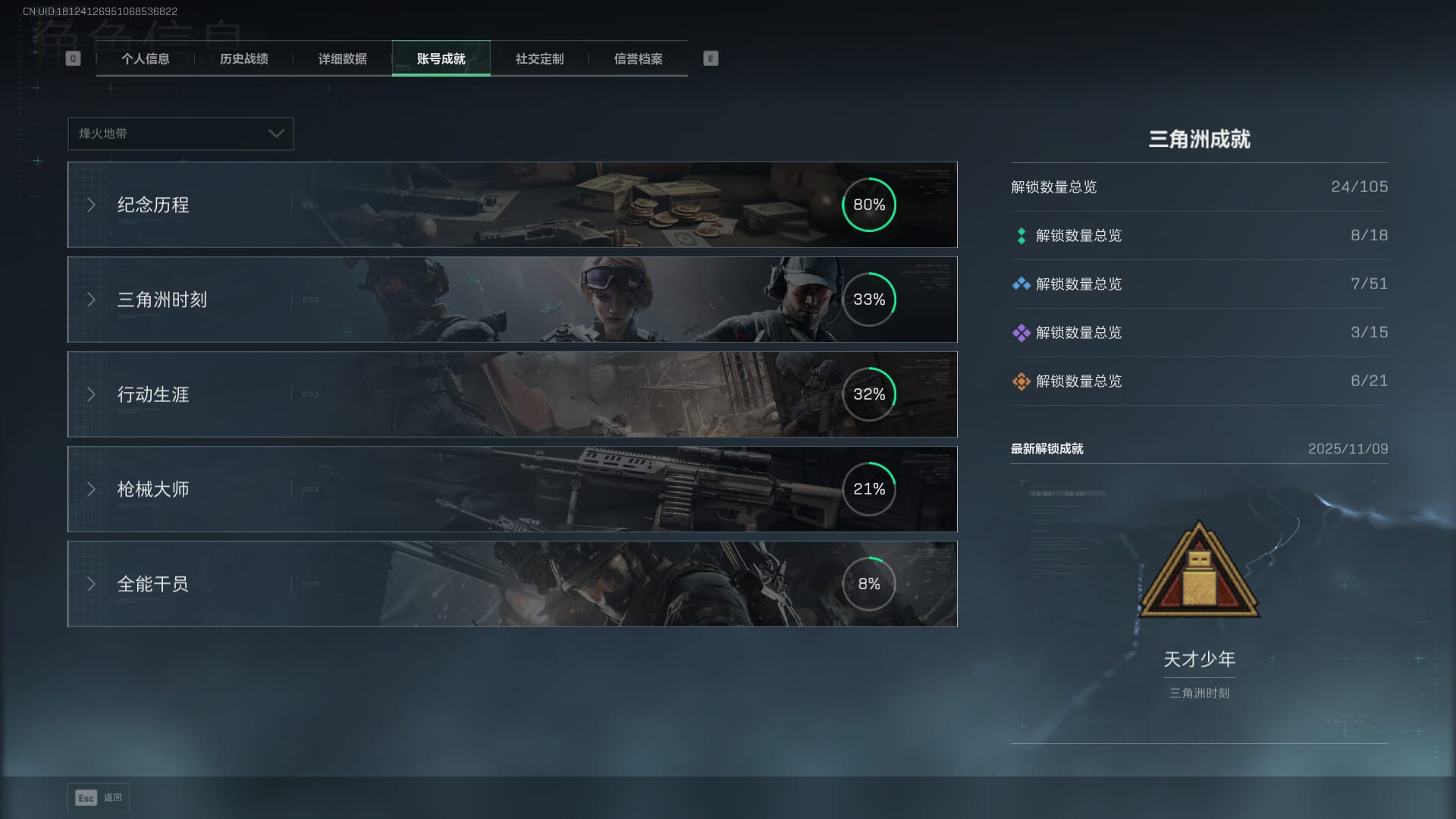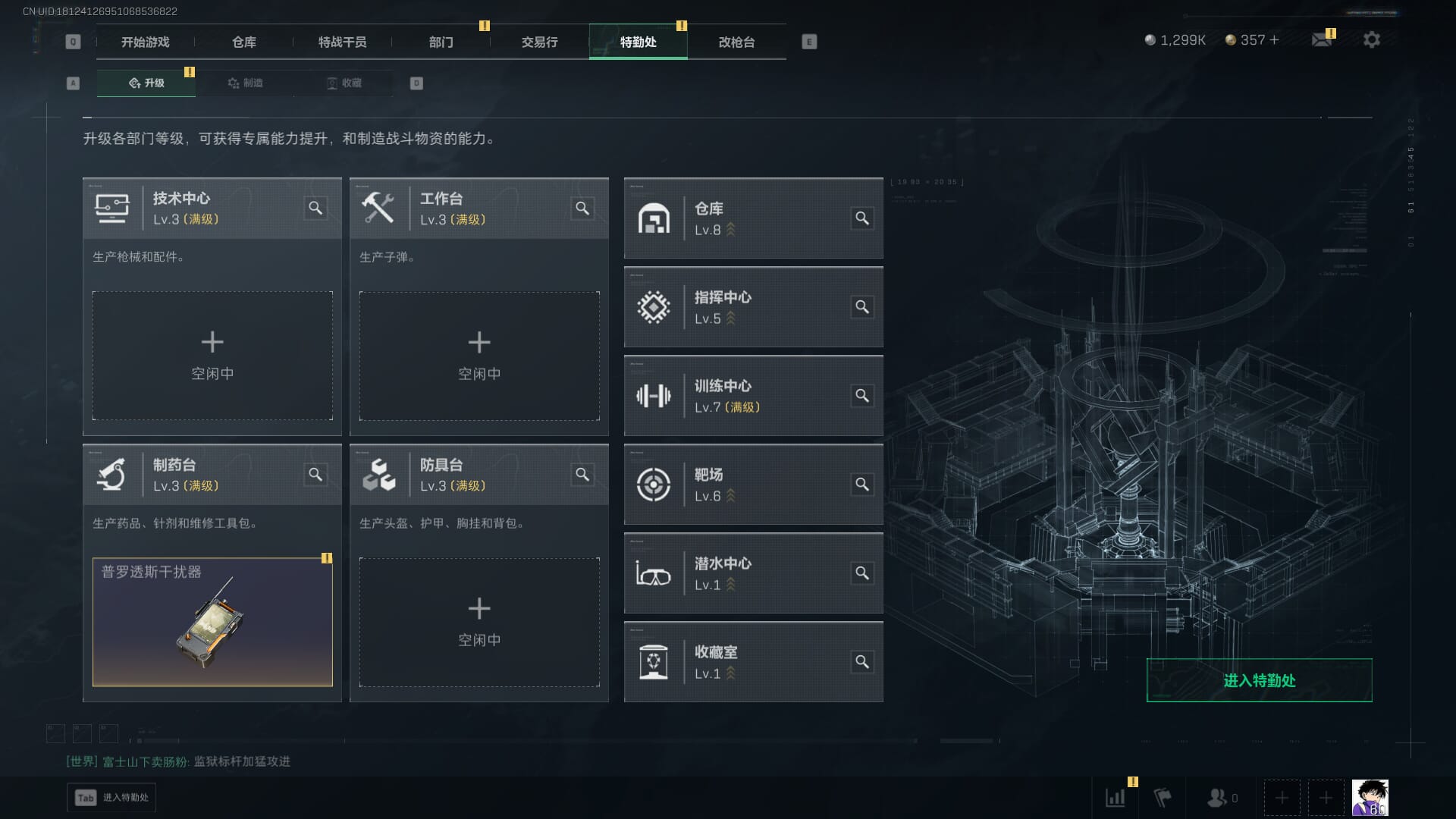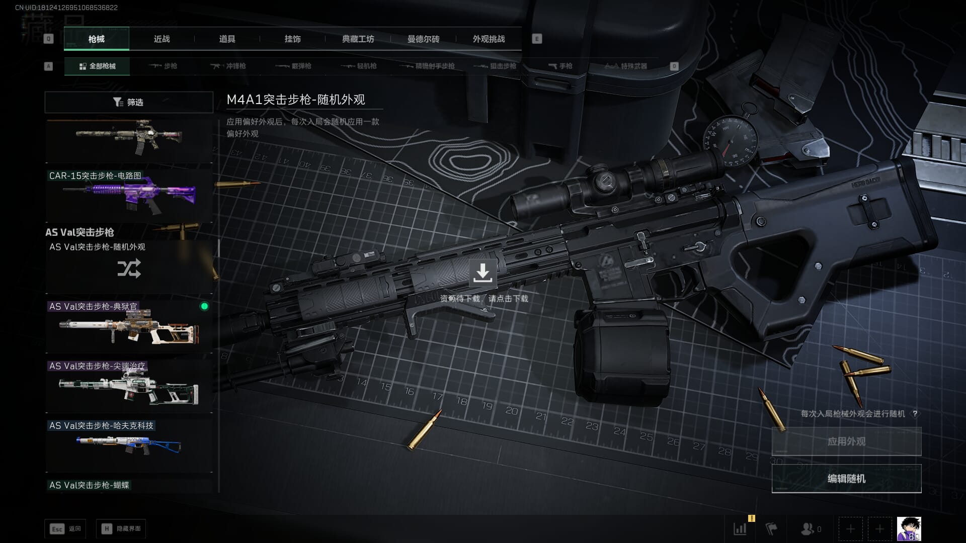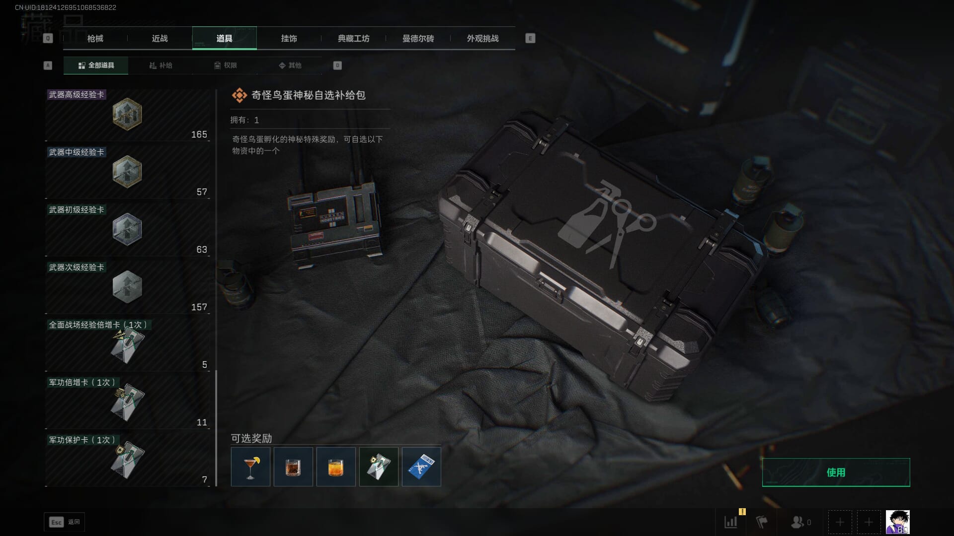 总资产:62.2M,哈夫币:84W,武器皮肤:5,黑鹰_,战场60级:列兵,【安全箱】基础安全箱;【特勤处等级】仓库LV.5,靶场LV.4,训练中心LV.4;【干员皮肤】骇爪维什戴尔,红狼电锯惊魂;【近战武器】近战武器-黑鹰;【步枪皮肤】M4A1突击步枪-阿米娅,SCAR-H战斗步枪-启航,KC17突击步枪-电锯惊魂;【狙击步枪皮肤】R93狙击步枪-维什戴尔;