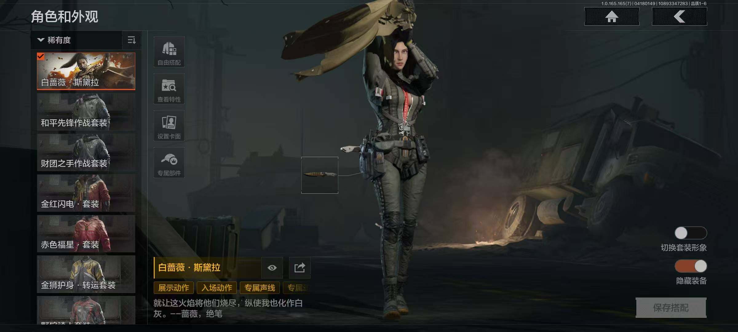 【AQD346】段位:新锐/仓库价值(百万):12/下弦月/收割者/地脉深处FAL/镀火熔金H416/告丧夜曲AR57/旧王圣谕QBZ191/利齿风暴MPX【AQZG2152】等级:30/段位:专家/仓库价值(百万):189.4/柯恩币:100000000/急袭弯刀/下弦月/寒牙手刺/裁决手杖剑/幽燕钛玄/苍穹利爪/盘牙彻甲短刃/深潜行者II/黑卡蒂/冥河/蝮蛇/白蔷薇斯黛拉/危崖魅影作战服/苍白隐者伪装服/长缨风擎AX50/棱光裂变QBU191/冰河碎影MK14/千炼铁阵MK14/黑金弹头P90/利齿风暴MPX/浮鳞影青QBZ192/旧王圣谕QBZ191/玉擎天工AN94/林中人FAL/竞技FAL/天工炉火A545/冲刺极限QBZ192