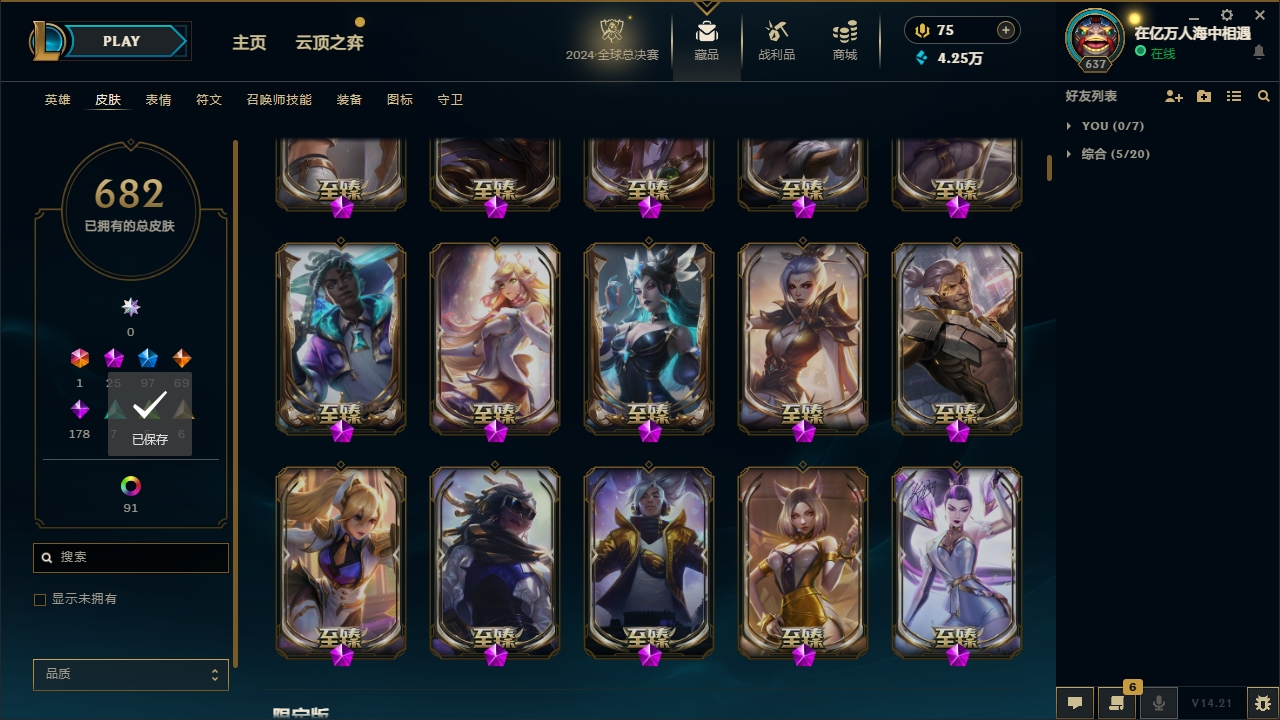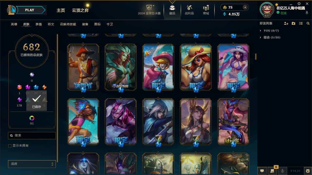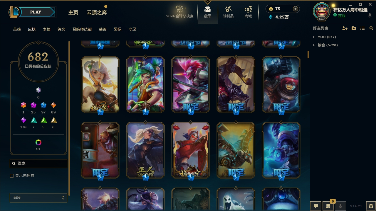【网通】【德玛西亚】141英雄-451皮肤-11炫彩【网通】【无畏先锋】170英雄-292皮肤-95炫彩