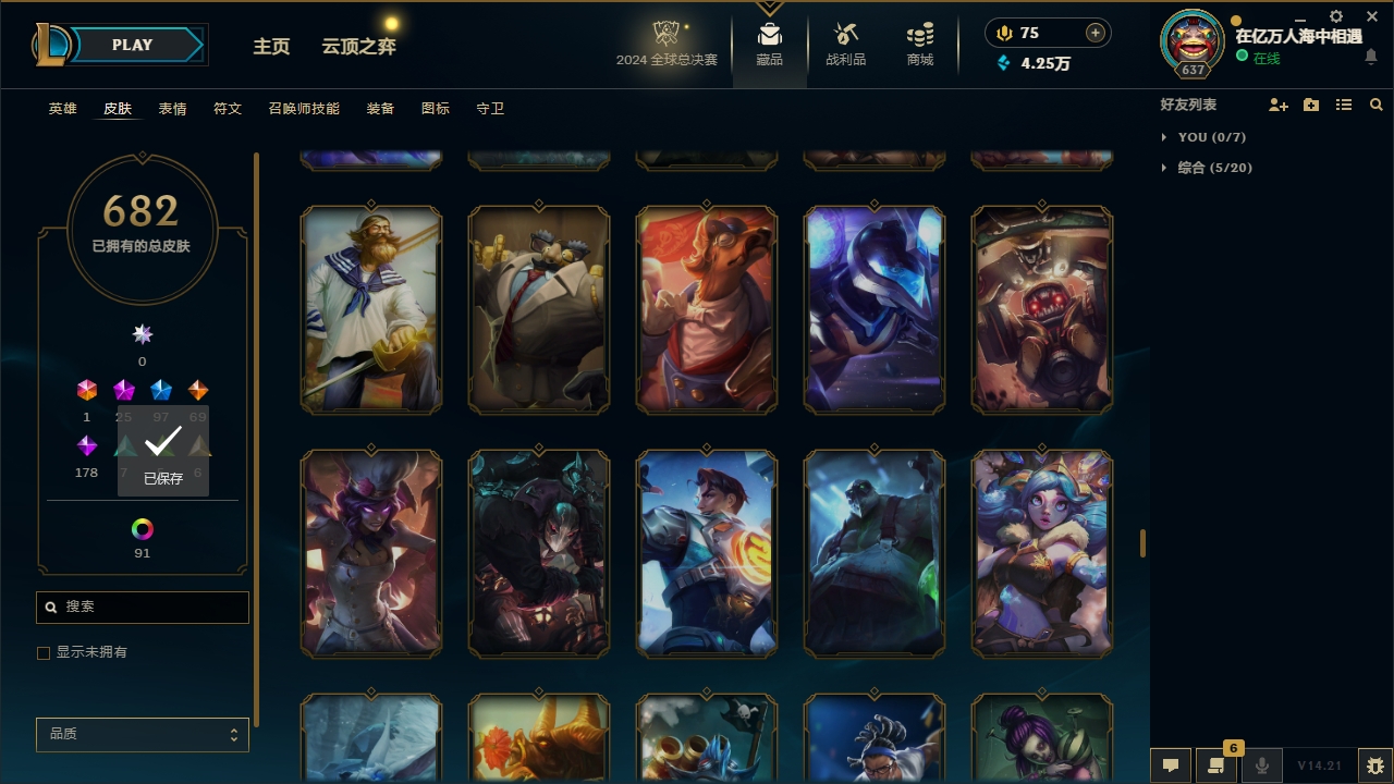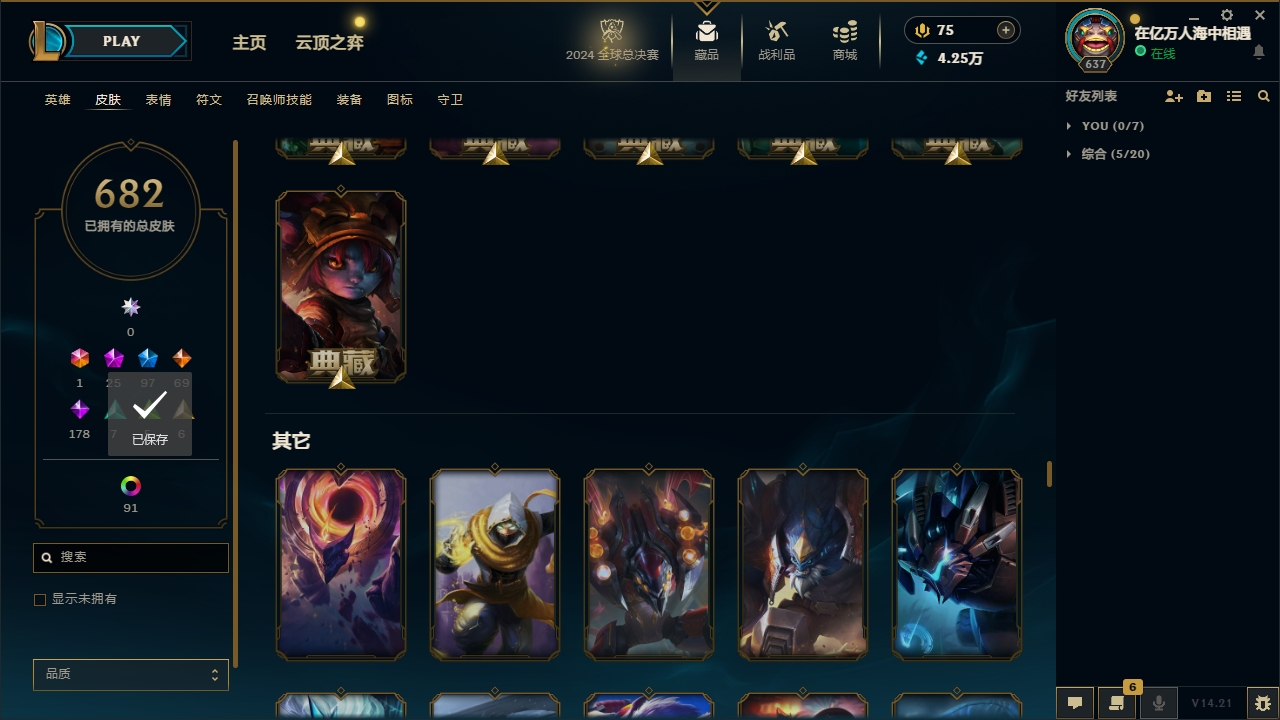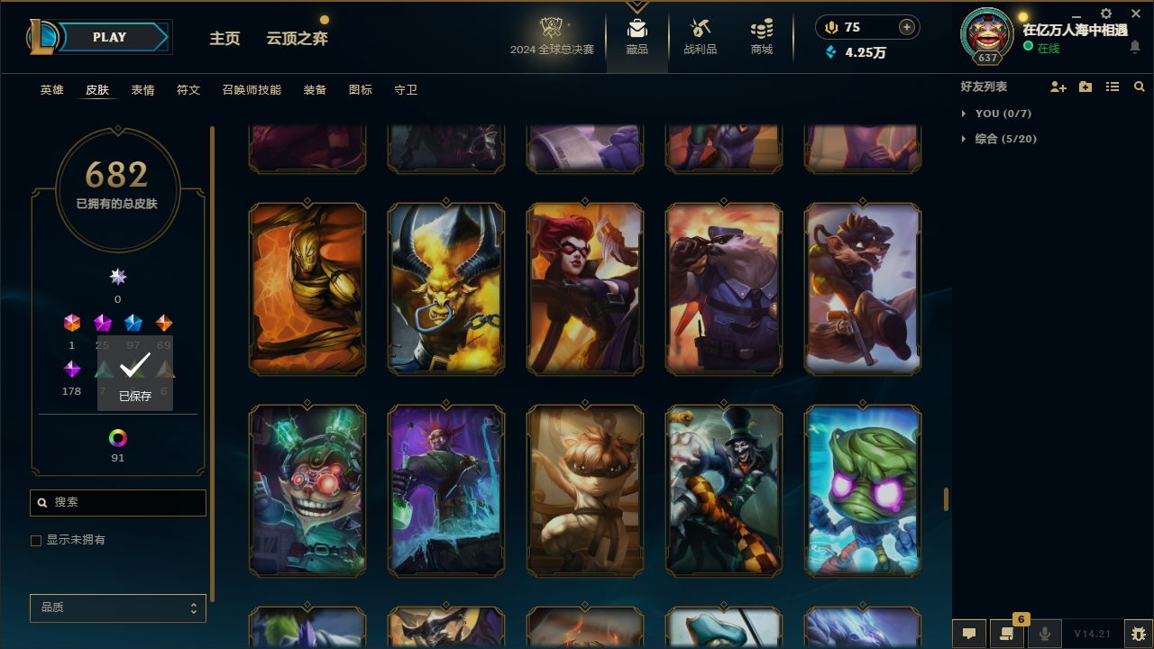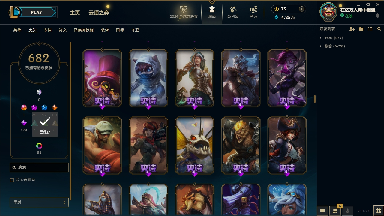 【网通】【德玛西亚】141英雄-451皮肤-11炫彩【网通】【无畏先锋】170英雄-292皮肤-95炫彩