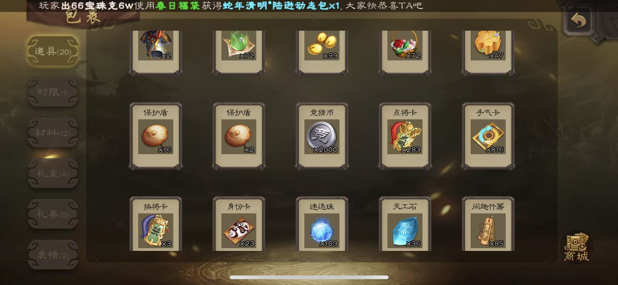 骠骑动小鸟动司马昭大宝神赵云士兵火龙果势魏延5史诗8万羽毛8500将魂125招募令三卡