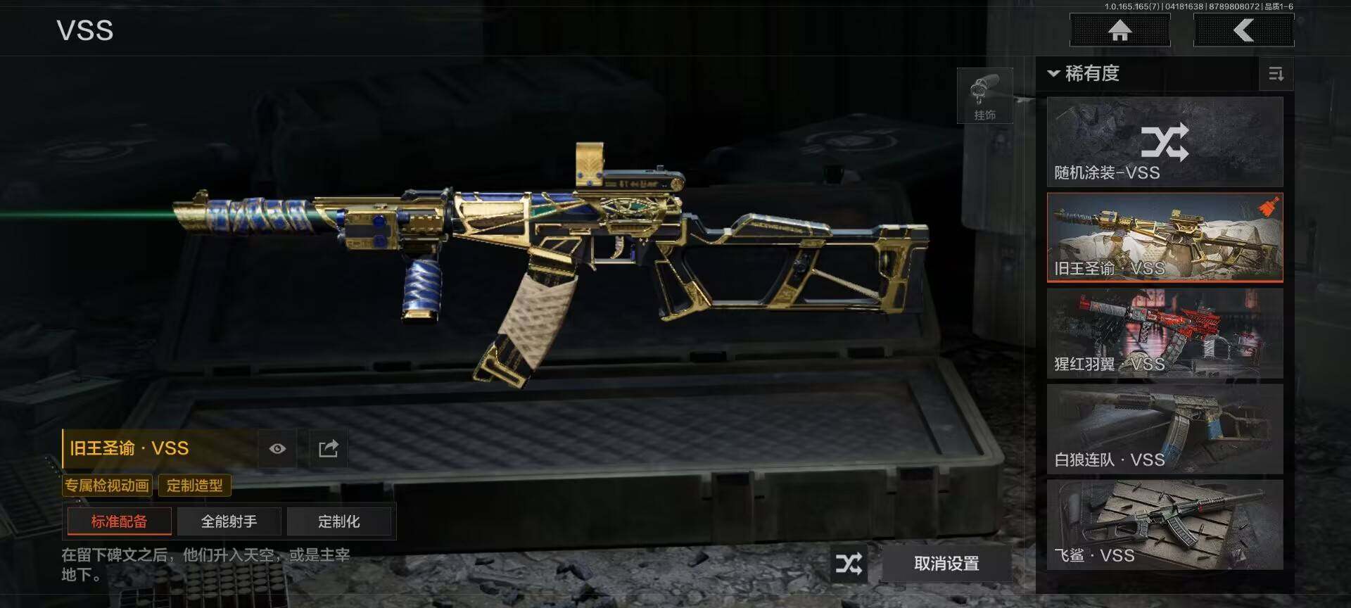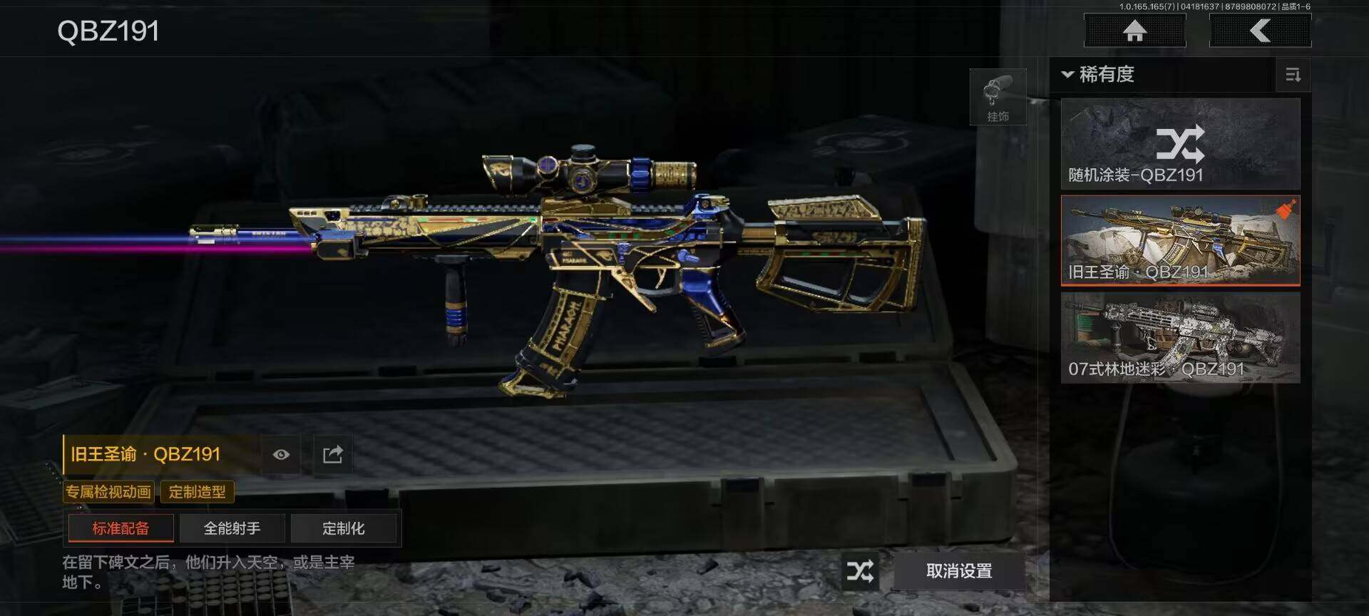 商品描述:【AQD381】等级:30/段位:尖兵/仓库价值(百万):74/柯恩币:35000000/空腔战术/旧王圣谕QBZ191/旧王圣谕VSS/浮鳞影青QBZ192/骑士之剑AX50/包络战术AKM