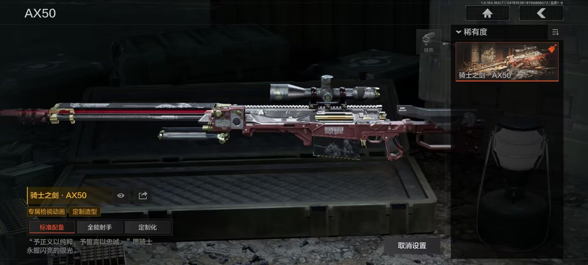 【AQD346】段位:新锐/仓库价值(百万):12/下弦月/收割者/地脉深处FAL/镀火熔金H416/告丧夜曲AR57/旧王圣谕QBZ191/利齿风暴MPX【AQZG2152】等级:30/段位:专家/仓库价值(百万):189.4/柯恩币:100000000/急袭弯刀/下弦月/寒牙手刺/裁决手杖剑/幽燕钛玄/苍穹利爪/盘牙彻甲短刃/深潜行者II/黑卡蒂/冥河/蝮蛇/白蔷薇斯黛拉/危崖魅影作战服/苍白隐者伪装服/长缨风擎AX50/棱光裂变QBU191/冰河碎影MK14/千炼铁阵MK14/黑金弹头P90/利齿风暴MPX/浮鳞影青QBZ192/旧王圣谕QBZ191/玉擎天工AN94/林中人FAL/竞技FAL/天工炉火A545/冲刺极限QBZ192