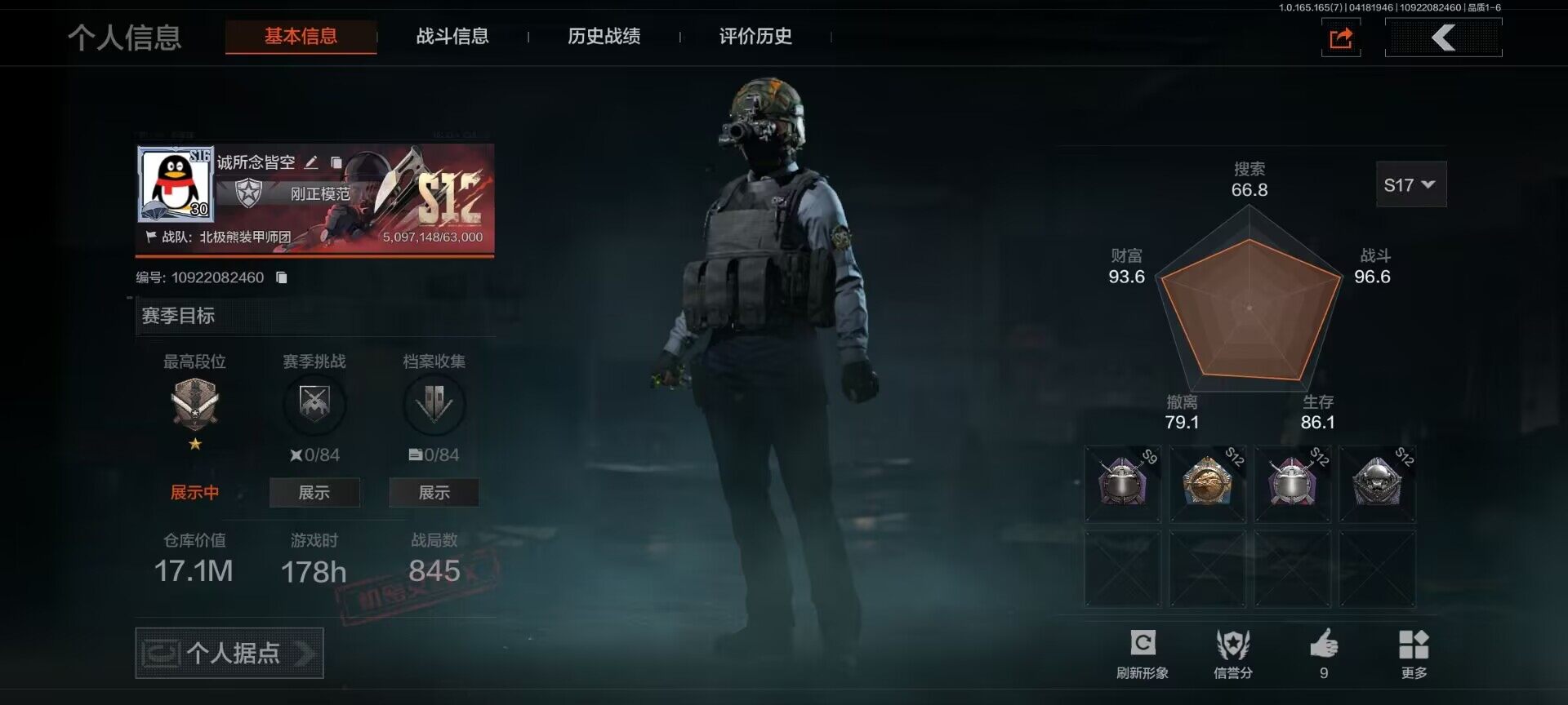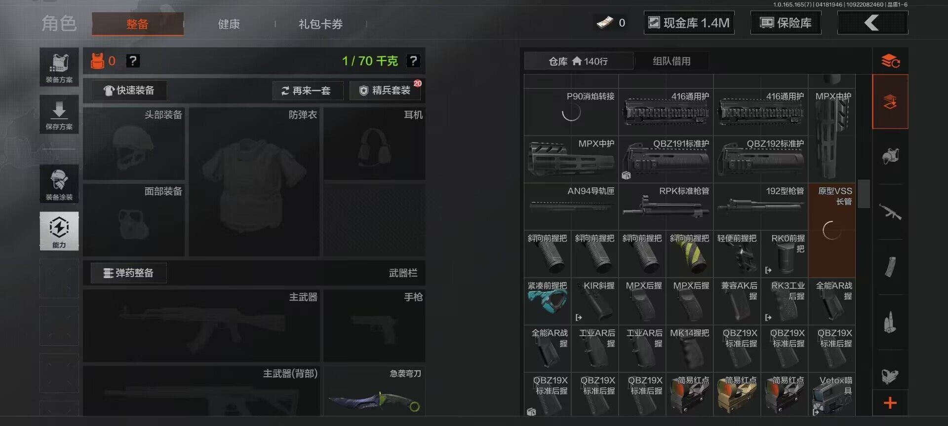 【AQD346】段位:新锐/仓库价值(百万):12/下弦月/收割者/地脉深处FAL/镀火熔金H416/告丧夜曲AR57/旧王圣谕QBZ191/利齿风暴MPX【AQZG2152】等级:30/段位:专家/仓库价值(百万):189.4/柯恩币:100000000/急袭弯刀/下弦月/寒牙手刺/裁决手杖剑/幽燕钛玄/苍穹利爪/盘牙彻甲短刃/深潜行者II/黑卡蒂/冥河/蝮蛇/白蔷薇斯黛拉/危崖魅影作战服/苍白隐者伪装服/长缨风擎AX50/棱光裂变QBU191/冰河碎影MK14/千炼铁阵MK14/黑金弹头P90/利齿风暴MPX/浮鳞影青QBZ192/旧王圣谕QBZ191/玉擎天工AN94/林中人FAL/竞技FAL/天工炉火A545/冲刺极限QBZ192
