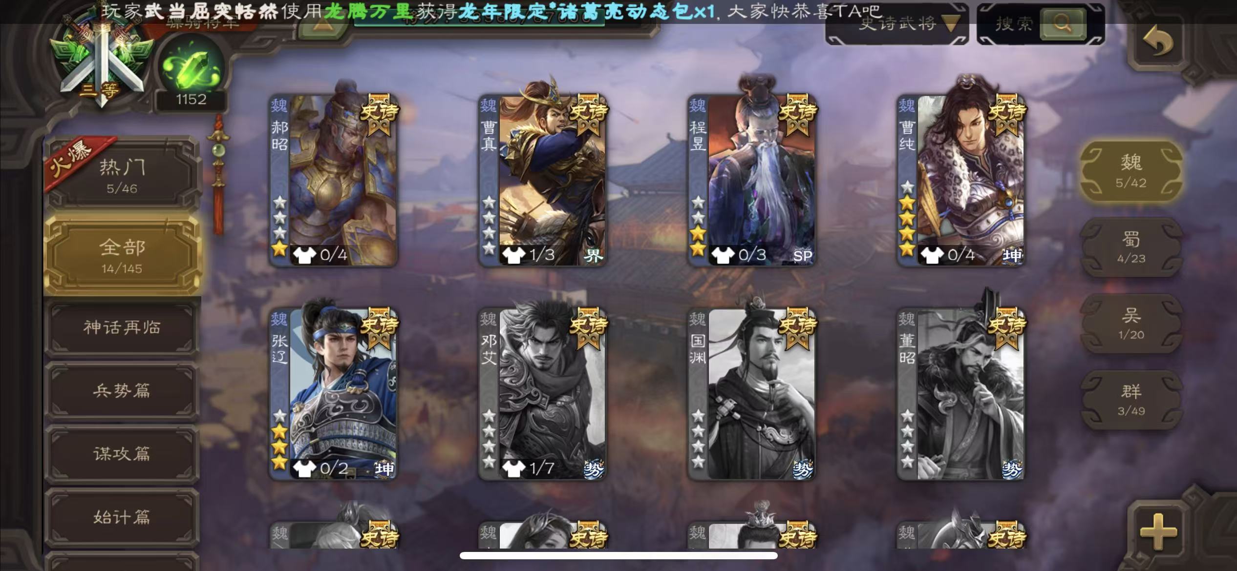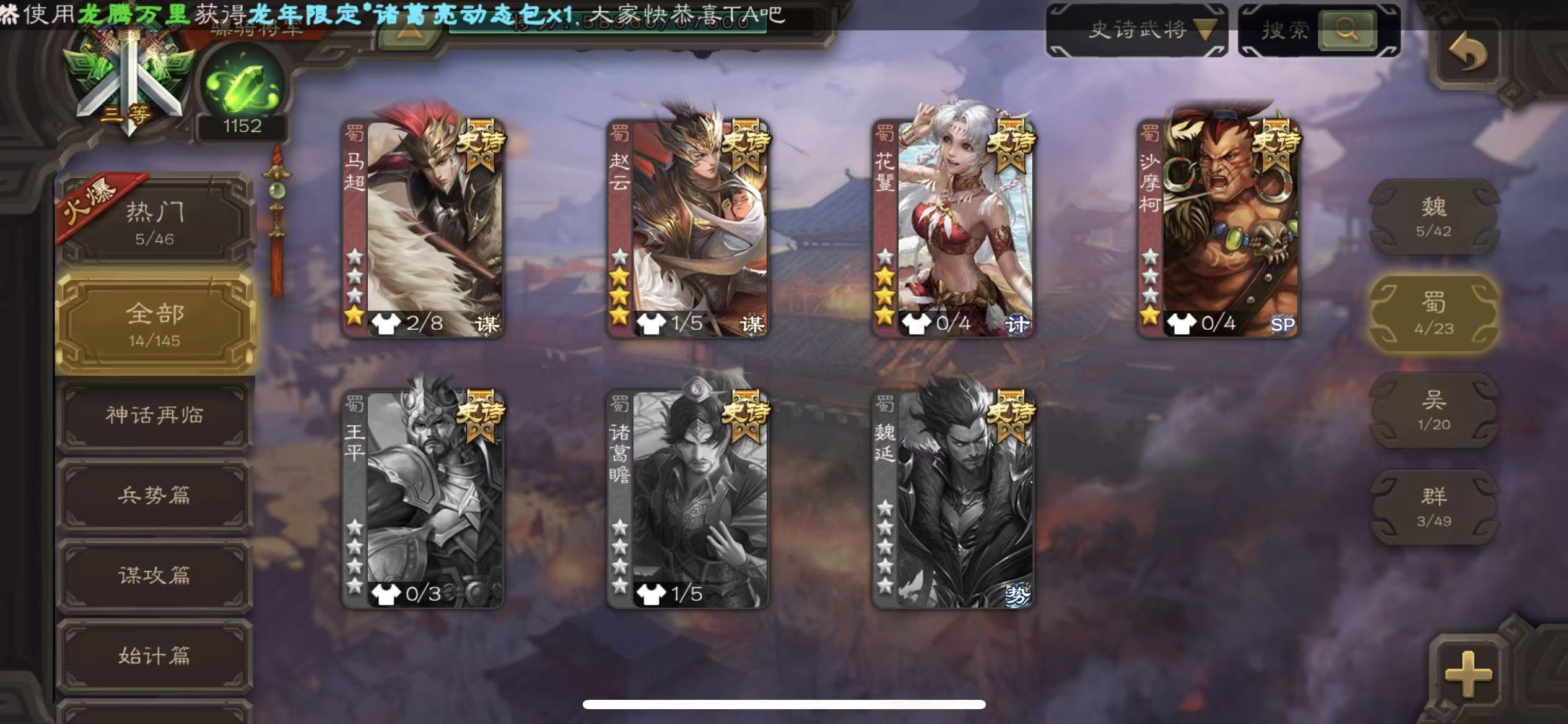 骠骑动小鸟动司马昭大宝神赵云士兵火龙果势魏延5史诗8万羽毛8500将魂125招募令三卡