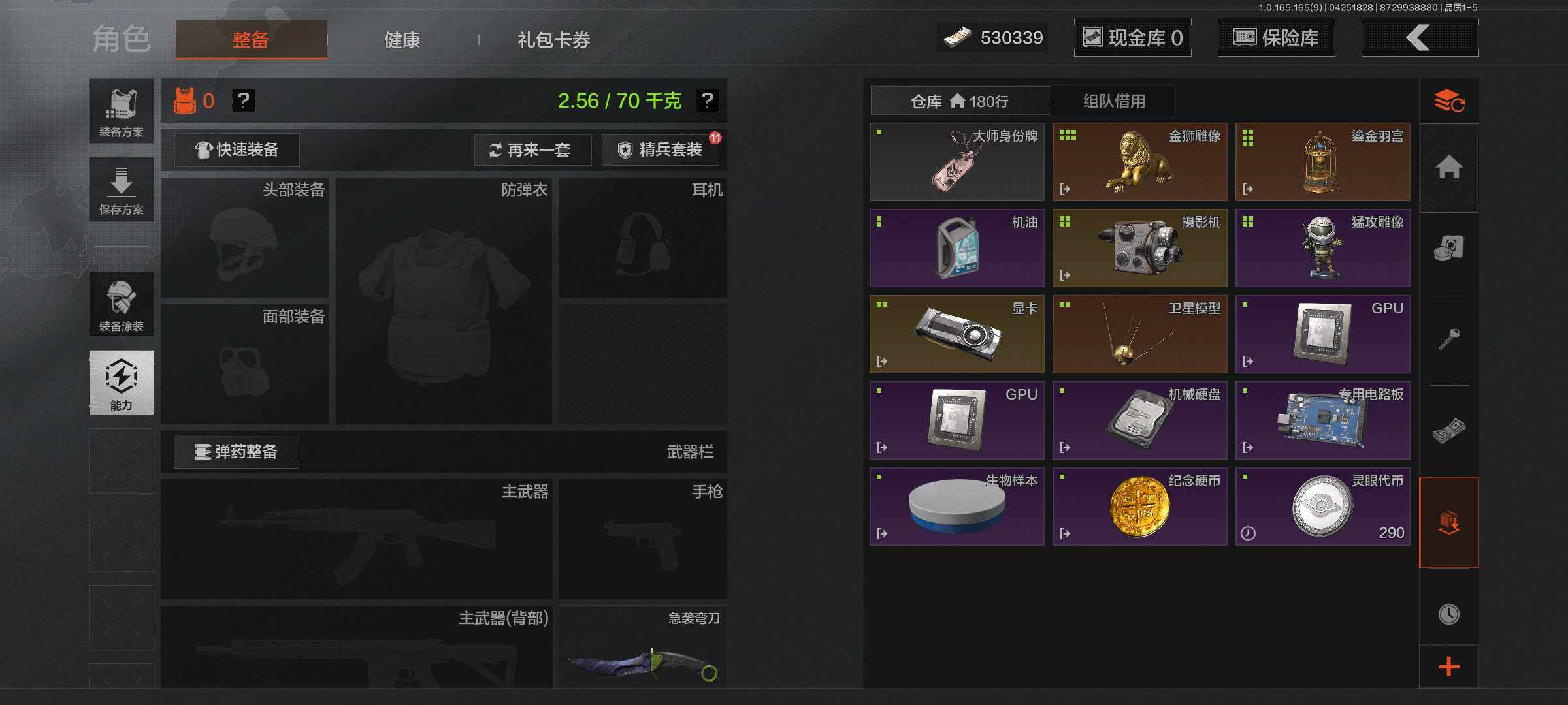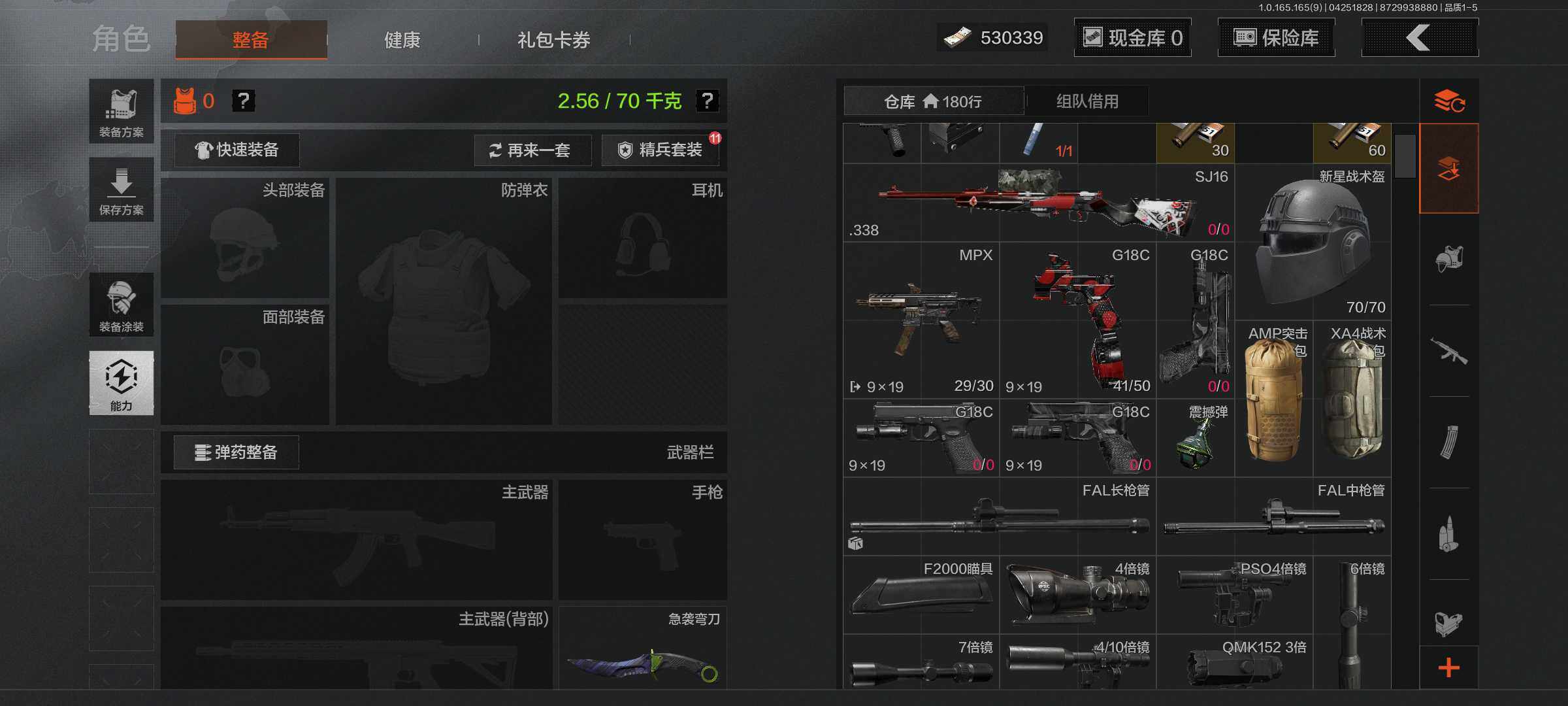 【AQD346】段位:新锐/仓库价值(百万):12/下弦月/收割者/地脉深处FAL/镀火熔金H416/告丧夜曲AR57/旧王圣谕QBZ191/利齿风暴MPX【AQZG2152】等级:30/段位:专家/仓库价值(百万):189.4/柯恩币:100000000/急袭弯刀/下弦月/寒牙手刺/裁决手杖剑/幽燕钛玄/苍穹利爪/盘牙彻甲短刃/深潜行者II/黑卡蒂/冥河/蝮蛇/白蔷薇斯黛拉/危崖魅影作战服/苍白隐者伪装服/长缨风擎AX50/棱光裂变QBU191/冰河碎影MK14/千炼铁阵MK14/黑金弹头P90/利齿风暴MPX/浮鳞影青QBZ192/旧王圣谕QBZ191/玉擎天工AN94/林中人FAL/竞技FAL/天工炉火A545/冲刺极限QBZ192