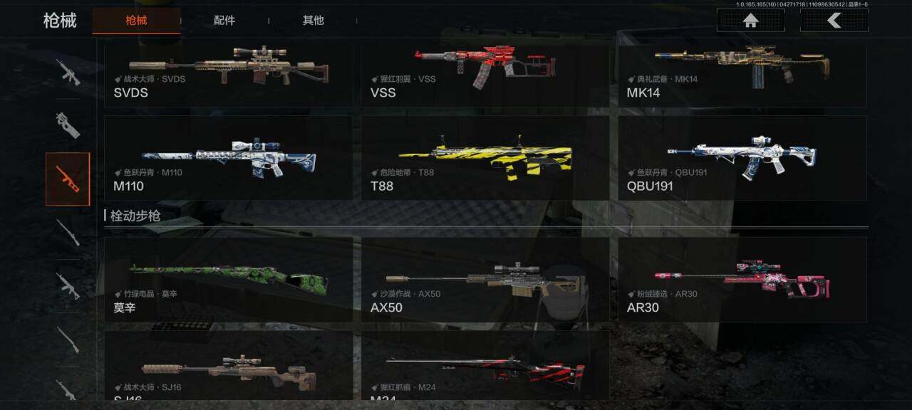 【AQD346】段位:新锐/仓库价值(百万):12/下弦月/收割者/地脉深处FAL/镀火熔金H416/告丧夜曲AR57/旧王圣谕QBZ191/利齿风暴MPX【AQZG2152】等级:30/段位:专家/仓库价值(百万):189.4/柯恩币:100000000/急袭弯刀/下弦月/寒牙手刺/裁决手杖剑/幽燕钛玄/苍穹利爪/盘牙彻甲短刃/深潜行者II/黑卡蒂/冥河/蝮蛇/白蔷薇斯黛拉/危崖魅影作战服/苍白隐者伪装服/长缨风擎AX50/棱光裂变QBU191/冰河碎影MK14/千炼铁阵MK14/黑金弹头P90/利齿风暴MPX/浮鳞影青QBZ192/旧王圣谕QBZ191/玉擎天工AN94/林中人FAL/竞技FAL/天工炉火A545/冲刺极限QBZ192