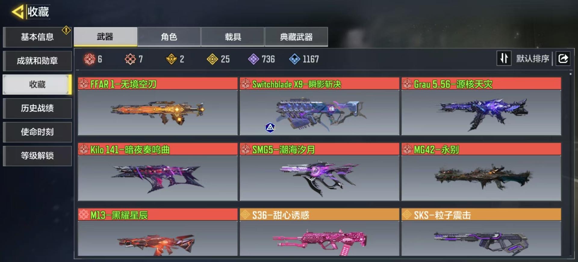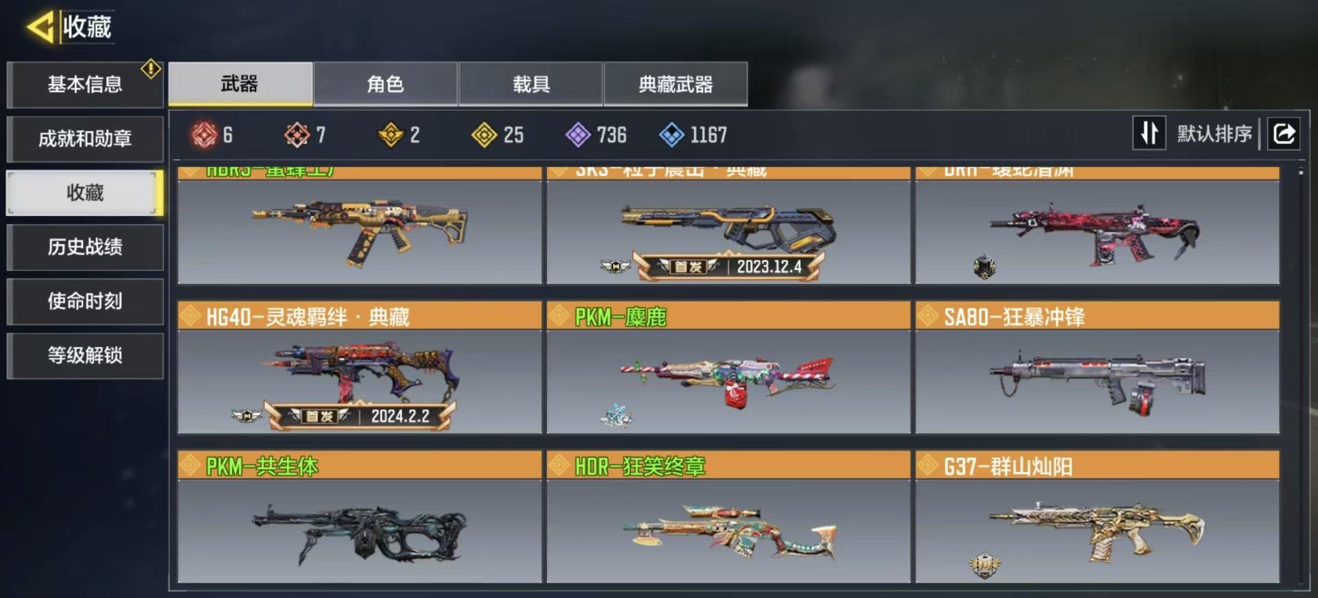 商品描述:[14142115]400级 7神话 2典藏 22传说 736史诗 段位无 可二次 可修改实名 【典藏枪械】:HG40-灵魂羁绊·典藏,SKS-粒子震击·典藏【神话枪械】:SMG5-潮海汐月,MG42-永别,Grau 5.56-源核天灾,FFAR 1-无境空刃,M13-黑耀星辰,Kilo141-暗夜奏鸣曲,Switchblade X9-瞬影斩决【传说枪械】:HDR-狂笑终章,PKM-共生体,S36-甜心诱惑,M4-皇家黑魂,AN94-毁灭浪潮,Type25-赤焰复仇,电锯-狂暴小丑,SA80-狂暴冲锋,AK47-火箭炮,FFAR 1-星彩乐手,CR56-回音律动,电棍-永恒炽热,G37-群山灿阳,DRH-蝮蛇潜渊,Outlaw-艳阳时刻,JAK12-聚能封锁,50GS-路阻且长,HBR3-蜜蜂工厂,Maddox-晶流梦魇,PKM-麋鹿,Thumper-惊魂火炮