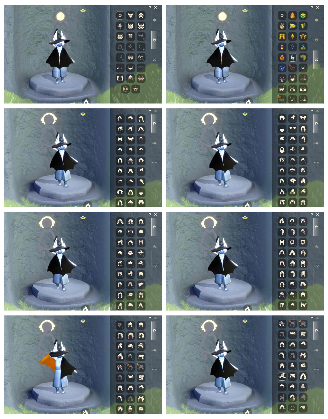 热门复刻:背带裤 白棉裤 毛靴棉裤 搓澡巾 灯笼裤 紧身棉裤 工装裤 连体衣 武士裤 击剑连体衣 过膝长袍 狐狸面具 鼬鼠面具 老爷爷面具 星绘面具 玫瑰花面具 粗辫 书虫 总裁头 正太 高马尾 明制帽 箬笠 花环 虚荣 军帽 爱神 樱花头 单片羽毛 红耳机 飘带耳坠 烟火耳坠 红金斗 白金斗 蔚紫斗 道袍 小浣熊斗 樱花斗 绿芽斗 海浪斗 彩虹斗 暗彩斗 雨伞 小铲子 星星灯 女巫茶桌 圣诞板凳"