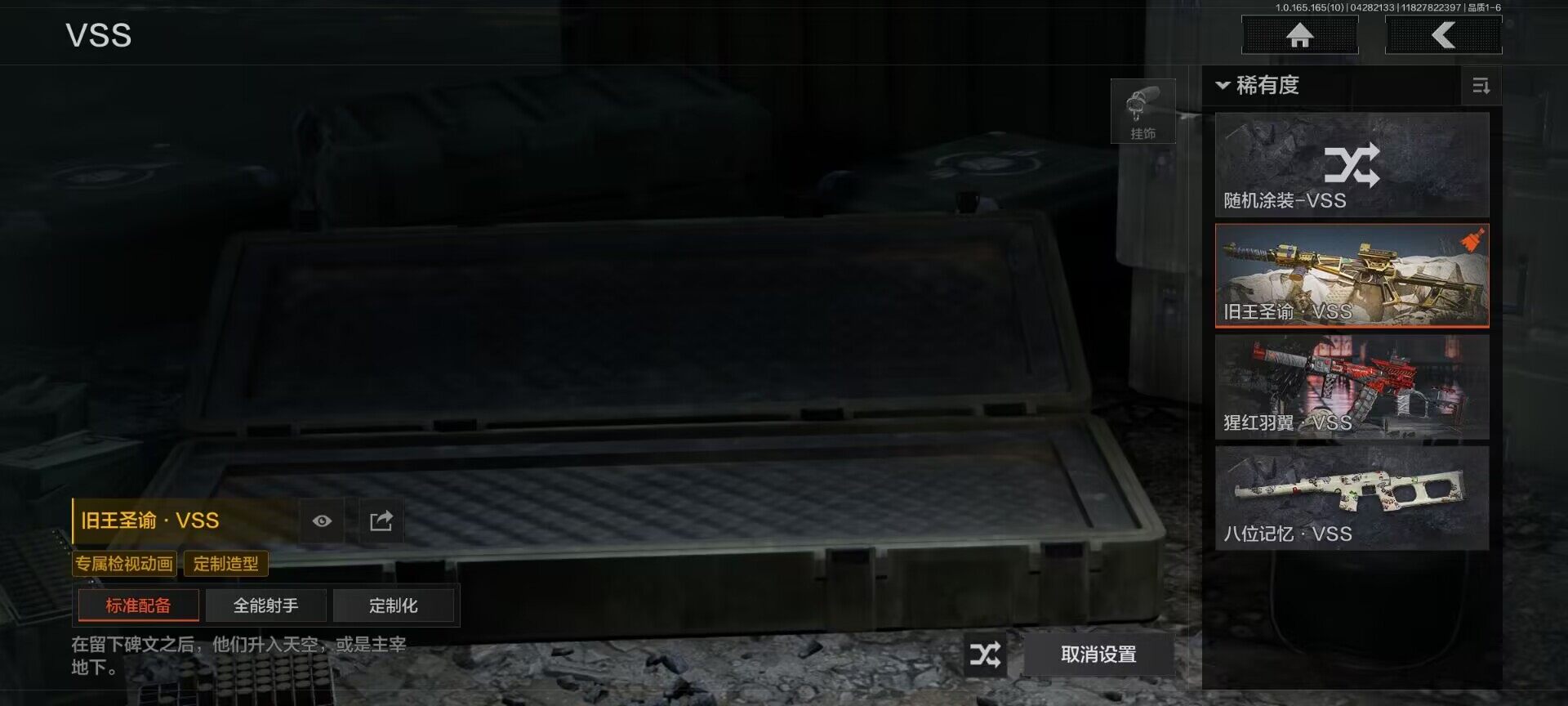 【AQD346】段位:新锐/仓库价值(百万):12/下弦月/收割者/地脉深处FAL/镀火熔金H416/告丧夜曲AR57/旧王圣谕QBZ191/利齿风暴MPX【AQZG2152】等级:30/段位:专家/仓库价值(百万):189.4/柯恩币:100000000/急袭弯刀/下弦月/寒牙手刺/裁决手杖剑/幽燕钛玄/苍穹利爪/盘牙彻甲短刃/深潜行者II/黑卡蒂/冥河/蝮蛇/白蔷薇斯黛拉/危崖魅影作战服/苍白隐者伪装服/长缨风擎AX50/棱光裂变QBU191/冰河碎影MK14/千炼铁阵MK14/黑金弹头P90/利齿风暴MPX/浮鳞影青QBZ192/旧王圣谕QBZ191/玉擎天工AN94/林中人FAL/竞技FAL/天工炉火A545/冲刺极限QBZ192