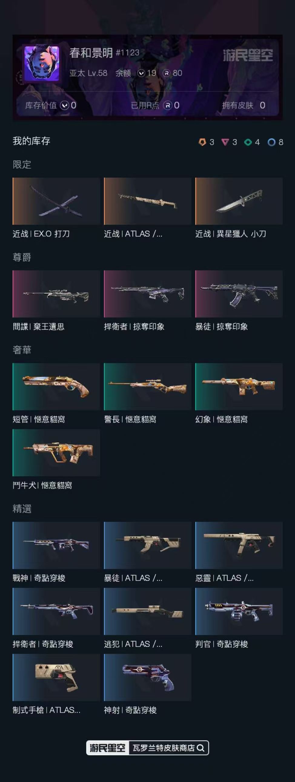 商品描述:[14174441]WL583/刀皮数量3/枪皮数量15(绝版0/限定3/究极0/尊爵3)/库存价值14225/【刀皮】/近战武器异星猎人小刀/近战武器EX.O打刀/近战武器ATLASCMD短棍/【枪皮】/暴徒掠夺印象/捍卫者掠夺印象/间谍弃王遗思/斗牛犬愜意貓窩/幻象愜意貓窩/警长愜意貓窩/短管/愜意貓窩/暴徒ATLASCMD/制式手枪ATLASCMD/逃犯ATLASCMD/恶灵ATLASCMD/捍卫者奇點穿梭/判官奇點穿梭/战神奇點穿梭/神射奇點穿梭/【热门吊饰】/特战英豪纪念币吊饰/【热门涂鸦】/GLHF涂鸦/找回包赔