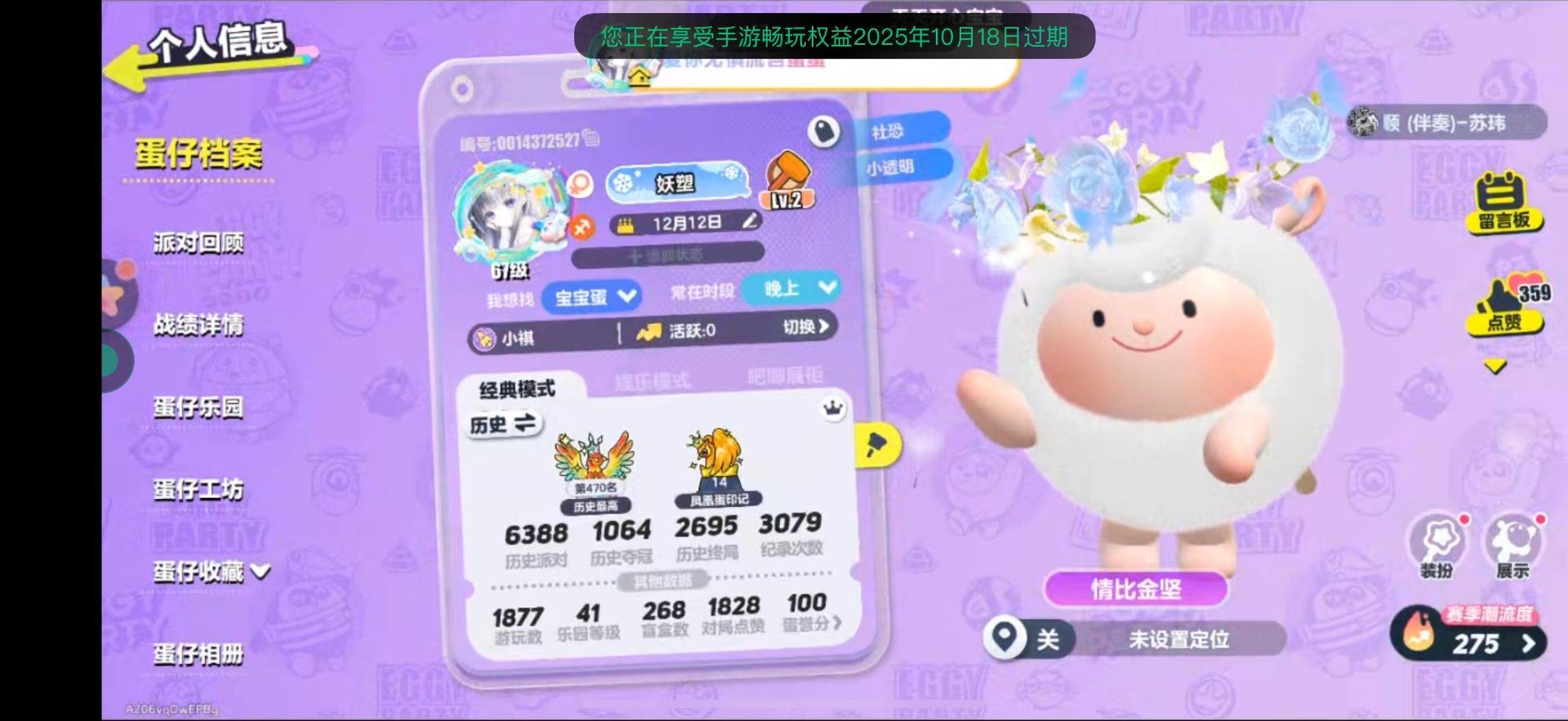 [14046000]iOS官服 手机账号 16至臻 三阶鸡蛋 【热门装扮】:草头娃娃茵茵,雾隐精灵夜清,烛光精灵夜清,城隍女君天心,鸭鸭DongDong,石心船长苏勒,沉眠的螺壶,北辰星斗破军,发美美,冷面千金竹月,甜甜圈诺奇,大祭司木西恩,超燃蛋小绿,劝学小子,大娃,胡半仙,花灯兔夭,超燃蛋小黑,控球手迅风,布偶米米,执笔少女露离,赞萌露比,三角龙小萨,天穹骑士-钻,刺猬绷绷,猪猪侠,小演员露希,小太阳葵葵,吟游诗人弥亚,元气丸子,机械师维迪,精灵莉斯尔,催眠师困困,暴龙崽崽,甲龙晶晶,鲨莉娃,萤草班主任,茨木童子,太空船长贝贝,航天员莱卡,星云船长洛洛,捕梦软软,川剧少女梧桐,星云咩咩,海藻偷偷,熊猫岁岁,盖碗茶青青,飞天小猪班尼,北极兔卢米,菜鸟笨笨,仙人掌丘丘,狸猫大力,食梦公爵莱斯,企鹅心心,莓莓甜心兔,小猪妖,渔女,沸羊羊,袋鼠嘟宝,流浪小象哆哆,宝石甲龙晶晶,极光女神典伊,小灰灰,泡澡蛙呱呱,玉龙扶风,圣翼天使-恋,仔仔熊,菠萝苏苏,僵尸博士,淘气丸子,红小豆,灰太狼,长草颜团子,李建勋,巴扎黑,DongDong,糖心蛋总,橙留香,菠萝吹雪,蜜蜂DongDong,八音盒温妮,仓鼠米仔,云村音音,虎皮卷大灰狼,铃兰三月兔,蓝樱爱丽丝,蔷薇白皇后【翅膀】:碎晶幻翼,爱神之翼,蝴蝶之梦,音浪星梦,大天使·星芒,闪闪星蝶翅膀,绘山河折扇,月白之隐,山水谣,冰晶耀盾【载具装扮】:脆脆糖话筒,失重电吉他,游游白柳仙·娇,音速风暴号,扶光妙妙鲤,星河弹弹车[13820392]【XQD206】区服:vivo登录方式:手机号历史潮流:29627氪条:4630幻彩套装数量:1紫色套装数量:18幻彩套装:独角兽芬妮亚紫色套装:圆圆子,仔仔熊,雪王,小灰灰面饰:浪花眼饰,梦幻天马头冠腰饰:彩虹流云,大耳狗扇子背饰:众星孤月,天马法杖载具:无