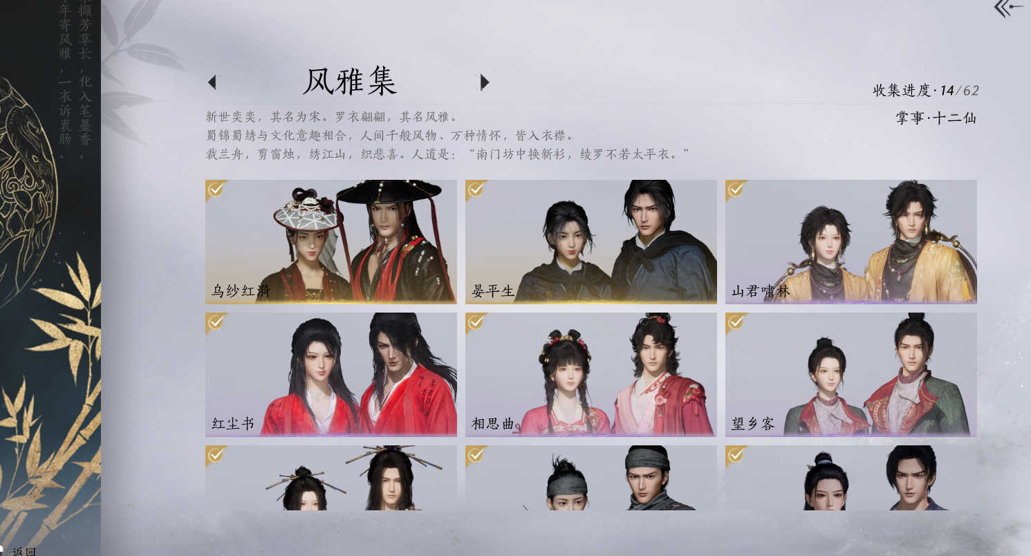 XY-076654477 角色性别【文本】女 【绝境】 【有换绑CD】 【不可换绑】 【未注册】 【不支持人脸包赔】 【女】 【是】 【是】 【否】XY-076643637 风华值21989 武林造诣(鹅)35550 已用八音窍数量3 未用八音窍数量0 等级100 角色等级100 角色性别【文本】男 【无换绑CD】 【绝境】 【无冷却】 【不支持人脸包赔】 【男】 【手机帐号】 【网易手机账号】 【是】 【是】 【未拥有】 【已知晓】 【自己上传】 稀有套装3 稀有武学奇术1 套装14 武学奇术1 稀有套装:有狐绥绥,乌纱红漪,晏平生; 稀有武学奇术:一雷惊蛰; 套装:清河强者,金池鲤,翠羽顾,江湖客,逐红花,一心三藏,丹雀,午风清,雁还乡,射虎南山,宿露轻盈,驰走西风,相思曲,云中锦书; 武学奇术:墨泼风;