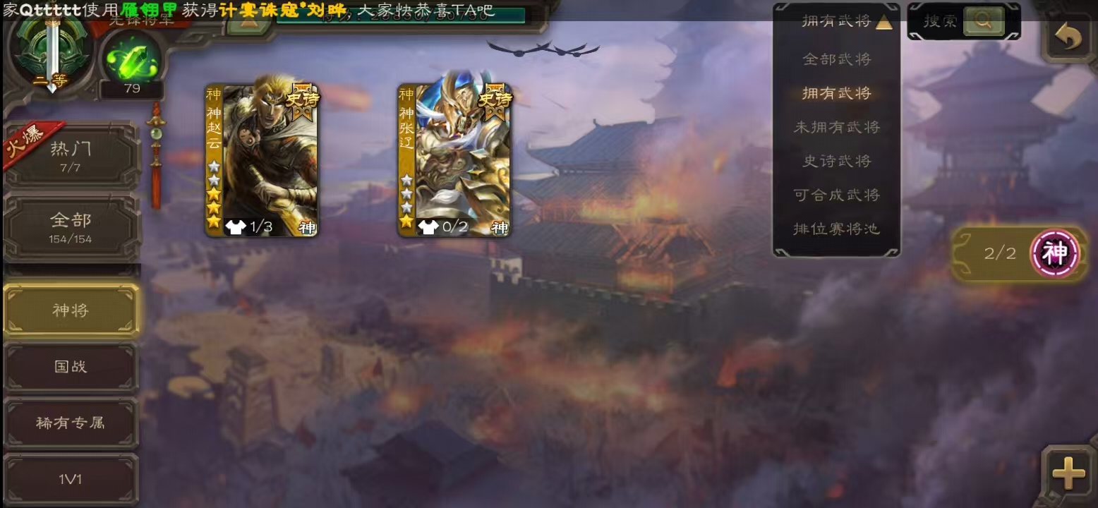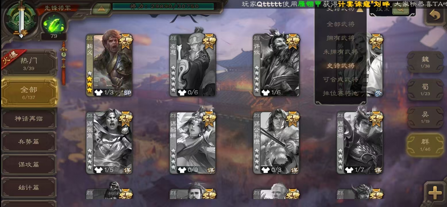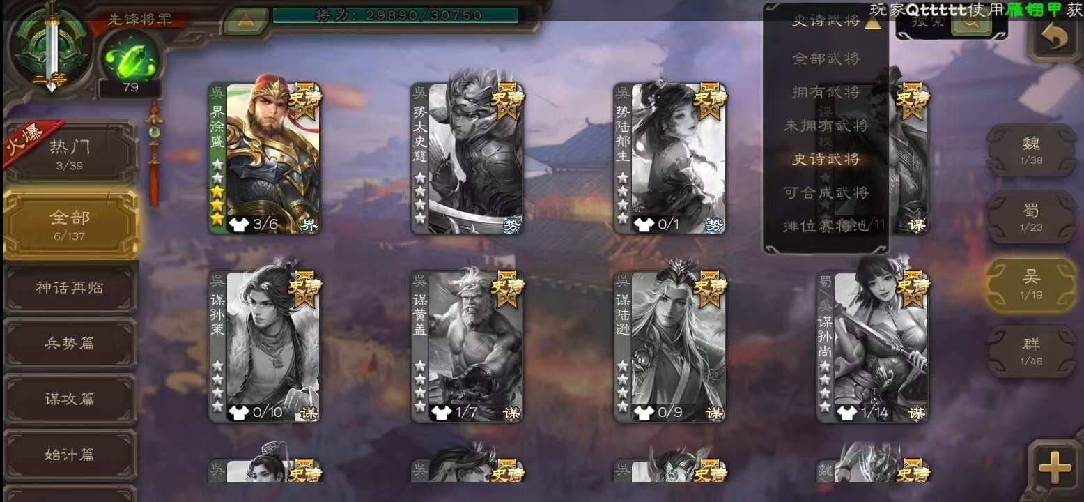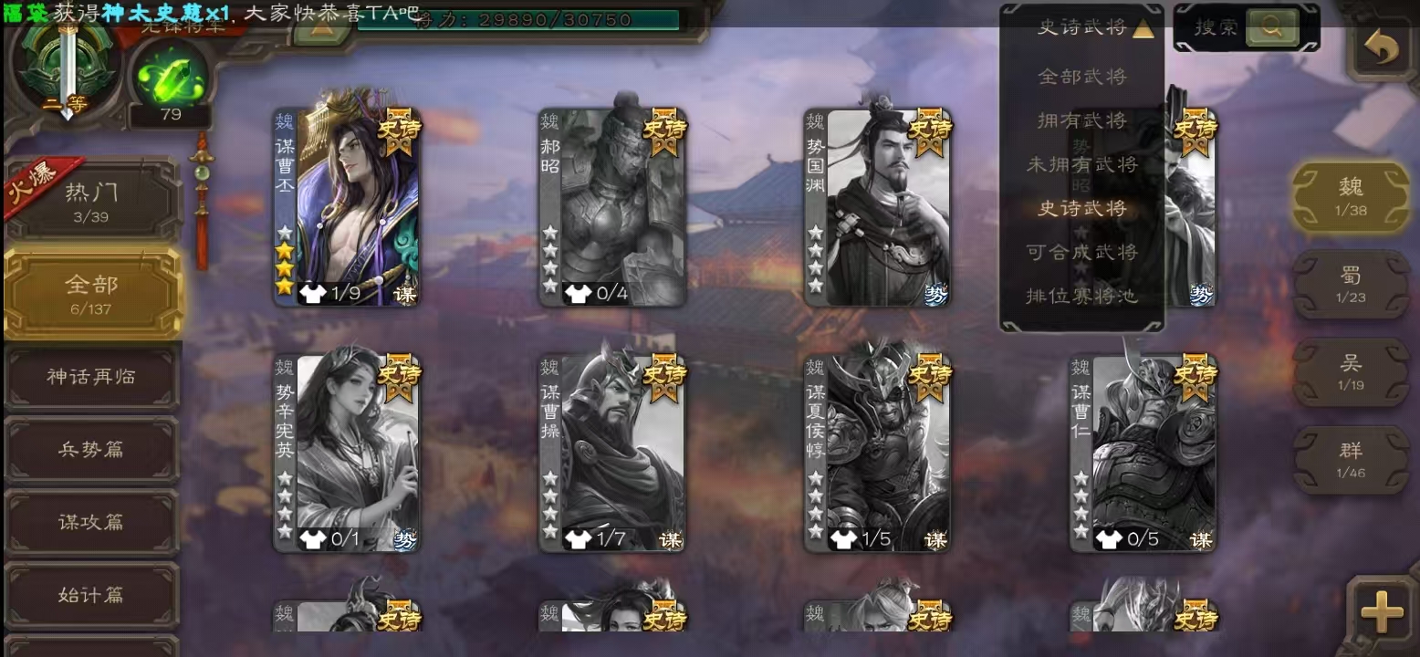 二等骠骑动态神荀彧必胜客天子令曹丕动态大宝裴秀动态戏子动态界钟会白马神太史慈三卡18史诗