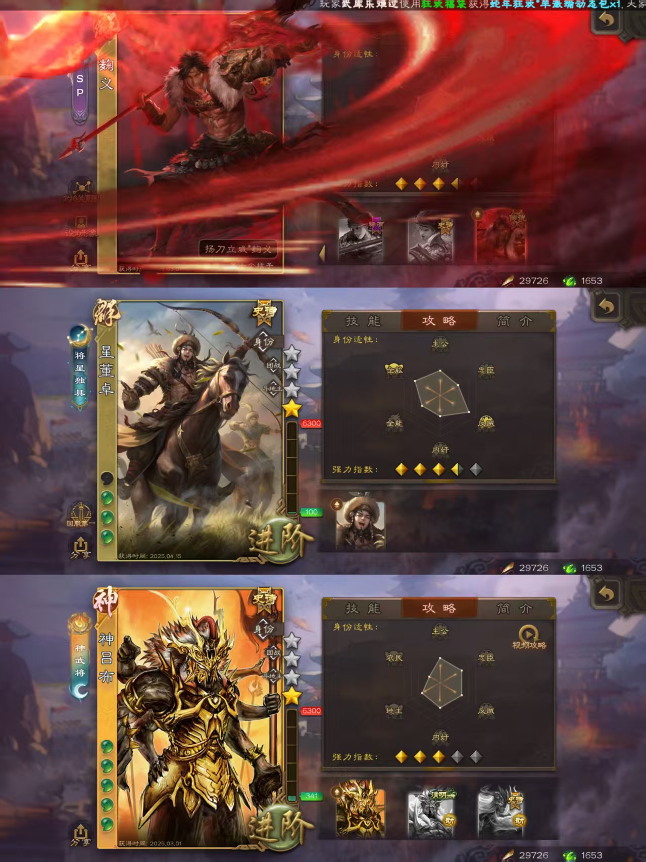二等骠骑动态神荀彧必胜客天子令曹丕动态大宝裴秀动态戏子动态界钟会白马神太史慈三卡18史诗