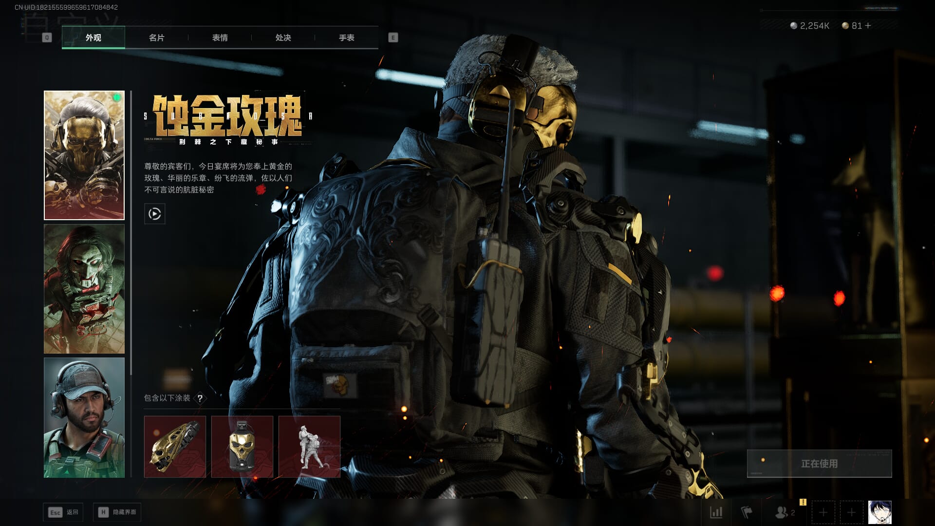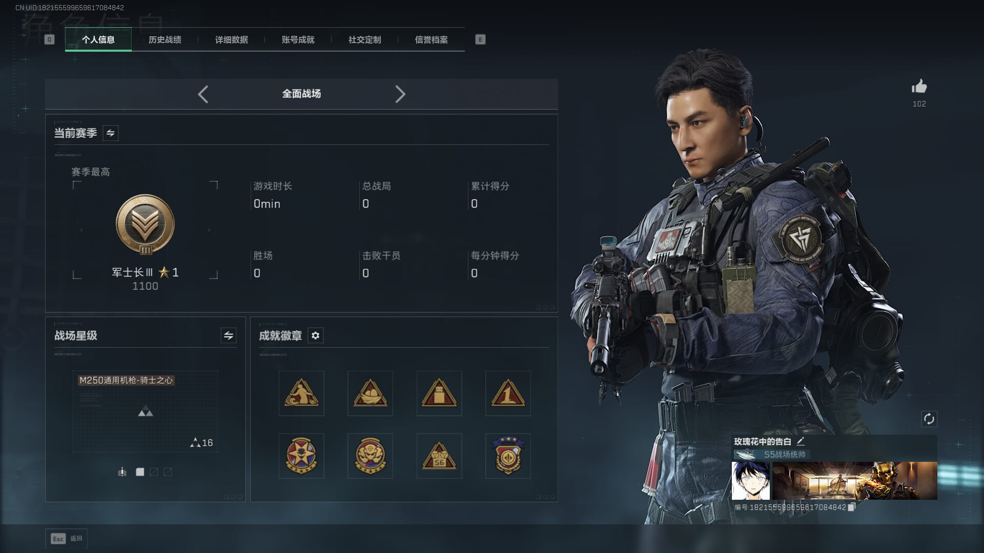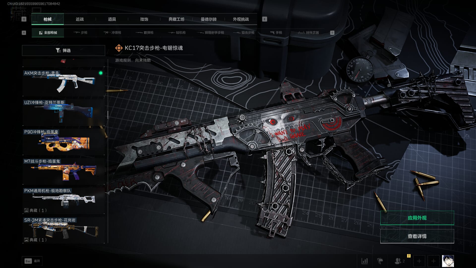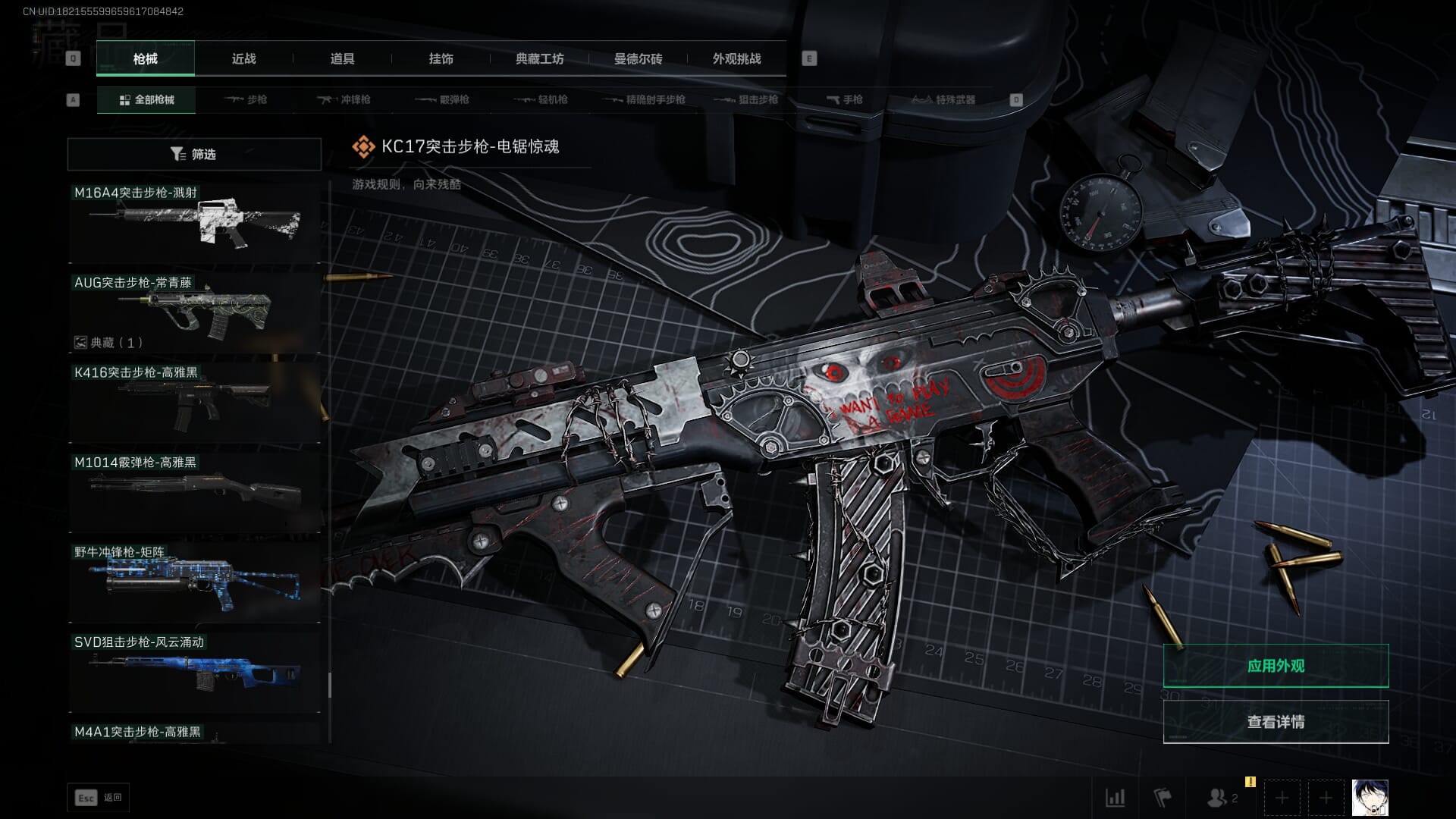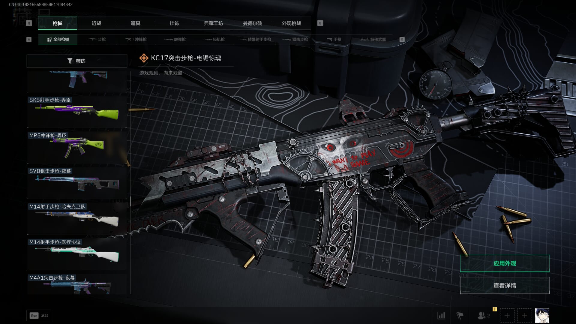 总资产:59.8M,哈夫币:260W,武器皮肤:25,钻石,战场60级:【安全箱】基础安全箱;【特勤处等级】仓库LV.8,靶场LV.7,训练中心LV.7;【干员皮肤】蜂医送葬人无题密令,无名夜鹰,红狼蚀金玫瑰;【近战武器】近战武器-北极星,近战武器-黑鹰;【步枪皮肤】M4A1突击步枪-蚀金玫瑰,M7战斗步枪-神秘艺术,SR-25射手步枪-水墨云图,ASVal突击步枪-蛇年祥瑞,AK-12突击步枪-夜鹰,K437突击步枪-北极星,CAR-15突击步枪-阿米娅,腾龙突击步枪-捞点薯条,AK-12突击步枪-特斯拉线圈,M4A1突击步枪-阿米娅,SCAR-H战斗步枪-启航,KC17突击步枪-电锯惊魂,SG552突击步枪-运动员;【冲锋枪皮肤】P90冲锋枪-神秘艺术,QCQ171冲锋枪-北极星,SMG-45冲锋枪-骑士,UZI冲锋枪-特斯拉线圈,SR-3M紧凑突击步枪-特斯拉线圈,勇士冲锋枪-能天使-午夜邮差;【狙击步枪皮肤】AWM狙击步枪-捞点薯条;【霰弹枪皮肤】725双管霰弹枪-送葬人-无题密令;【轻机枪皮肤】M250通用机枪-骑士之心;【手枪皮肤】93R-捞点薯条;