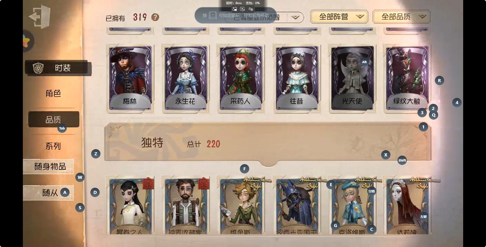 [14289556]哔哩哔哩 手机账号 467时装 15金皮 121紫皮 17随从 122随身物品 【时装】:空军-天河,爱哭鬼-摩诺,“心理学家”-末世搜救,医生-永生花,佣兵-珍奇柜,佣兵-柴郡猫,佣兵-思明,佣兵-白鹰之舞,蜘蛛-花祭,咒术师-花边新闻,玩具商-花千树,勘探员-盛夏飞盘,空军-黑天鹅之羽,空军-尼德霍格,魔术师-白胡子,厂长-“驯服”,厂长-亚瑟王,“慈善家”-传信官,病患-逃罪之人,画家-纳西瑟斯,画家-江户川乱步,“杰克”-绿纹大触,“杰克”-邪眼寄主,红夫人-贝拉夫人,红蝶-永夜极光,魔术师-文学教授,冒险家-爱丽丝,调酒师-海盐特调,医生-采药人,医生-炽天使,医生-往昔,医生-浴火绯花,园丁-罗刹绯春,幸运儿-拉塔托斯克,冒险家-警醒的龟先生,盲女-吉尔达,前锋-冬