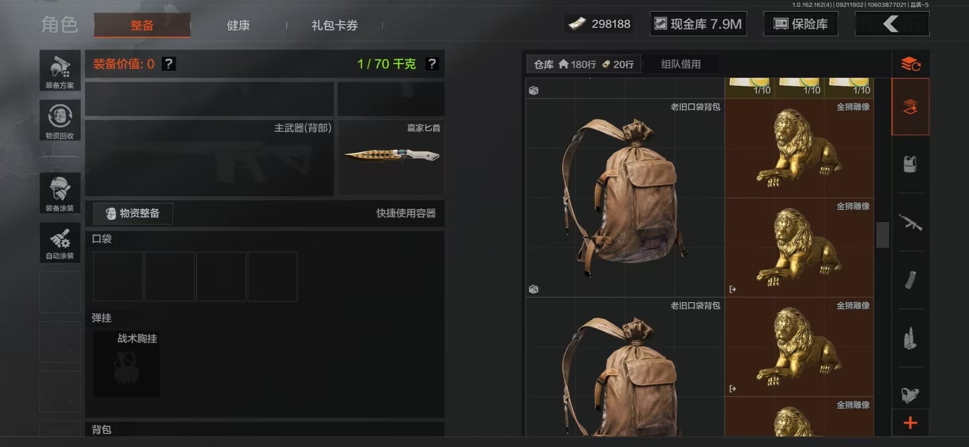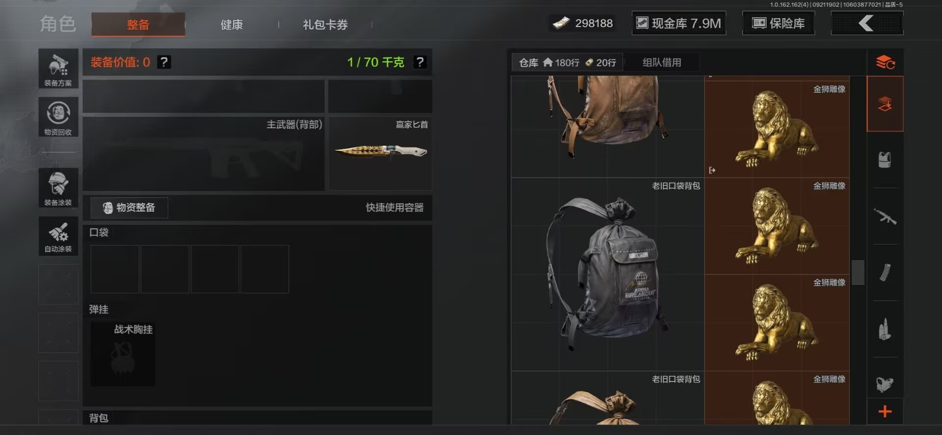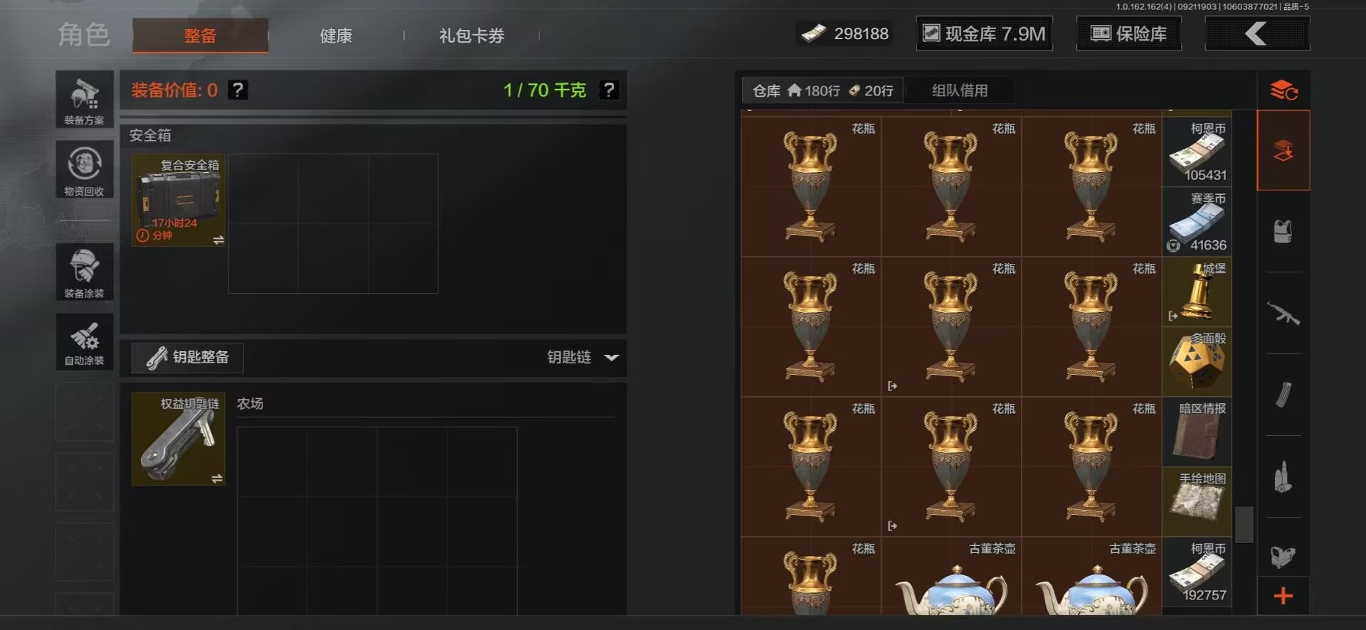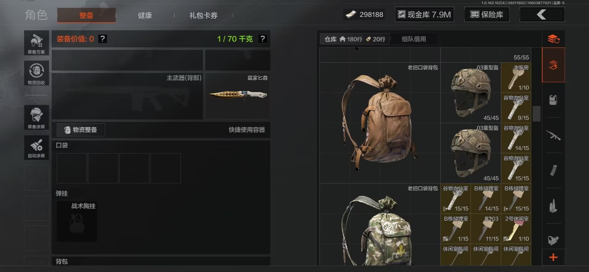 MWT4243【9刀皮 4金衣 10金枪 极品高氪号】安卓Q-等级30-仓库价值15.6m-科恩币8498k-【套装】 冥河 脉冲.马克西姆 深潜行者 噤声者吉利服 和平先锋作战套装 财团之手作战套装 高地武士. 套装 都市夜影套装 【枪皮】 包络战术.AKM 伦琴幻影.H416 战术大师.AEK 战术大师.AN94 冬夜.AK12 乌金黑曜.QBZ192 冰河碎影 .Vector9 骑士之剑 .VSS 骑士之剑 .AX50 近卫荣誉.RPK16 【近战武器】 百炼恒常 空腔战术 下玄月 涂鸦利刃(蝴蝶刀) 胜利军刀 急袭弯刀 霜狼生存刀 工兵铲 开山刀
