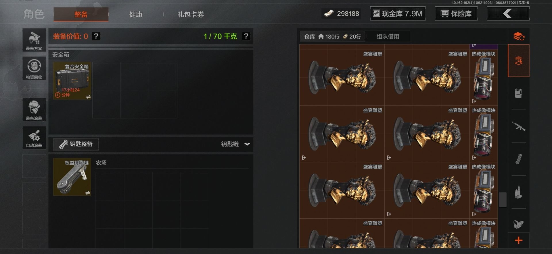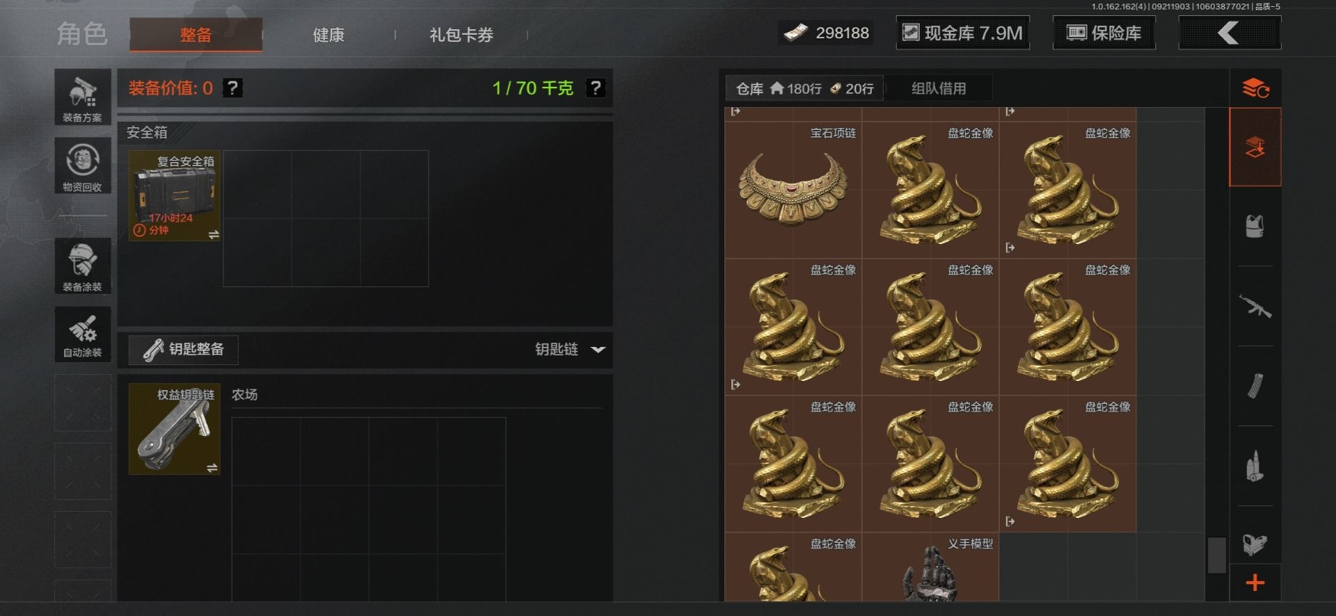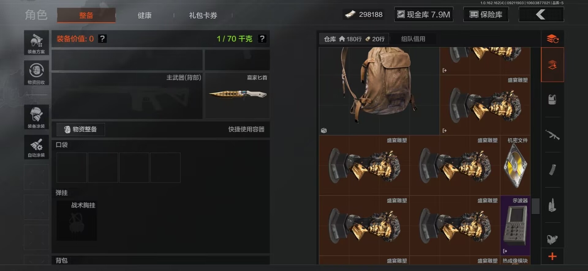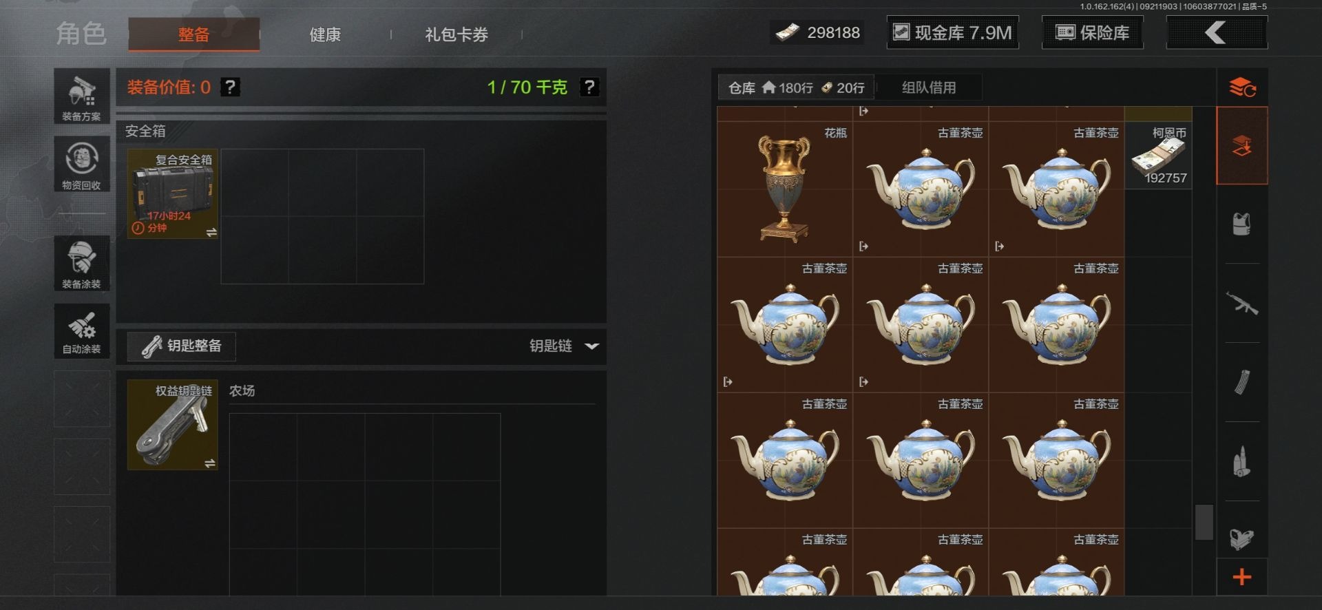 MWT4243【9刀皮 4金衣 10金枪 极品高氪号】安卓Q-等级30-仓库价值15.6m-科恩币8498k-【套装】 冥河 脉冲.马克西姆 深潜行者 噤声者吉利服 和平先锋作战套装 财团之手作战套装 高地武士. 套装 都市夜影套装 【枪皮】 包络战术.AKM 伦琴幻影.H416 战术大师.AEK 战术大师.AN94 冬夜.AK12 乌金黑曜.QBZ192 冰河碎影 .Vector9 骑士之剑 .VSS 骑士之剑 .AX50 近卫荣誉.RPK16 【近战武器】 百炼恒常 空腔战术 下玄月 涂鸦利刃(蝴蝶刀) 胜利军刀 急袭弯刀 霜狼生存刀 工兵铲 开山刀