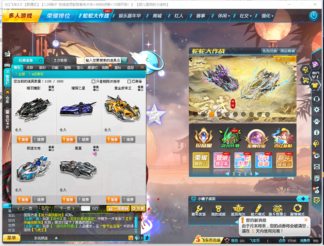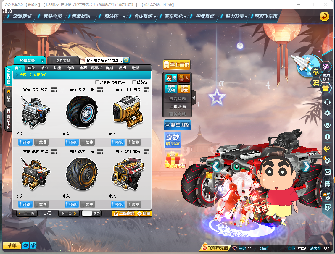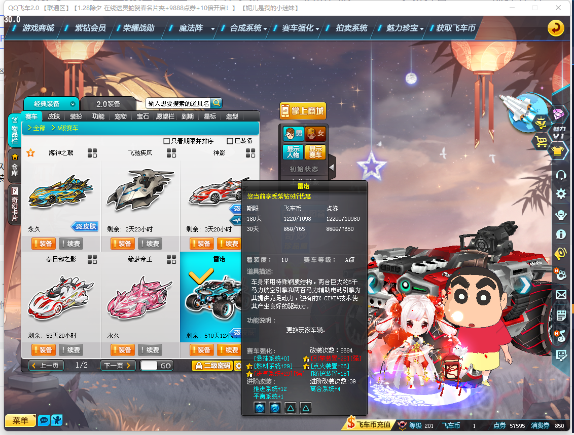 BZ619524 【连体CF端游/1炼狱+7盘龙/7烈龙/3S-2T1-爆天甲黄忠满改双四-黑域电魔高改单四】 【可二次实名】 S级赛车3 热门装备1 T1机甲2 A级赛车1 S级赛车:黑域电魔,爆天甲,X-先驱者; 热门装备:黄金神兽; T1机甲:神影之尊,水晶先锋; A级赛车:钢铁雷诺;