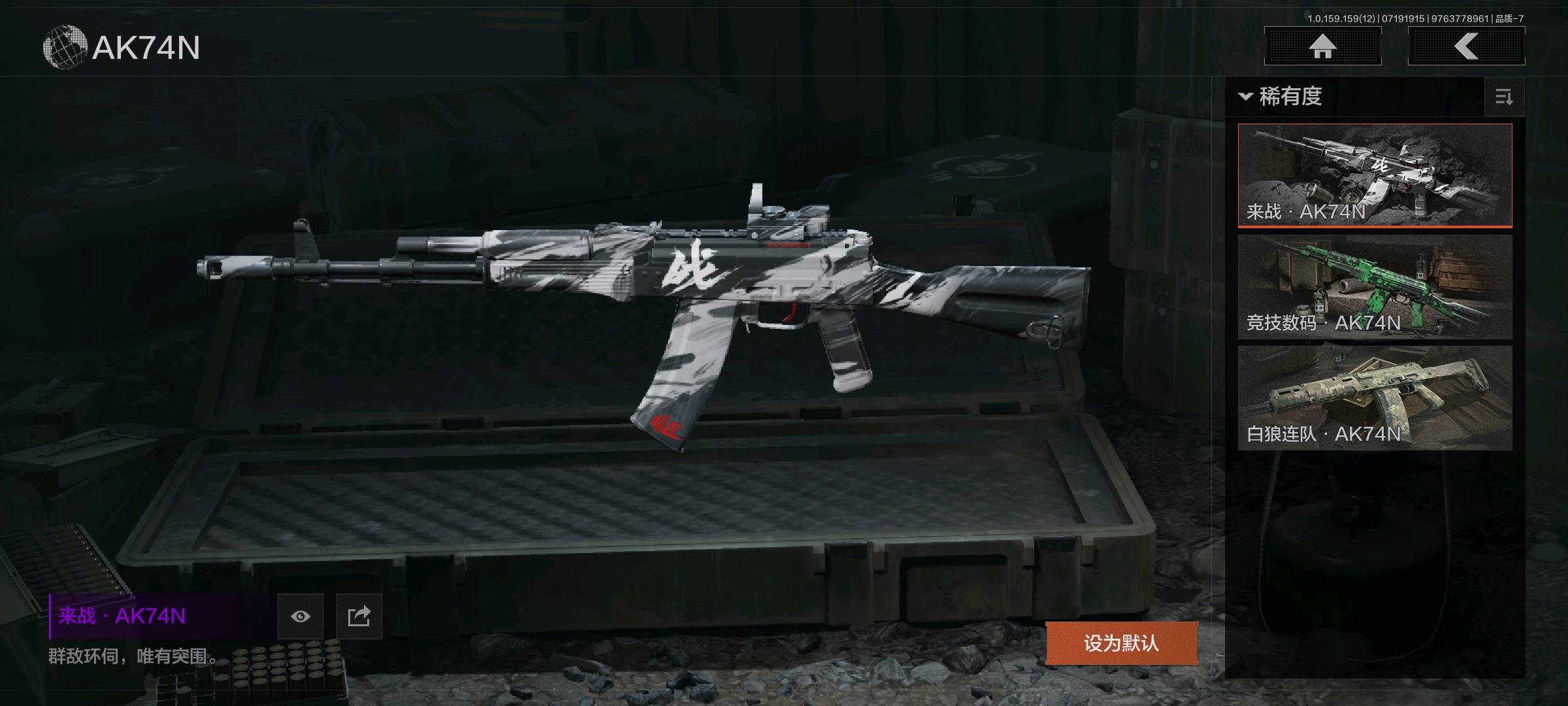 [11608968]库存价值101.2 2近战武器 1金枪皮 可修改实名 优质装备:长缨风掣·RPK16 柯恩币数量:387033 近战武器:工兵铲,来战·开山刀 紫色枪皮:灰鼠幻歌·P90,骑士之剑·AKS74U,竞技·M110,竞技·MDR,火绒·AN94 角色装扮(紫):都市夜影套装DSTW763加【仓库价值5.9M 柯恩币633442 1套装 15枪皮 2刀 工兵铲 开山刀 】安卓Q-等级30-科恩币633442 【枪皮】来战·AKM 来战·AK74N 骑士之剑·AKS74U 07式林地迷彩·QBZ191 玄戈梨花·MPX 森林迷彩·MP5 玄戈梨花·VSS 【刀皮】 工兵铲 来战·开山刀