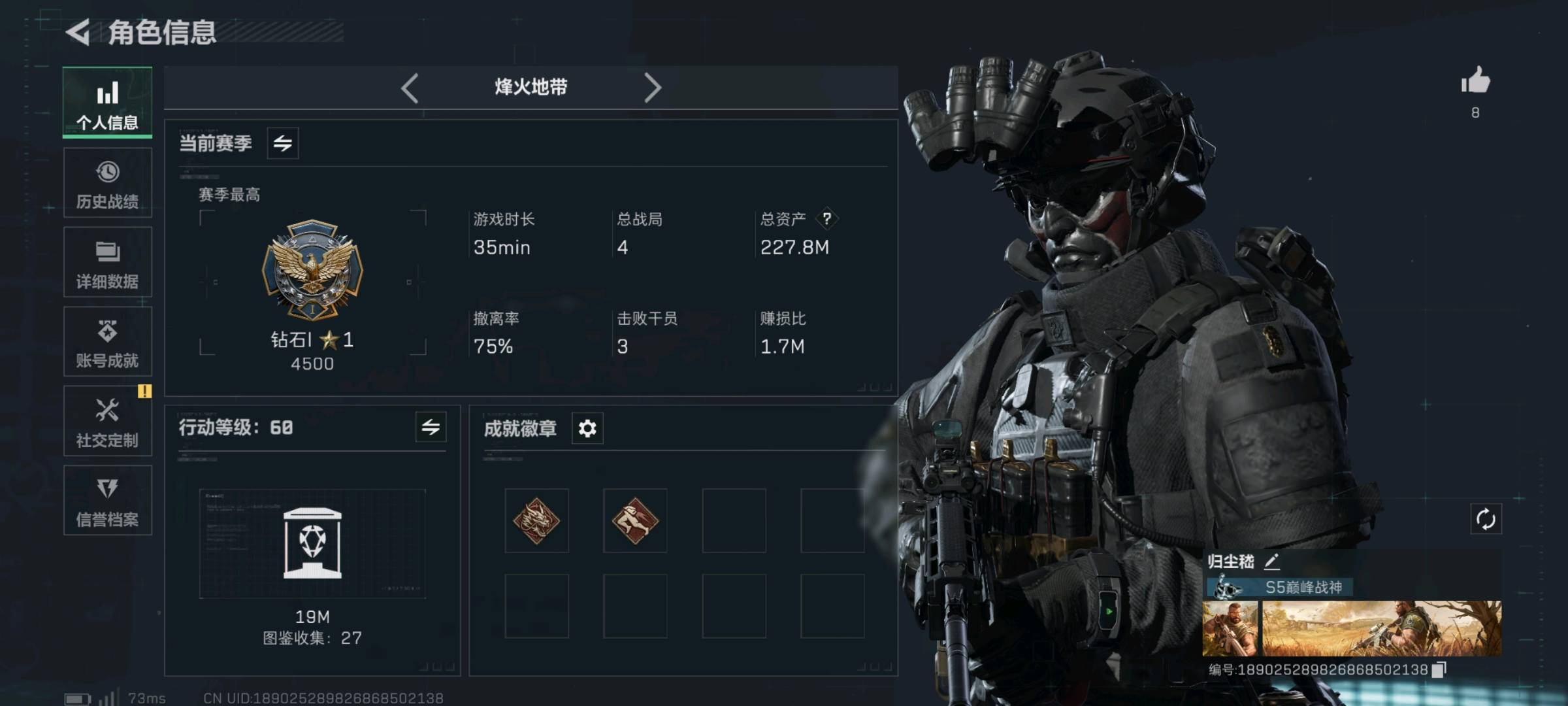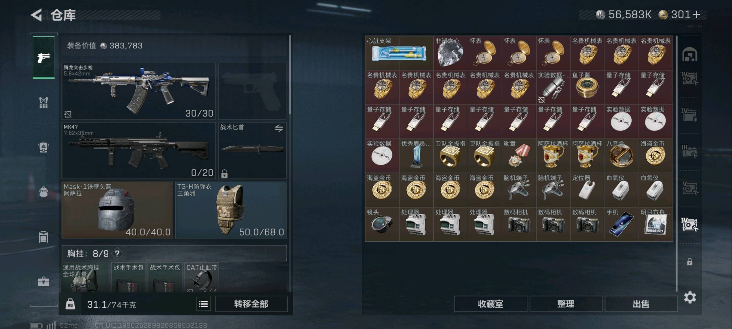 SH2581 总资产386M,哈夫币10117w,非洲之心,枪皮数量243,战场等级:37 上等兵,行动等级:60 铂金,角色皮肤数量7,红狼-蚀金玫瑰/骇爪-水墨云图/牧羊人-街头之王/威龙-铁面判官/威龙-壮志凌云/威龙-蛟龙特战队/无名-夜鹰,近战-黑海/近战-影锋/近战-怜悯/近战-赤枭/近战-黑鹰,Vector冲锋枪-美杜莎(优品C),安全箱等时效性道具请以游戏内数据为准;详情请看图