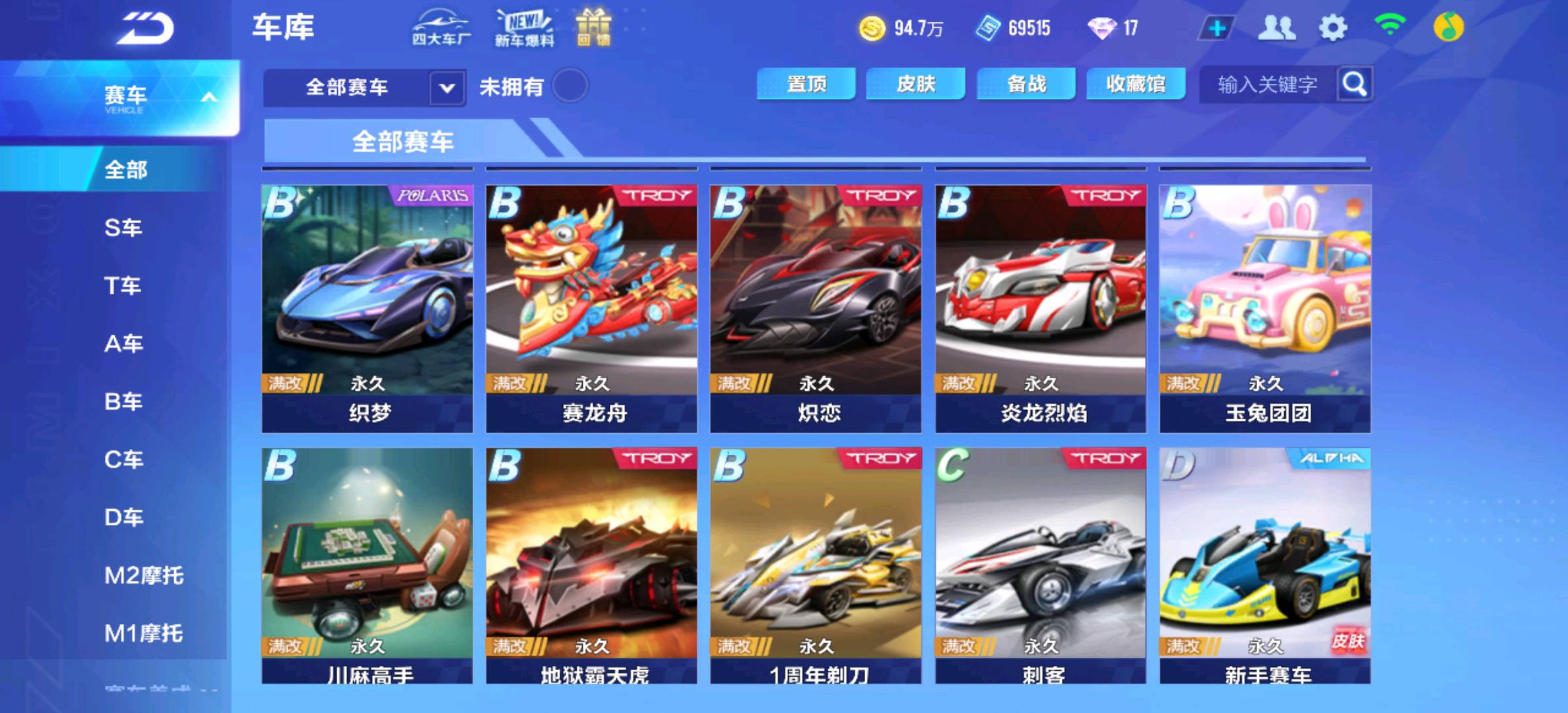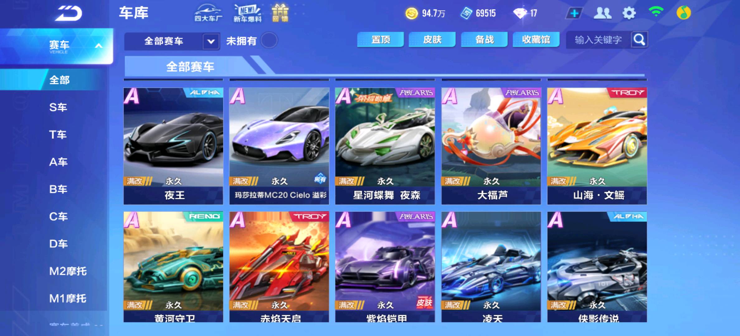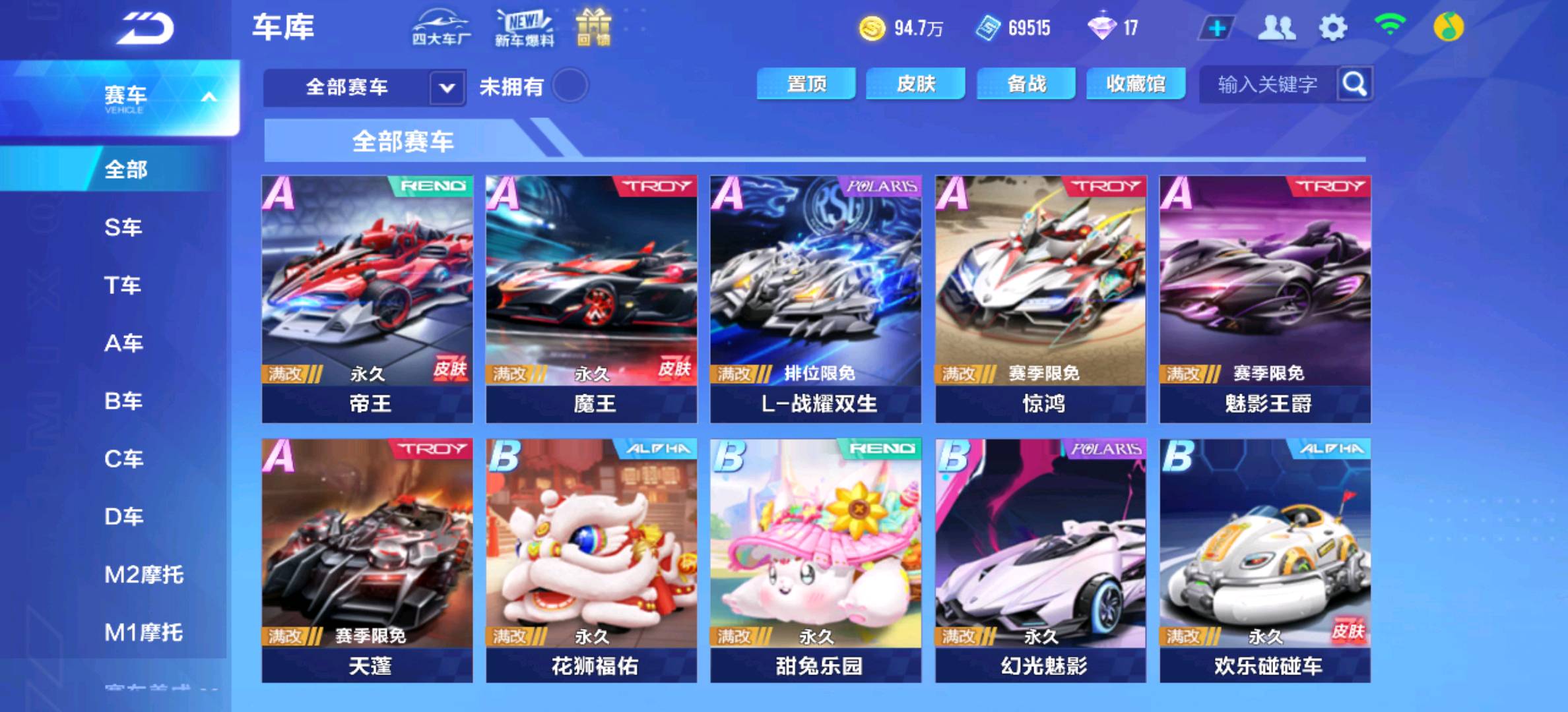 BZ607055 【3S高改黑域电魔-高改毁灭者-暗影龙骑-3T1】 【可二次实名】 【无防沉迷】 【是本人】 【能】 【永久包赔】 S级赛车3 T1机甲3 A级赛车1 S级赛车:毁灭者,黑域电魔,暗影龙骑; T1机甲:白虎战神,无影之刃,激刃; A级赛车:电玩雷诺;
