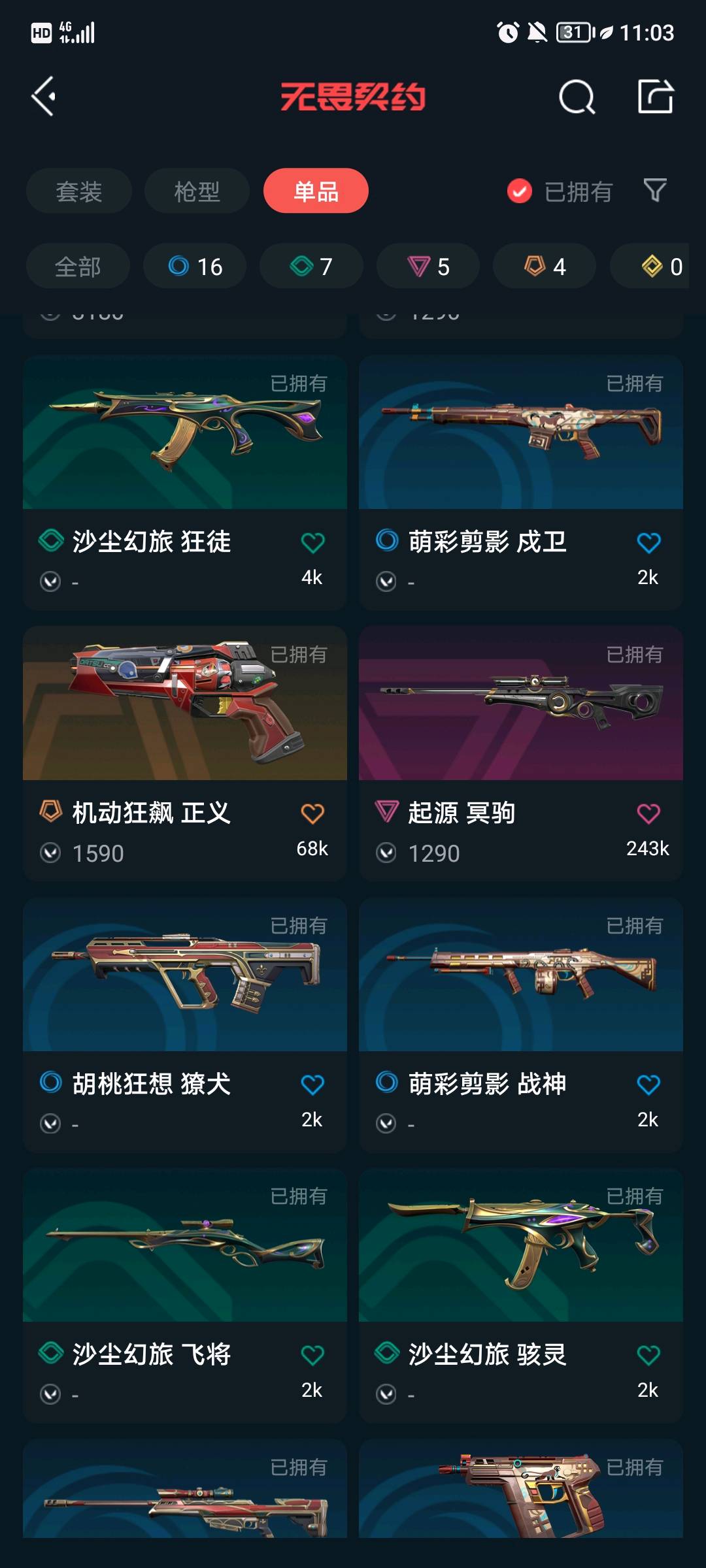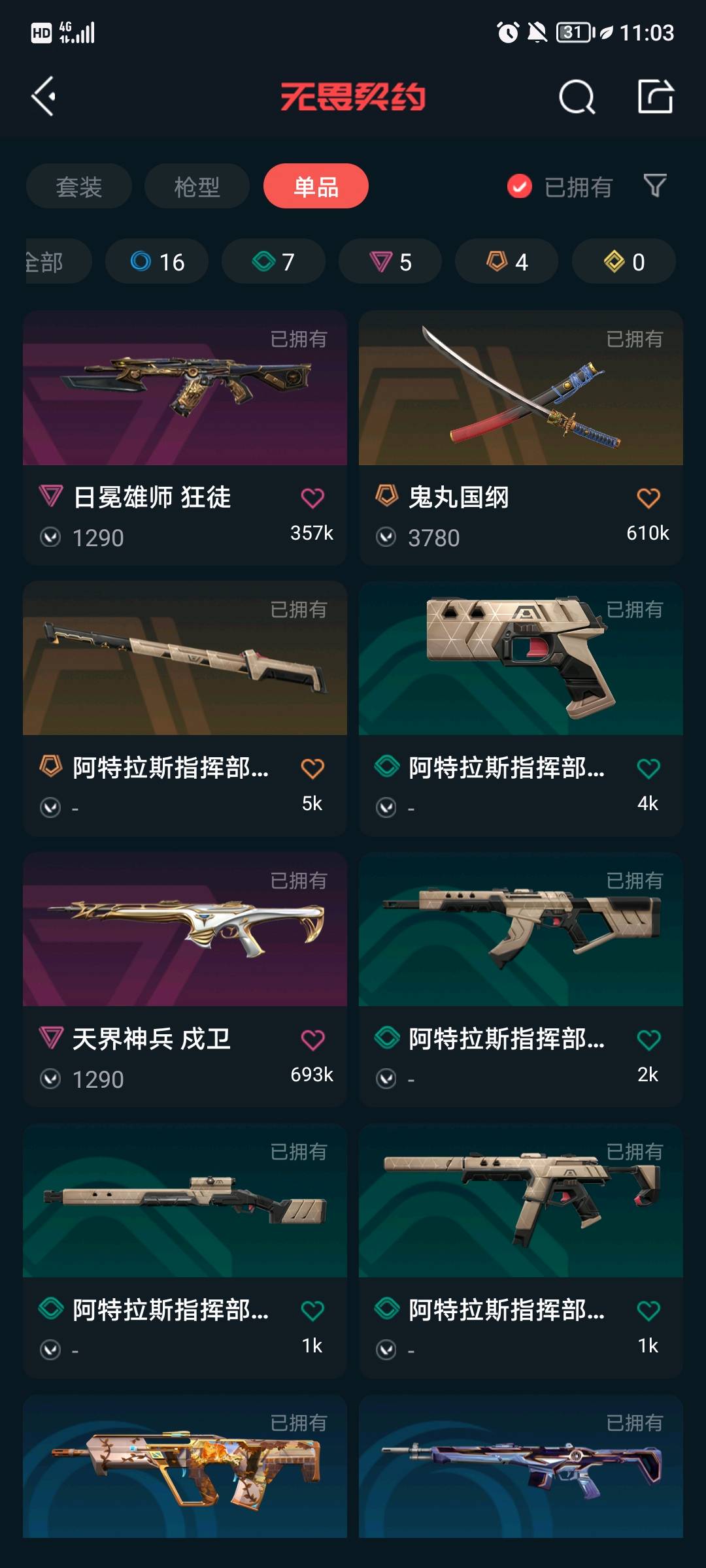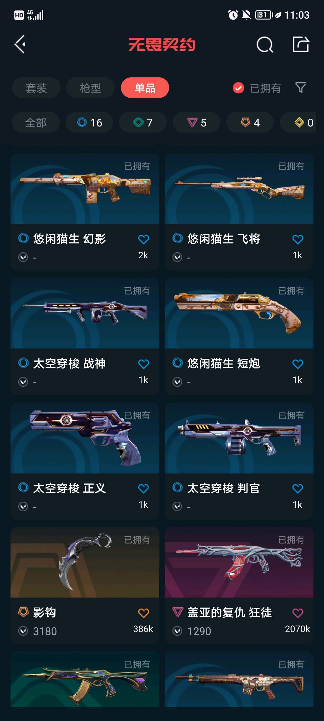 SH59 皮肤总价值107380,铂金I,总皮肤147,刀皮17枪皮130(终极4传奇18卓越25),套装7(终极1传奇3卓越3),创纪元套装,千灵华绽套装,双城之战套装,般若假面2.0套装,具体详情看图