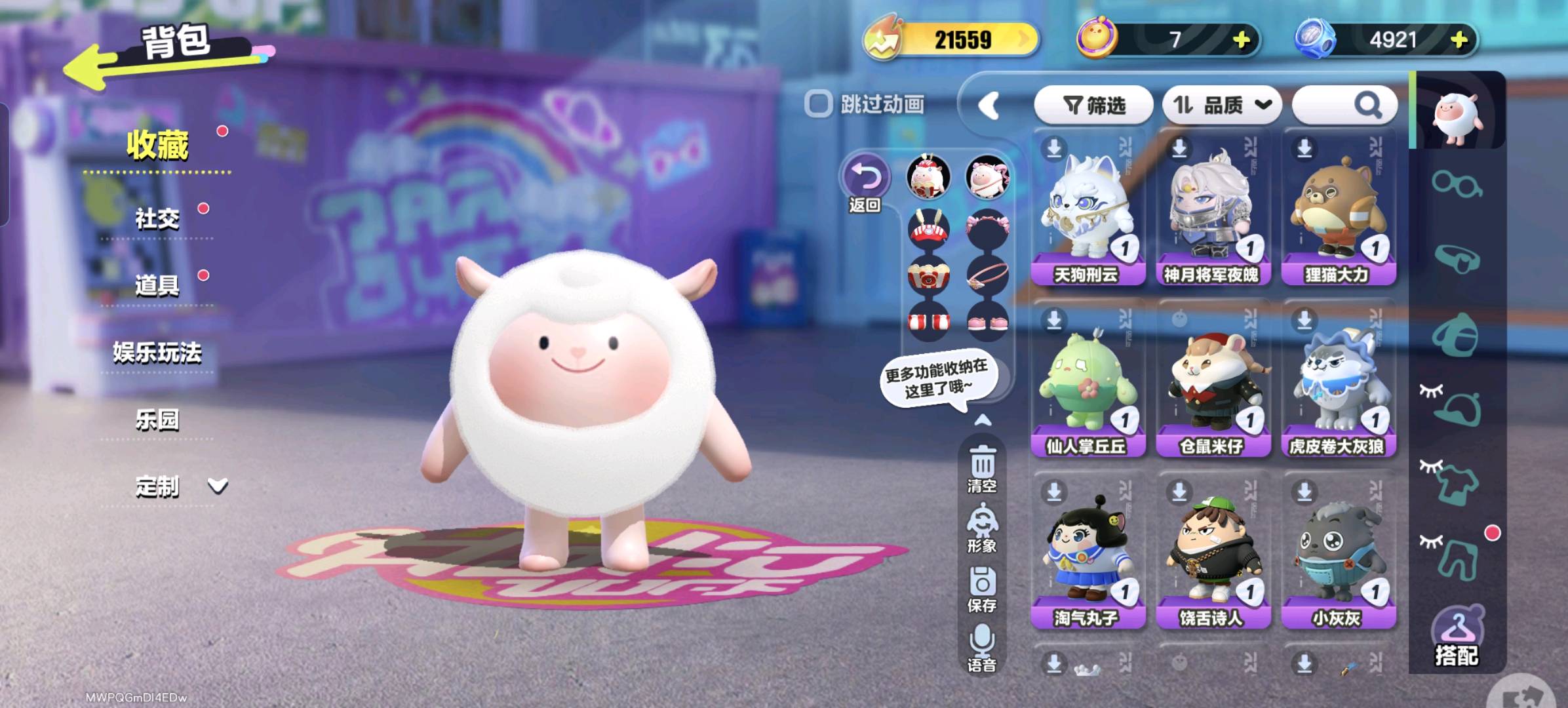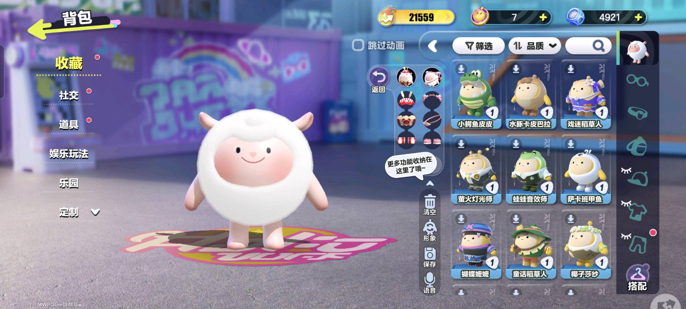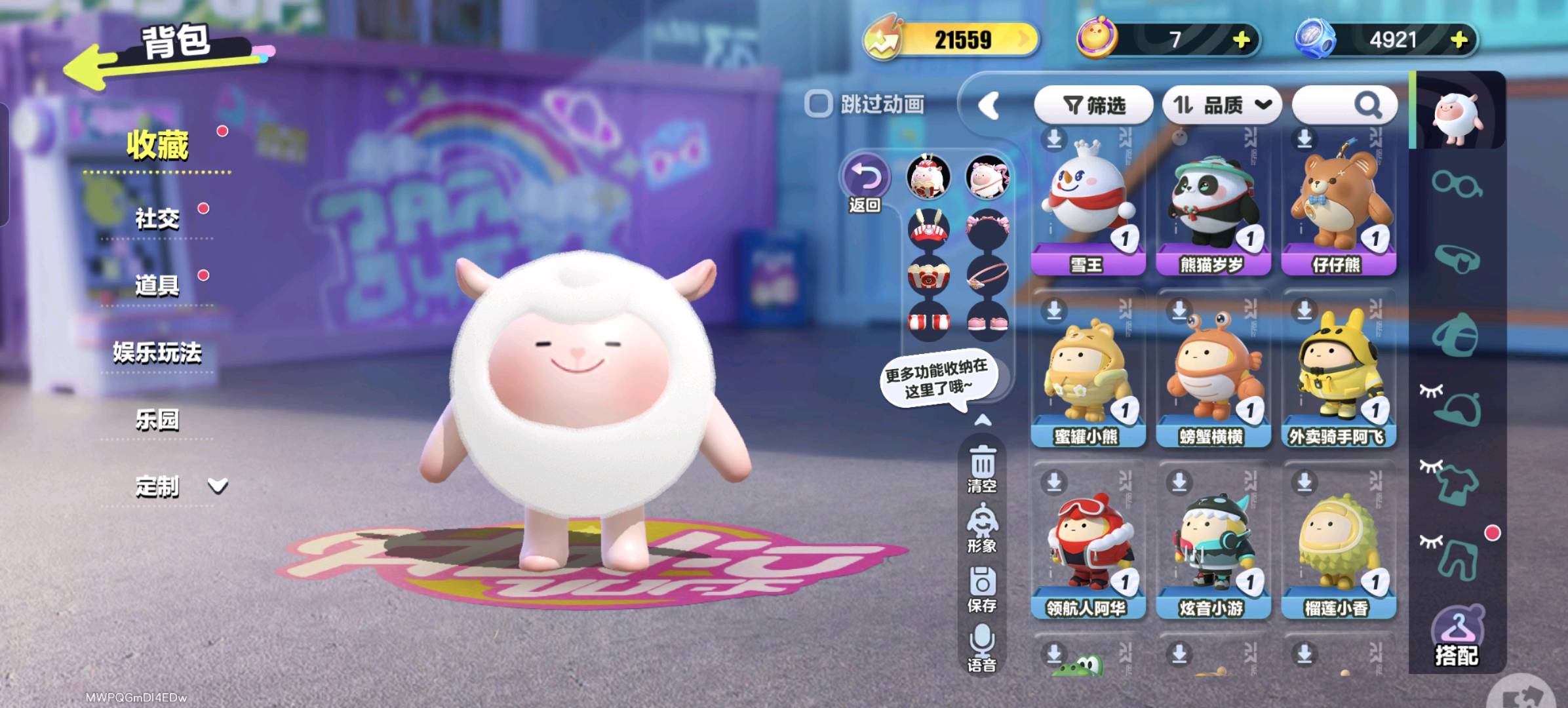 天穹骑士-湛 精灵莉斯尔 圣翼天使-恋 紫色套装: 小太阳葵葵 海藻偷偷 狸猫大力 航天员莱卡 仓鼠米仔 豚豚服务员 饶舌诗人 魔灯闪闪 雪王 菜鸟笨笨 三角龙小萨 失心熊 云村音音 八音盒温妮 水母尤莱亚 水母莱莱 机械鼓手贝克 吉他手卡萝 蓝樱爱丽丝 菠萝苏苏 仔仔熊 DongDong 甜心猫萝拉 哞哞 淘气丸子