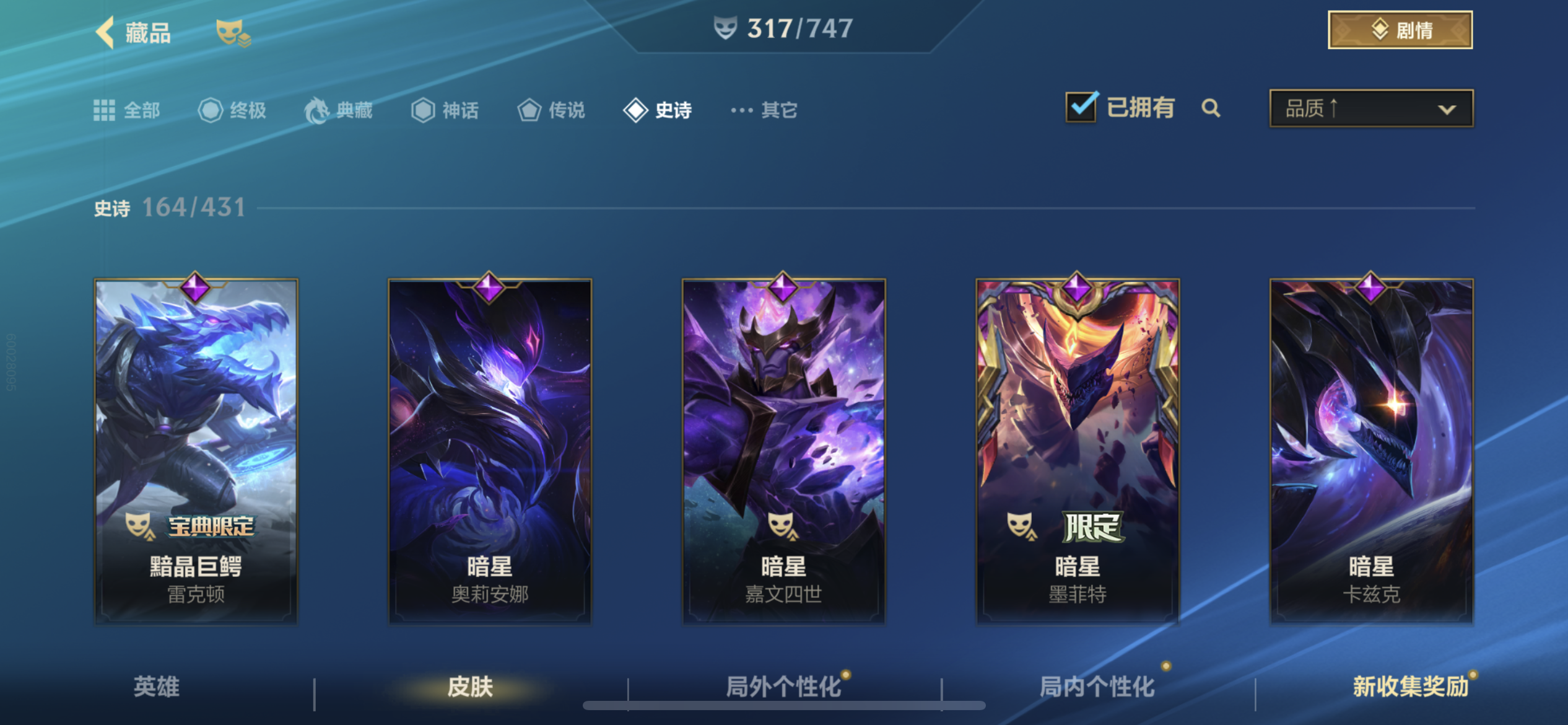 【LSC58】129英雄/529皮肤/超凡大师/超武乾坤:虹影 劫/摄魂使者 薇恩/夜星流火 金克丝/龙的传人 李青/乘龙破渊 李青/斗魂耀世 德莱文/战斗学院 白金学长 伊泽瑞尔/蝶恋春 凯特琳/灰烬骑士 派克/穿星魔锋 赵信/创星之灵 璐璐/掠星魔刃 卡萨丁/御星魔矢 艾希/斩星魔剑 易/鸡里奥 加里奥/赵云 子龙 赵信/耀星女神 拉克丝/烈焰美人 薇恩/神龙烈焰 金克丝/闭月之颜 貂蝉 卡特琳娜/美猴王 孙悟空/水晶玫瑰 拉克丝/水晶玫瑰 永恩/水晶玫瑰 蔚/关羽 云长 泰达米尔/涂鸦小队 莎弥拉/涂鸦小队 艾克/山海绘卷 烬/山海绘卷 亚托克斯/山海绘卷 沃利贝尔/吕布 奉先 嘉文四【LSC83】130英雄/484皮肤/1典藏/7神话/50传说/279史诗/超凡大师/超武乾坤:孤拳 瑟提/夜星流火 金克丝/星之守护者 永绽盛芒 阿狸/至臻 水晶玫瑰 格温/黎明使者 破晓之殇 佛耶戈/龙的传人 李青/巡游踏云霄! 墨菲特/地底世界 崔斯特/广寒仙子 嫦娥 黛安娜/创星之灵 璐璐/斩星魔剑 易/养蜂人 辛吉德/鸡里奥 加里奥/钢铁军团 拉克丝/赵云 子龙 赵信/烈焰美人 薇恩/虎痴之拳 蔚/闭月之颜 貂蝉 卡特琳娜/张辽 文远 盖伦/水晶玫瑰 嘉文四世/水晶玫瑰 拉克丝/水晶玫瑰 伊泽瑞尔/水晶玫瑰 阿卡丽/水晶玫瑰 永恩/水晶玫瑰 蔚/水晶玫瑰 娑娜/关羽 云长 泰达米尔