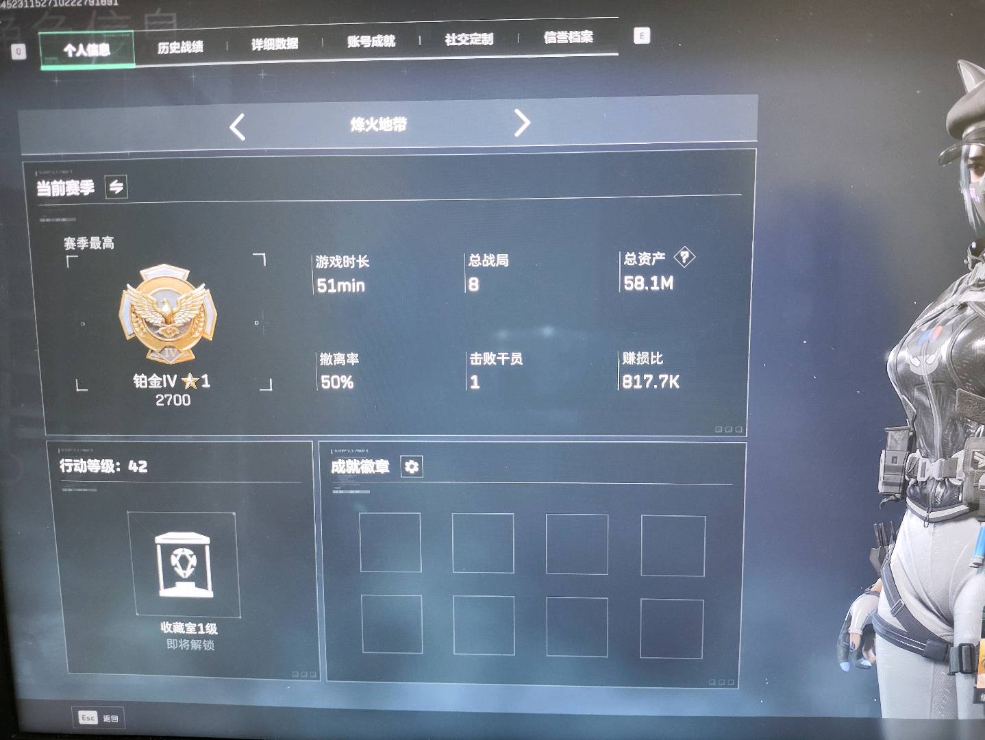 SH2581 总资产386M,哈夫币10117w,非洲之心,枪皮数量243,战场等级:37 上等兵,行动等级:60 铂金,角色皮肤数量7,红狼-蚀金玫瑰/骇爪-水墨云图/牧羊人-街头之王/威龙-铁面判官/威龙-壮志凌云/威龙-蛟龙特战队/无名-夜鹰,近战-黑海/近战-影锋/近战-怜悯/近战-赤枭/近战-黑鹰,Vector冲锋枪-美杜莎(优品C),安全箱等时效性道具请以游戏内数据为准;详情请看图