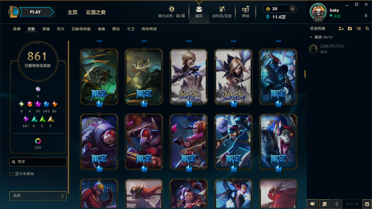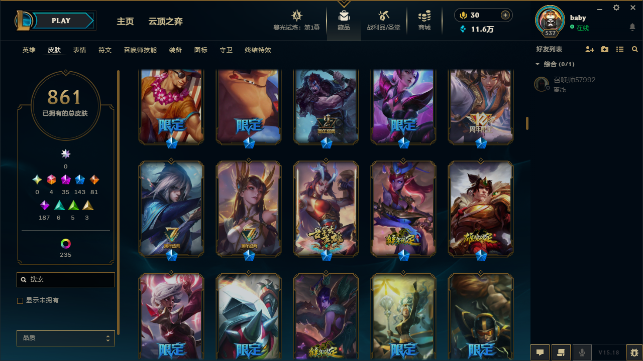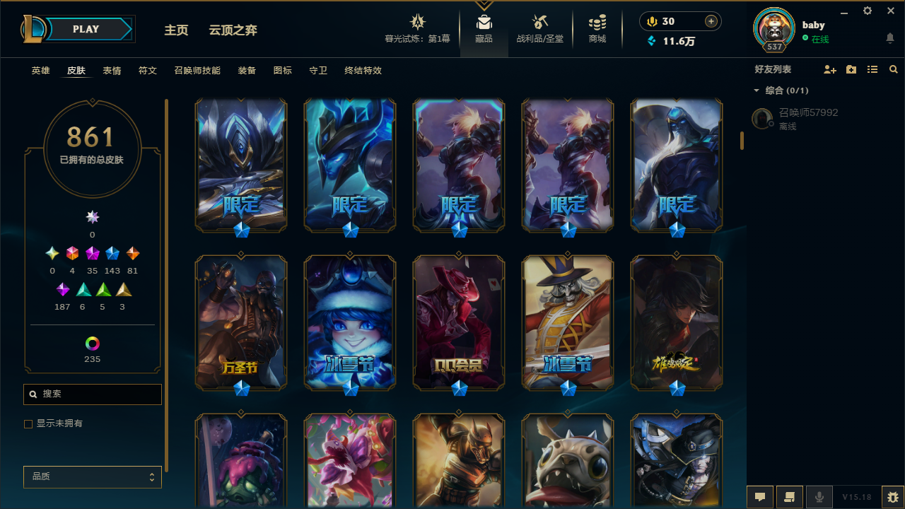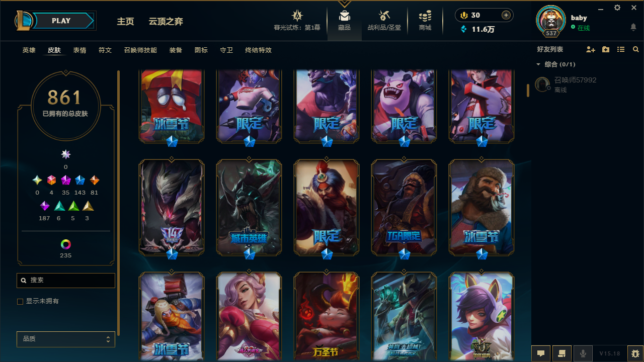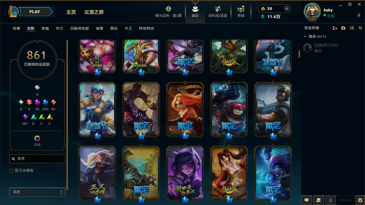 【网通】【扭曲丛林】169英雄-329皮肤-52炫彩169英雄-329皮肤-52炫彩-段位:青铜 丧尸布兰德 邪鸦魅影妖姬 海贼瑞兹 无头骑士人马 S1FNC嘉文四世 S2暗杀星奥莉安娜 S2暗杀星努努 S3SKTT1劫 S3SKTT1李青 S4SSW锤石 S4SSW泰隆 S4SSW炼金 S5SKTT1卡莉丝塔 S8IG卡莎 S8IG妖姬 胜利枪神格雷福斯 胜利女神奥利安娜 胜利之剑剑魔 持胡萝卜的雪人剑圣 冬季仙境卡尔玛 冬季仙境奶妈 平安夜女神琴女 魄罗骑士瑟庄妮 圣诞精灵崔丝塔娜 圣诞老人酒桶 幸福女神乐芙兰 狂心冰王老鼠 觅心游侠卢锡安 10周年安妮 10周年神凰行者瑞羽圣凰艾尼维亚 2周年勇敢的心德莱厄斯 五周年阿狸 6周年伊泽瑞尔 猴年美猴王孙悟空 海克斯科技雷克顿 至臻 K/DA ALL OUT卡莎 至臻 真实伤害 赛娜 至臻 真实伤害 亚索 冠军之箭艾希 野兽猎人蛮王 生化领主蛮王 泳池派对雷克顿 防暴士兵炼金 泳池派对塔莉垭 泳池派对奥莉安娜 都铎王朝老鼠 冠军之血希瓦娜 泳池派对李青 防暴士兵格雷福斯 泳池派对格雷福斯 冠军之隐劫 冠军之隐劫 钢铁之翼艾尼维亚 庆典女皇艾尼维亚 冠军之志瑞兹 女猎手希维尔 野兽猎人德莱文 电玩战魂人马