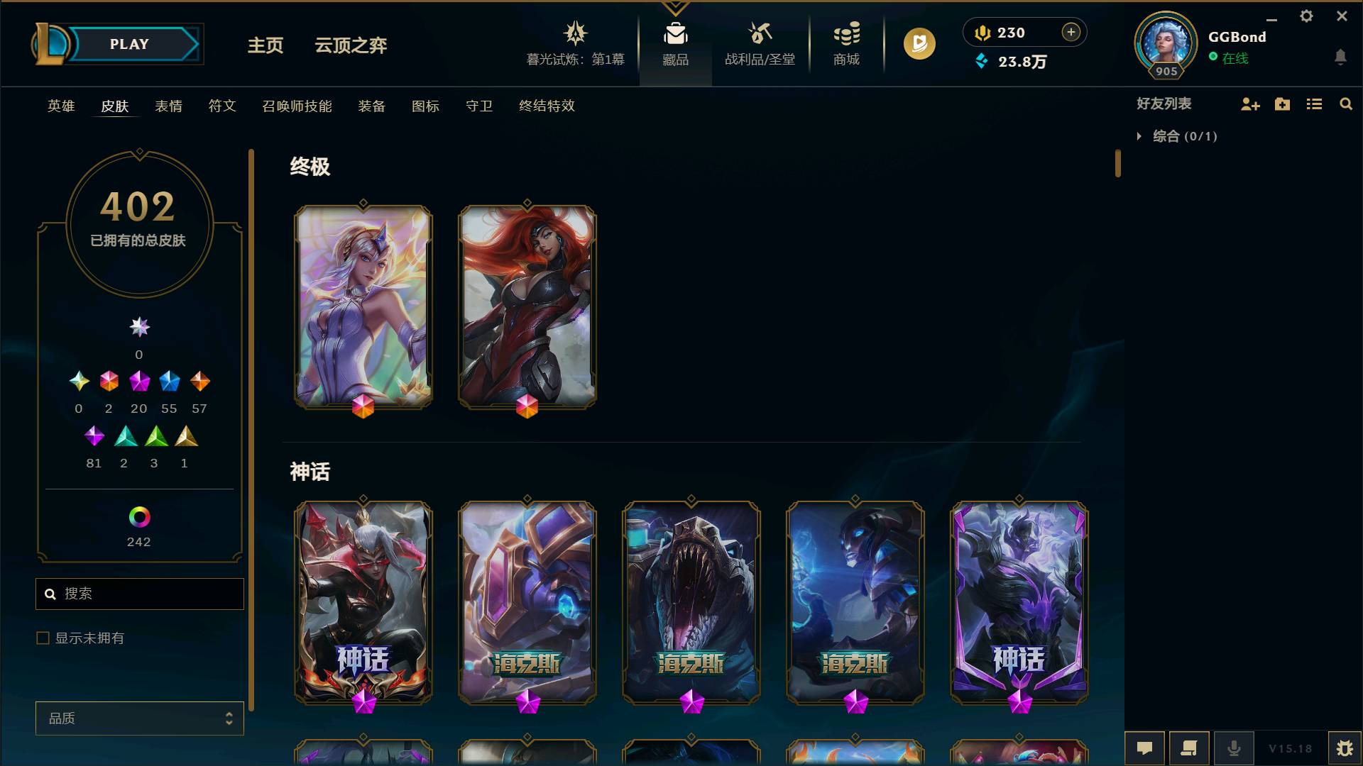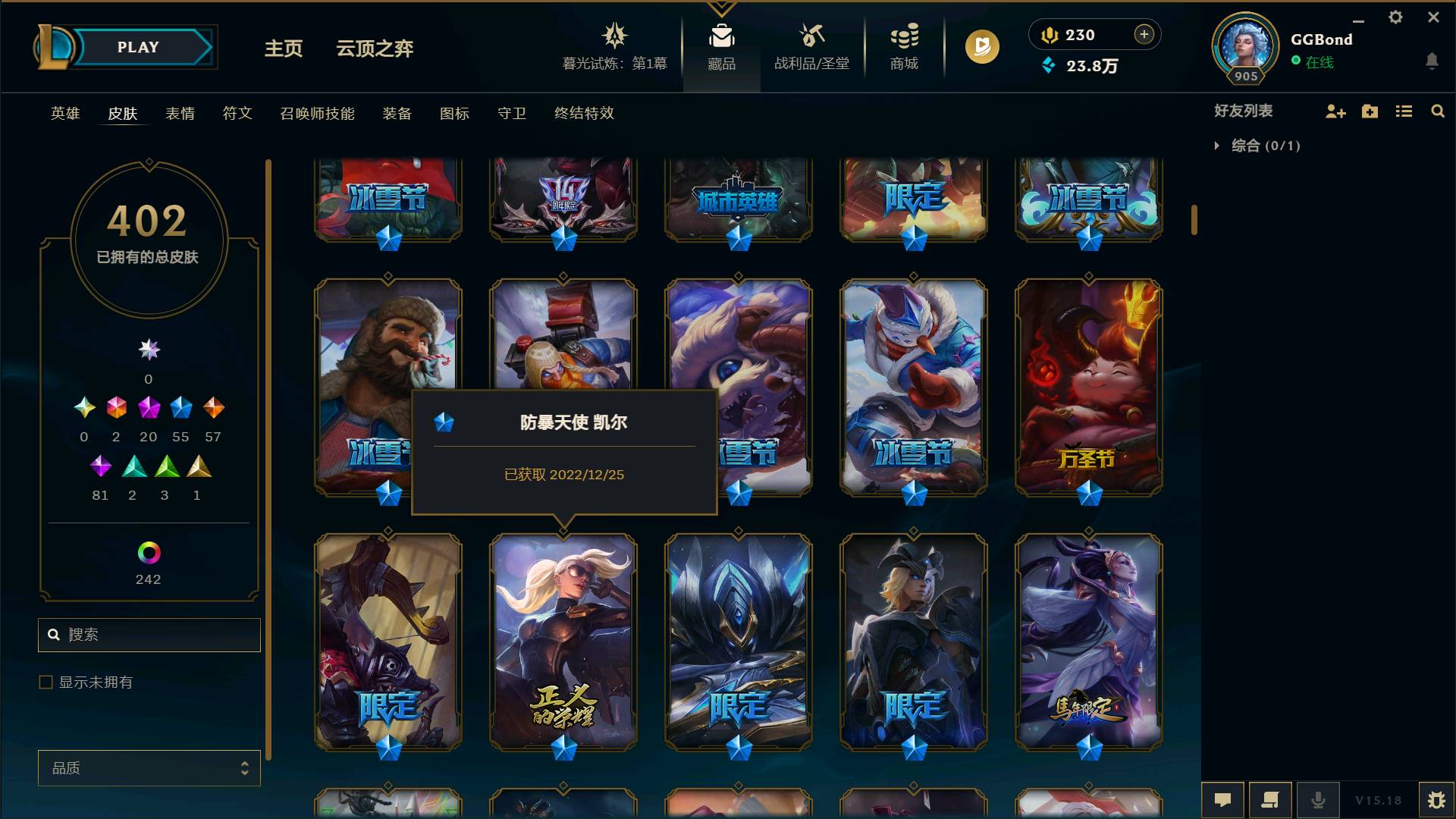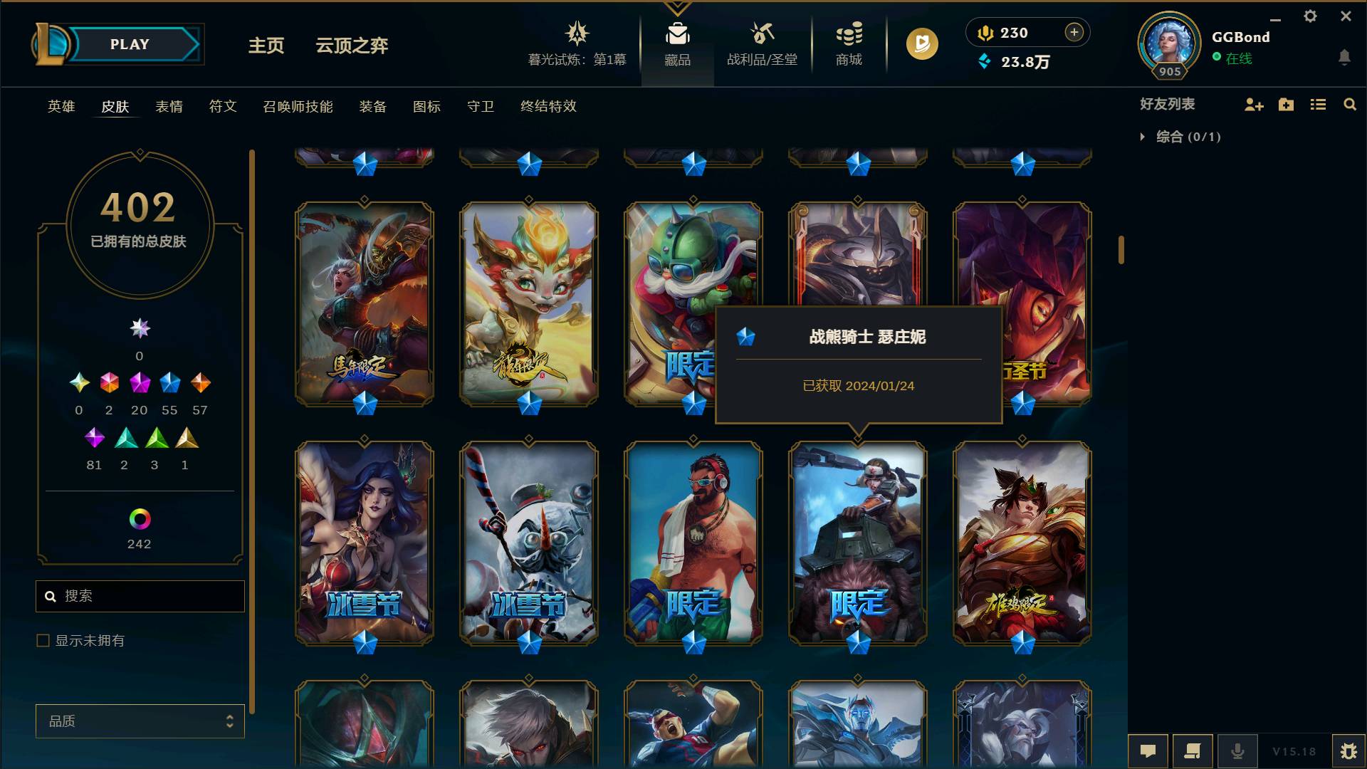 【网通】【扭曲丛林】169英雄-329皮肤-52炫彩169英雄-329皮肤-52炫彩-段位:青铜 丧尸布兰德 邪鸦魅影妖姬 海贼瑞兹 无头骑士人马 S1FNC嘉文四世 S2暗杀星奥莉安娜 S2暗杀星努努 S3SKTT1劫 S3SKTT1李青 S4SSW锤石 S4SSW泰隆 S4SSW炼金 S5SKTT1卡莉丝塔 S8IG卡莎 S8IG妖姬 胜利枪神格雷福斯 胜利女神奥利安娜 胜利之剑剑魔 持胡萝卜的雪人剑圣 冬季仙境卡尔玛 冬季仙境奶妈 平安夜女神琴女 魄罗骑士瑟庄妮 圣诞精灵崔丝塔娜 圣诞老人酒桶 幸福女神乐芙兰 狂心冰王老鼠 觅心游侠卢锡安 10周年安妮 10周年神凰行者瑞羽圣凰艾尼维亚 2周年勇敢的心德莱厄斯 五周年阿狸 6周年伊泽瑞尔 猴年美猴王孙悟空 海克斯科技雷克顿 至臻 K/DA ALL OUT卡莎 至臻 真实伤害 赛娜 至臻 真实伤害 亚索 冠军之箭艾希 野兽猎人蛮王 生化领主蛮王 泳池派对雷克顿 防暴士兵炼金 泳池派对塔莉垭 泳池派对奥莉安娜 都铎王朝老鼠 冠军之血希瓦娜 泳池派对李青 防暴士兵格雷福斯 泳池派对格雷福斯 冠军之隐劫 冠军之隐劫 钢铁之翼艾尼维亚 庆典女皇艾尼维亚 冠军之志瑞兹 女猎手希维尔 野兽猎人德莱文 电玩战魂人马