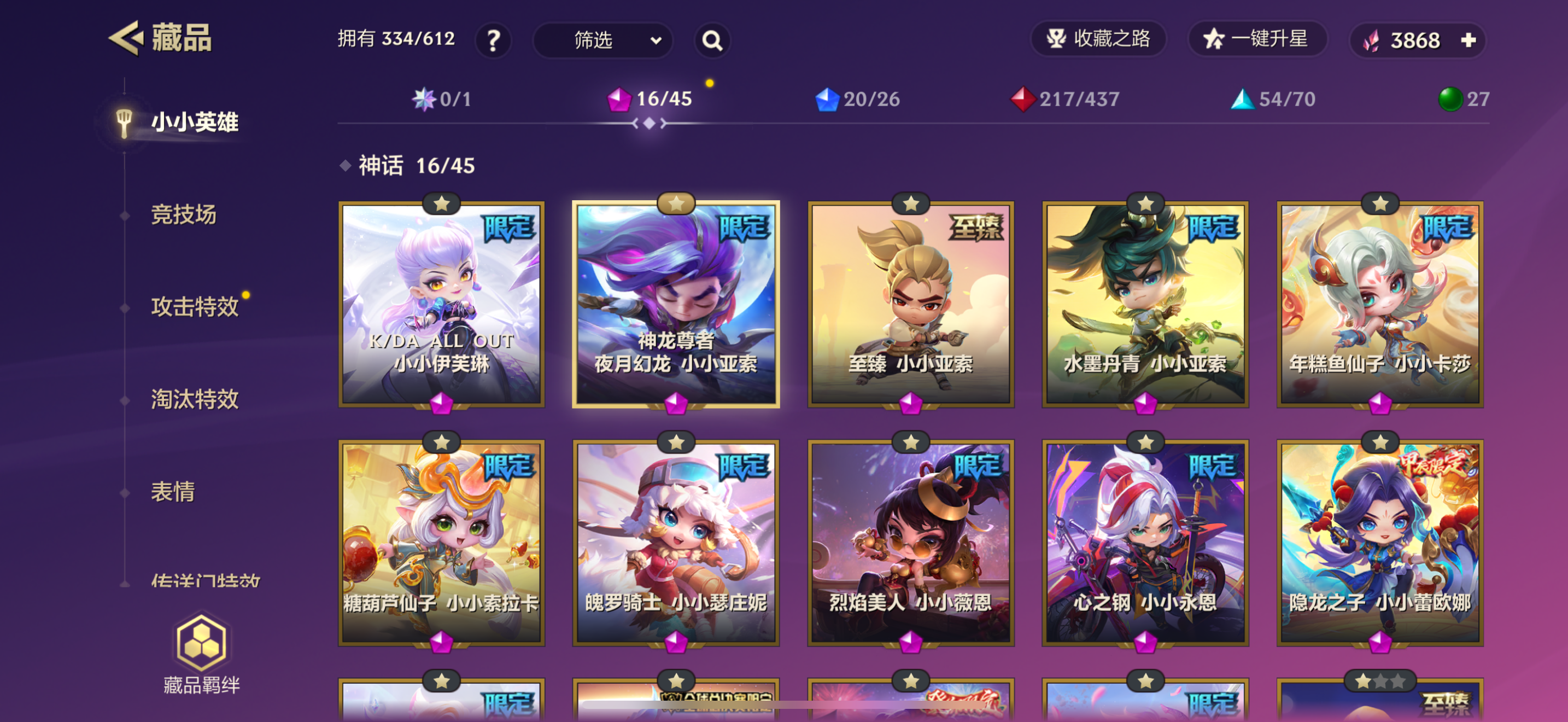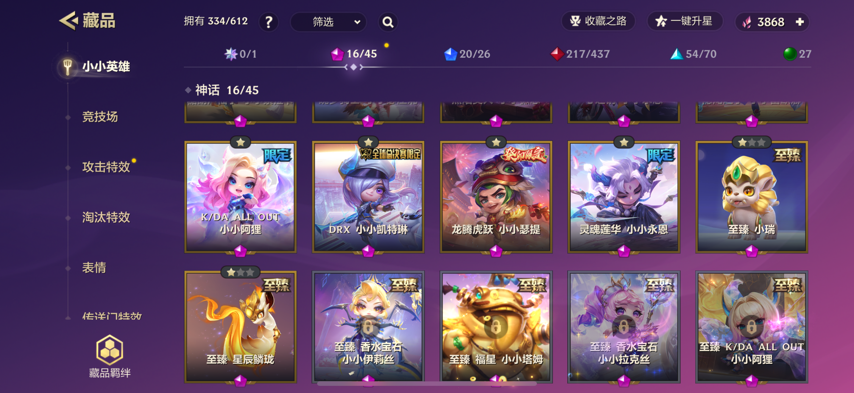 [10600493]【CC334】【CC0121】 3神话小小英雄 至臻KDA ALL OUT小小阿狸 至高之拳小小李青 魄罗骑士 小小瑟庄妮 魄罗海岛乐园 凛冬之爪部落 德玛西亚团结圣坛 幻境竞技场 详情请看图