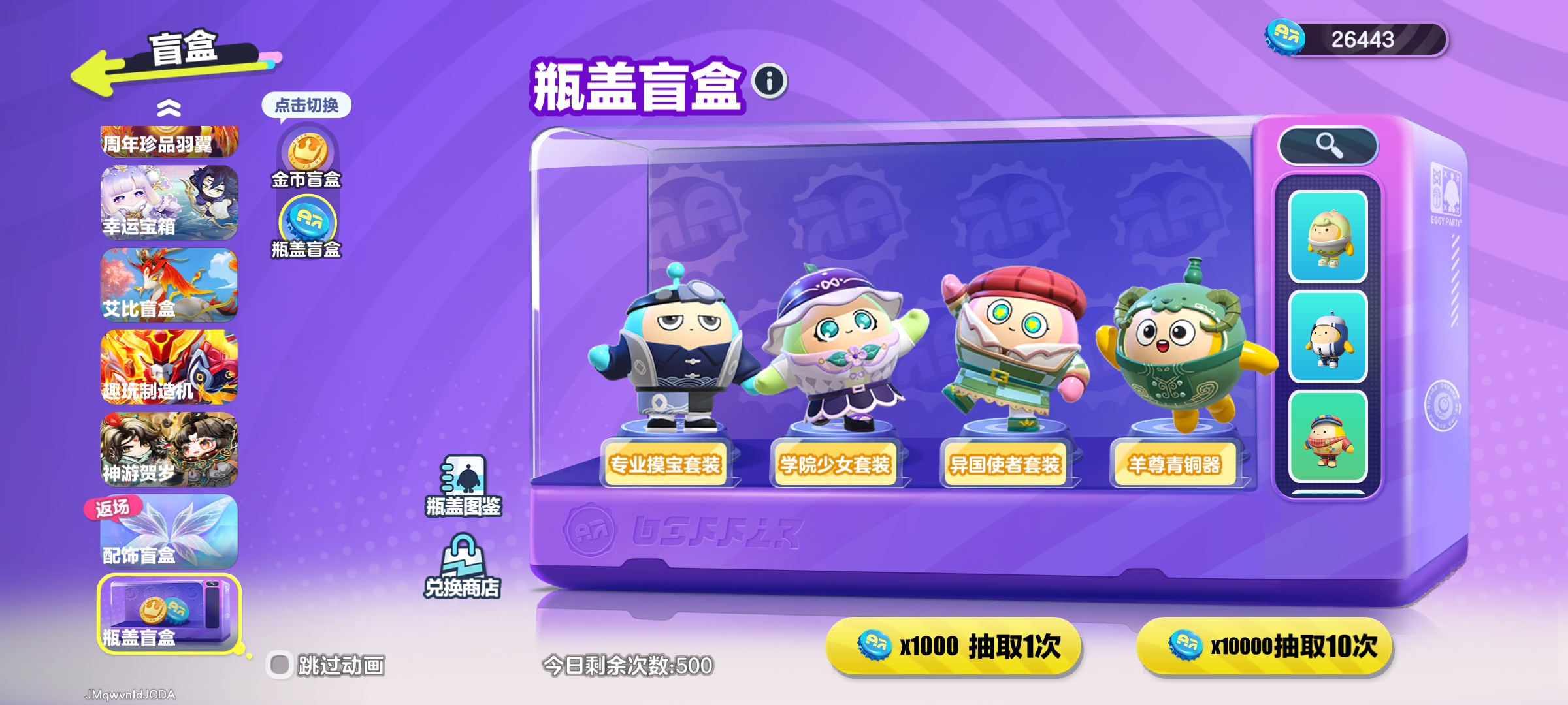 天穹骑士-湛 精灵莉斯尔 圣翼天使-恋 紫色套装: 小太阳葵葵 海藻偷偷 狸猫大力 航天员莱卡 仓鼠米仔 豚豚服务员 饶舌诗人 魔灯闪闪 雪王 菜鸟笨笨 三角龙小萨 失心熊 云村音音 八音盒温妮 水母尤莱亚 水母莱莱 机械鼓手贝克 吉他手卡萝 蓝樱爱丽丝 菠萝苏苏 仔仔熊 DongDong 甜心猫萝拉 哞哞 淘气丸子