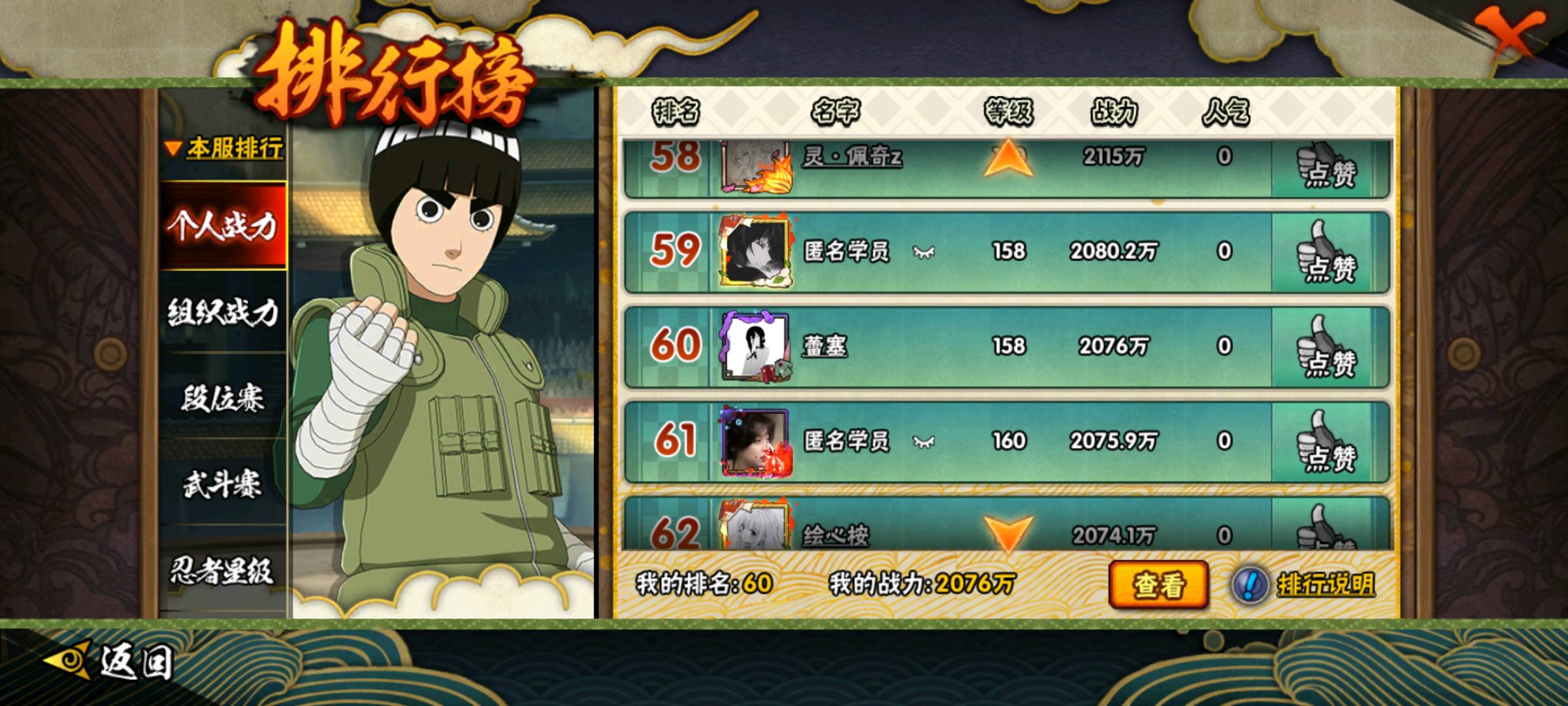 苹果Q309区:可二次实名 VIP13,战力:13070313,S忍者数量:39,A忍者数量:58,本服排名:187,战区排名:未上榜,通灵兽数量:22,时装数:18,段位:暗部1阶,忍者星数:68711s❤20A佩恩 「天道」;大蛇丸;千手扉间;纲手;自来也;千手柱间;长门 「秽土转生」;艾 「四