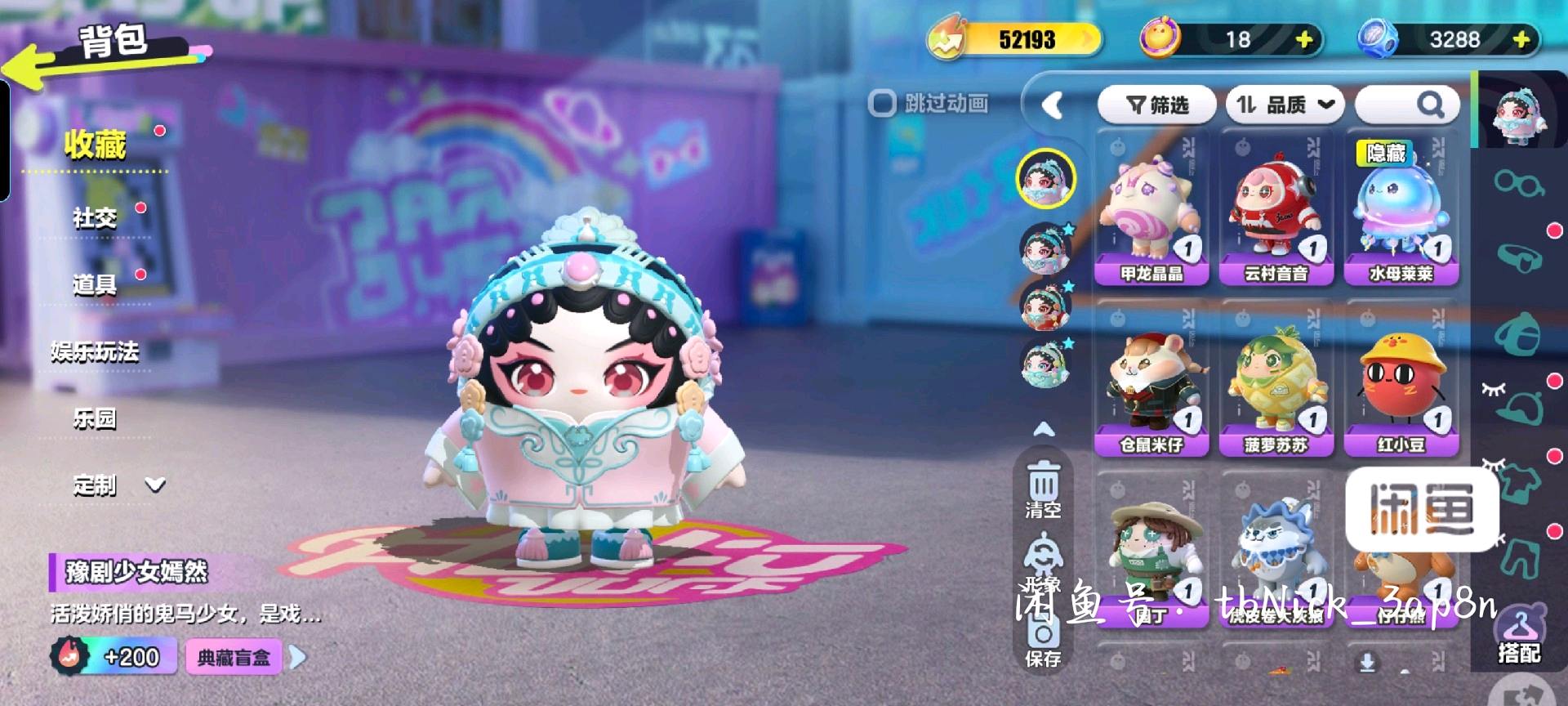 天穹骑士-湛 精灵莉斯尔 圣翼天使-恋 紫色套装: 小太阳葵葵 海藻偷偷 狸猫大力 航天员莱卡 仓鼠米仔 豚豚服务员 饶舌诗人 魔灯闪闪 雪王 菜鸟笨笨 三角龙小萨 失心熊 云村音音 八音盒温妮 水母尤莱亚 水母莱莱 机械鼓手贝克 吉他手卡萝 蓝樱爱丽丝 菠萝苏苏 仔仔熊 DongDong 甜心猫萝拉 哞哞 淘气丸子