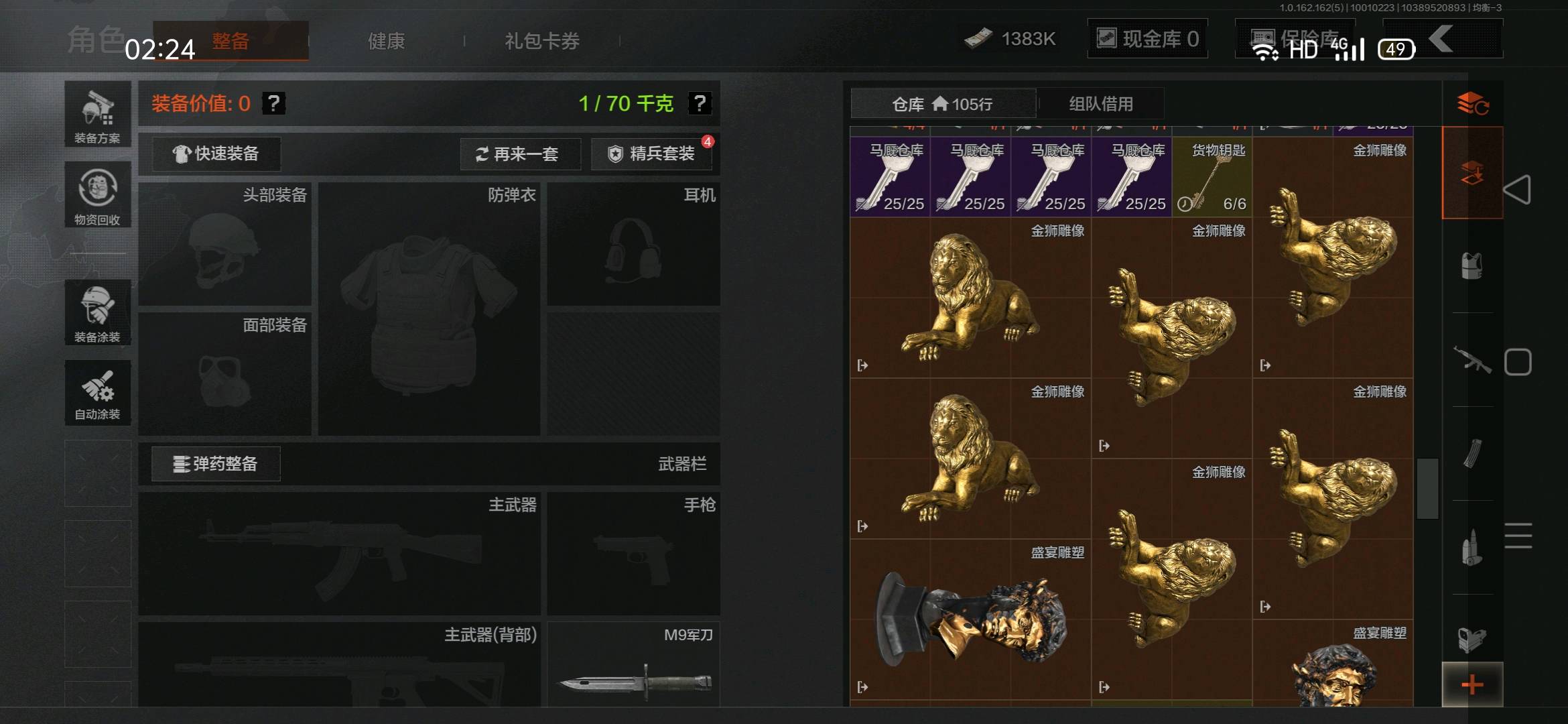 [11608968]库存价值101.2 2近战武器 1金枪皮 可修改实名 优质装备:长缨风掣·RPK16 柯恩币数量:387033 近战武器:工兵铲,来战·开山刀 紫色枪皮:灰鼠幻歌·P90,骑士之剑·AKS74U,竞技·M110,竞技·MDR,火绒·AN94 角色装扮(紫):都市夜影套装DSTW763加【仓库价值5.9M 柯恩币633442 1套装 15枪皮 2刀 工兵铲 开山刀 】安卓Q-等级30-科恩币633442 【枪皮】来战·AKM 来战·AK74N 骑士之剑·AKS74U 07式林地迷彩·QBZ191 玄戈梨花·MPX 森林迷彩·MP5 玄戈梨花·VSS 【刀皮】 工兵铲 来战·开山刀