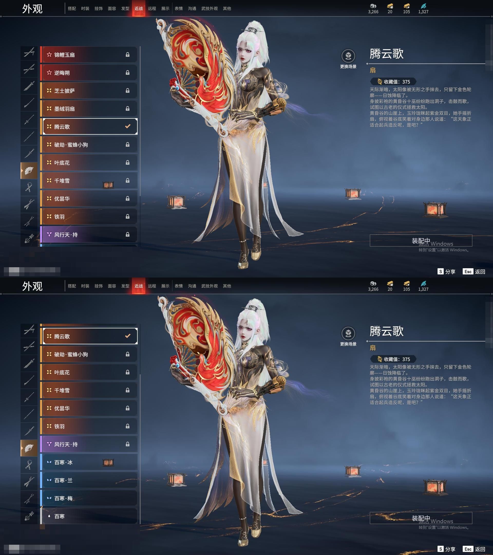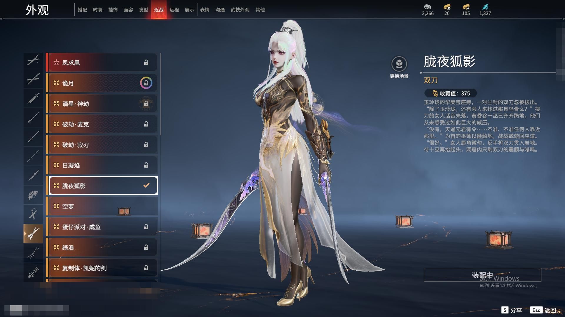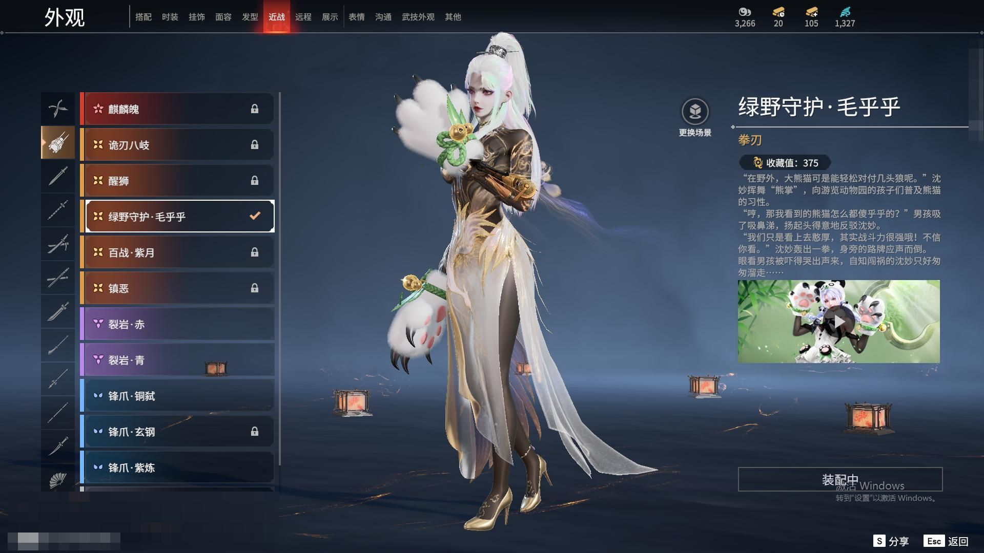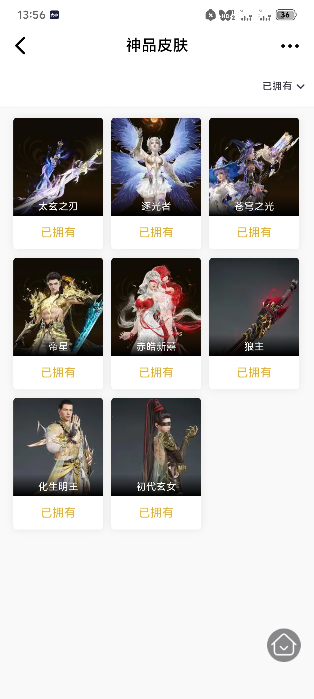 MYJ85网易官服等级:142 5红皮11金皮 【红皮】 监兵凶神(胡为皮肤) 少阳剑(长剑皮肤) 狼主(阔刀皮肤) 化生明王(天海皮肤) 蝶梦(胡桃皮肤) 【金皮】 斗罗大陆·唐三 封神录·申公豹 封神录·姜子牙 梨园传奇·柳生 浣烟纱 追猎 御宅罗梦 麟鹿大凯 贵胄少女 伏波龙女 碧水青天