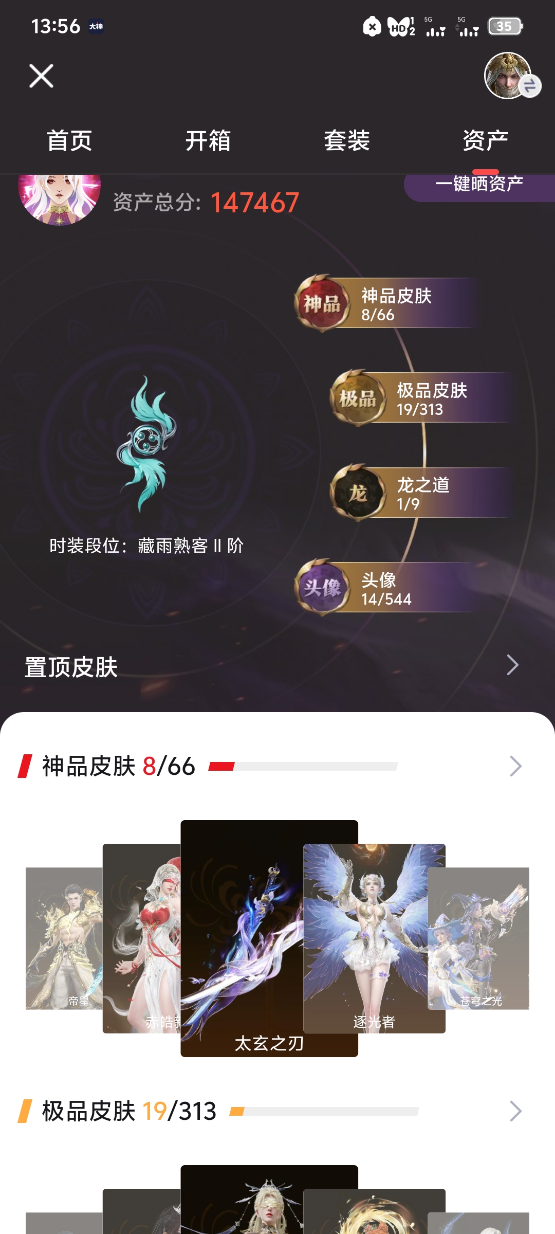 [11545988]双马尾女双马尾男!H10091.官服.8红304金, 技能奥义2, 总收藏值172274, 幻丝13833, 等级357, 三排黄金3, 通行证未升级Lv.1, 双马尾女双马尾男, 8红色神品: 赤皓新囍/初代玄女/星辉魔纱/戎金狼/熛怒炼火/蝶梦/泣珠龙纱/少阳剑【技能奥义】 炎烈珠/勾玉 宁红夜: 赤皓新囍/初代玄女/山川润/夜华朝/九阴圣女/碧水青天/泠川发/簪缨发/双马尾女 沈妙: 星辉魔纱/双马尾女 天海: 双马尾男 殷紫萍: 风雨谐/萍之缘/双马尾女 特木尔: 戎金狼/致命玩笑/唐三/海神发/双马尾男 季沧海: 熛怒炼火/食神/杰洛特/巨阙/信手斩龙/夏神祝融/腾烟发/江海发/烈火发/白狼发/含锋发/双马尾男 胡桃: 蝶梦/御宅花织/贵胄少女/月丹发/双马尾女 崔三娘: 泣珠龙纱/叶奈法/湘夫人/阿娜希塔/伏波龙女/术士发/双马尾女 岳山: 过江龙/双马尾男 无尘: 黄庭道/朝闻道/申公豹/双马尾男 顾清寒: 龙吉公主/紫微星命/禄运玉霄/仲夏霜华/绯霜发/红鸾星发/双马尾女 武田信中: 双马尾男 迦南: 玉叶景/浣烟纱/蜃楼魅影/琳琅发/双马尾女 胡为: 不败擂主/蛤蟆头领/福瑞天泽/桀骜发/双马尾男 季莹莹: 干将莫邪/缱绻发/双马尾女 玉玲珑: 妲己/广目天王/商月发/笼烟芍药发/双马尾女 哈迪: 夜绸袍/秀逸发/双马尾男 魏轻: 寿竹云春/玄冥发/双马尾女 刘炼: 金财聚辉/姜子牙/仙风发/双马尾男 张起灵: 双马尾男 席拉: 暧冬茶馨/雪铃绮歌/蜜语发/双马尾女 蓝梦: 双马尾女 拳刃: 天狐 长剑: 少阳剑/亢龙/含光承影/壶中日月/湖女之剑/炼/赤霄/隐锋/2674原型 太刀: 天劫/数珠丸/毅魂守/鎏金勺/鬼切/魂花晶 横刀: 烛泪 阔刀: 不祥绯刃/听涛_/雷王锯/青石猊/龙蟠 斩马刀: 三尖两刃刀/斩怨/潮/麒麟牙 枪: 建木/灵木角/长虹 棍: 倒马棍/学宫之杖/糖果棍/降魔 匕首: 仙舞/判官笔/曼提柯尔之牙/桡尺刀/马首刀 扇: 耀夜流华/腾云歌/舞扇 双截棍: 咯咯/嘶风/夔牛槌/精武 双刀: 怨憎/新月/破重云/蛋仔派对咸鱼/诡月链魂 双戟: 光影裁决 连弩: 千机弩/咕咕/天牛翼/御气弩/穿云燕 鸟铳: 引冰落/戏祥云 火炮: 兔华笼/钻山/雪国礼炮/龙息 五眼铳: 丹鹤/凝冰魄/机枪豌豆 弓箭: 乌木弓/仙毫/豹胎易筋弓 8红色神品: 赤皓新囍/初代玄女/星辉魔纱/戎金狼/熛怒炼火/蝶梦/泣珠龙纱/少阳剑 挂饰: 昆仑龙神冠/桃夭扇/委蛇朱冠/狐灵面/狐九尾/福虎帽/虎绒耳/窥鲸镜/大光相/桂花糕/几何钥/雁落笠/葫芦兄弟蛤蟆头/安乐冠/灵皇/团上头了/青龙盔/银雪/倾城/捕光镜/青铜神树/能源电池/封神榜/粽香远/羽扇/星斗扇/鬼玺/碎釜/癸卯_/鹿铃角/素心流光卷/琵琶梳/六角铜铃/明心/沐芳花篮/雪鹿雄角/竞无间男/探险家墨镜/糖心/曜石面具/脑子给我/红绒暖女/捆龙索/洪兽/梦棠/判官簿/安歌帽/风羽面/防风帽/甲辰龙/红绒暖男/叠嶂宝鉴/蛋仔派对条状眼镜/夜露帽/九阴鳞/婵娟/怜光满/鲛人角/癸卯兔/鎏金螭龙/阴阳灵狐/青莲唤云铃/金瑛冠/雪鹿雌角/冬棱/霞彩 飞索: 毒刺