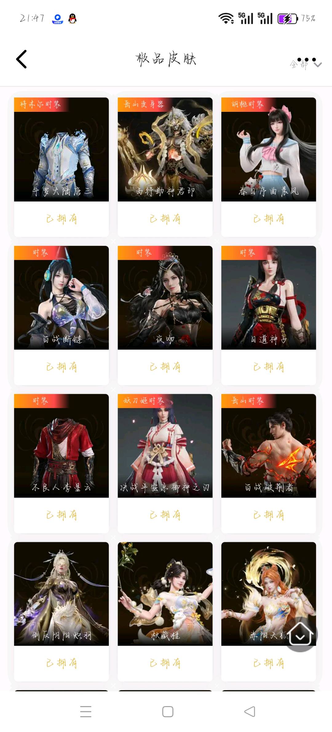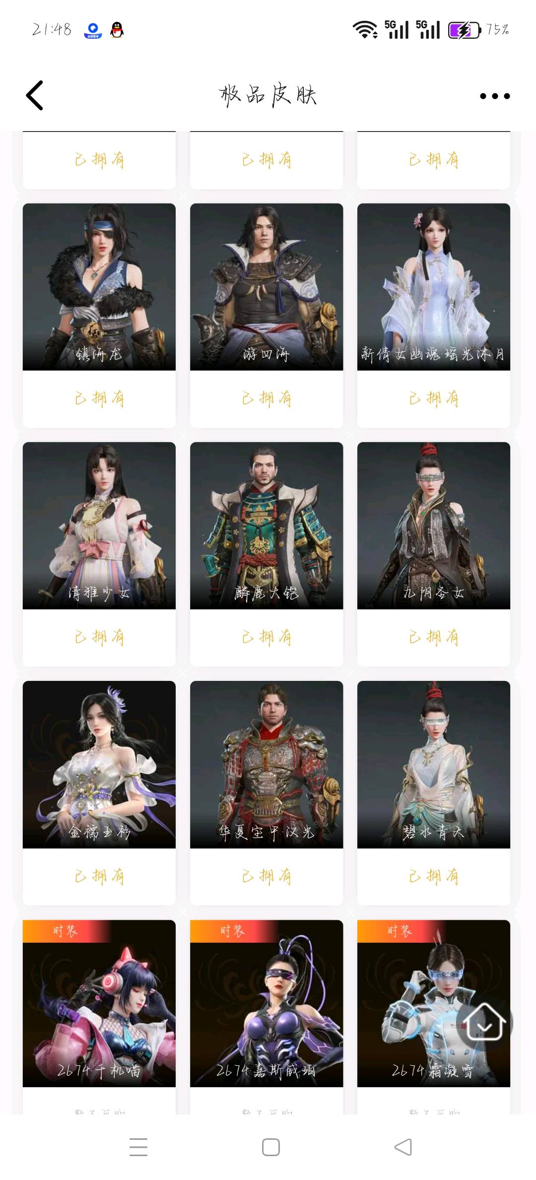 [11545988]双马尾女双马尾男!H10091.官服.8红304金, 技能奥义2, 总收藏值172274, 幻丝13833, 等级357, 三排黄金3, 通行证未升级Lv.1, 双马尾女双马尾男, 8红色神品: 赤皓新囍/初代玄女/星辉魔纱/戎金狼/熛怒炼火/蝶梦/泣珠龙纱/少阳剑【技能奥义】 炎烈珠/勾玉 宁红夜: 赤皓新囍/初代玄女/山川润/夜华朝/九阴圣女/碧水青天/泠川发/簪缨发/双马尾女 沈妙: 星辉魔纱/双马尾女 天海: 双马尾男 殷紫萍: 风雨谐/萍之缘/双马尾女 特木尔: 戎金狼/致命玩笑/唐三/海神发/双马尾男 季沧海: 熛怒炼火/食神/杰洛特/巨阙/信手斩龙/夏神祝融/腾烟发/江海发/烈火发/白狼发/含锋发/双马尾男 胡桃: 蝶梦/御宅花织/贵胄少女/月丹发/双马尾女 崔三娘: 泣珠龙纱/叶奈法/湘夫人/阿娜希塔/伏波龙女/术士发/双马尾女 岳山: 过江龙/双马尾男 无尘: 黄庭道/朝闻道/申公豹/双马尾男 顾清寒: 龙吉公主/紫微星命/禄运玉霄/仲夏霜华/绯霜发/红鸾星发/双马尾女 武田信中: 双马尾男 迦南: 玉叶景/浣烟纱/蜃楼魅影/琳琅发/双马尾女 胡为: 不败擂主/蛤蟆头领/福瑞天泽/桀骜发/双马尾男 季莹莹: 干将莫邪/缱绻发/双马尾女 玉玲珑: 妲己/广目天王/商月发/笼烟芍药发/双马尾女 哈迪: 夜绸袍/秀逸发/双马尾男 魏轻: 寿竹云春/玄冥发/双马尾女 刘炼: 金财聚辉/姜子牙/仙风发/双马尾男 张起灵: 双马尾男 席拉: 暧冬茶馨/雪铃绮歌/蜜语发/双马尾女 蓝梦: 双马尾女 拳刃: 天狐 长剑: 少阳剑/亢龙/含光承影/壶中日月/湖女之剑/炼/赤霄/隐锋/2674原型 太刀: 天劫/数珠丸/毅魂守/鎏金勺/鬼切/魂花晶 横刀: 烛泪 阔刀: 不祥绯刃/听涛_/雷王锯/青石猊/龙蟠 斩马刀: 三尖两刃刀/斩怨/潮/麒麟牙 枪: 建木/灵木角/长虹 棍: 倒马棍/学宫之杖/糖果棍/降魔 匕首: 仙舞/判官笔/曼提柯尔之牙/桡尺刀/马首刀 扇: 耀夜流华/腾云歌/舞扇 双截棍: 咯咯/嘶风/夔牛槌/精武 双刀: 怨憎/新月/破重云/蛋仔派对咸鱼/诡月链魂 双戟: 光影裁决 连弩: 千机弩/咕咕/天牛翼/御气弩/穿云燕 鸟铳: 引冰落/戏祥云 火炮: 兔华笼/钻山/雪国礼炮/龙息 五眼铳: 丹鹤/凝冰魄/机枪豌豆 弓箭: 乌木弓/仙毫/豹胎易筋弓 8红色神品: 赤皓新囍/初代玄女/星辉魔纱/戎金狼/熛怒炼火/蝶梦/泣珠龙纱/少阳剑 挂饰: 昆仑龙神冠/桃夭扇/委蛇朱冠/狐灵面/狐九尾/福虎帽/虎绒耳/窥鲸镜/大光相/桂花糕/几何钥/雁落笠/葫芦兄弟蛤蟆头/安乐冠/灵皇/团上头了/青龙盔/银雪/倾城/捕光镜/青铜神树/能源电池/封神榜/粽香远/羽扇/星斗扇/鬼玺/碎釜/癸卯_/鹿铃角/素心流光卷/琵琶梳/六角铜铃/明心/沐芳花篮/雪鹿雄角/竞无间男/探险家墨镜/糖心/曜石面具/脑子给我/红绒暖女/捆龙索/洪兽/梦棠/判官簿/安歌帽/风羽面/防风帽/甲辰龙/红绒暖男/叠嶂宝鉴/蛋仔派对条状眼镜/夜露帽/九阴鳞/婵娟/怜光满/鲛人角/癸卯兔/鎏金螭龙/阴阳灵狐/青莲唤云铃/金瑛冠/雪鹿雌角/冬棱/霞彩 飞索: 毒刺