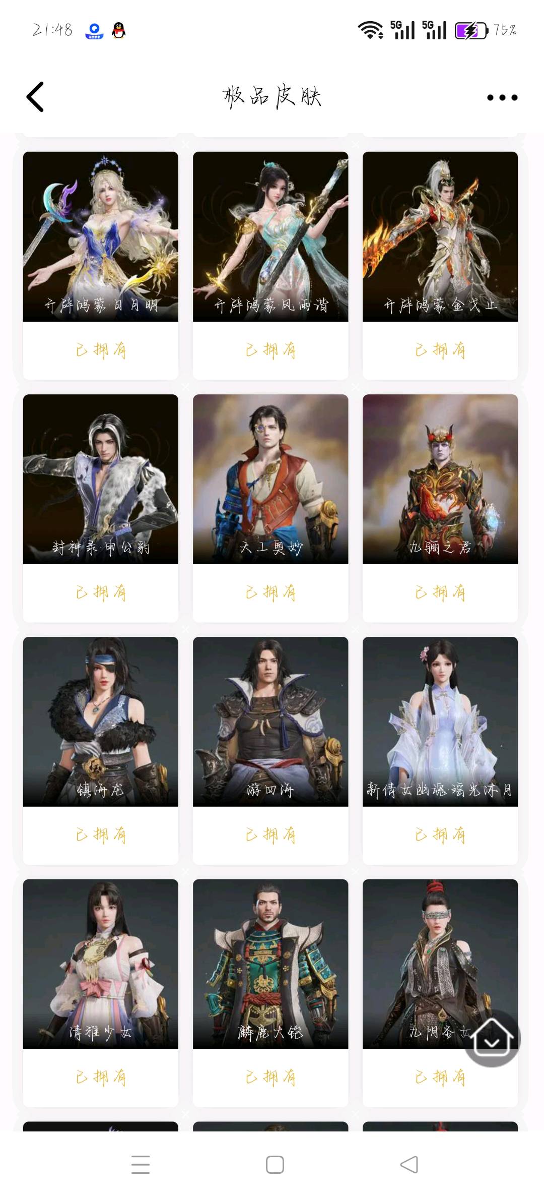 MYJ85网易官服等级:142 5红皮11金皮 【红皮】 监兵凶神(胡为皮肤) 少阳剑(长剑皮肤) 狼主(阔刀皮肤) 化生明王(天海皮肤) 蝶梦(胡桃皮肤) 【金皮】 斗罗大陆·唐三 封神录·申公豹 封神录·姜子牙 梨园传奇·柳生 浣烟纱 追猎 御宅罗梦 麟鹿大凯 贵胄少女 伏波龙女 碧水青天