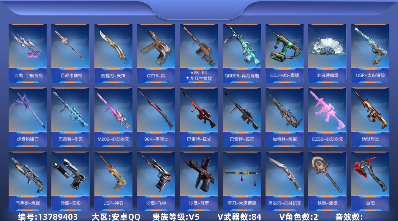 [13789403]V5 84英雄武器 2英雄角色 可二次 可修改实名 连体王者荣耀【v武器】:虎贲钩镰刀,QSZ92-华夏传说,PP19野牛-造纸术,蝴蝶刀-天神,CZ75-策,VSK-94-九黎兵主觉醒,QBB95-再战涿鹿,CBJ-MS-毒蜂,太白诗仙扇,USP-太白诗仙,CZS2-心动次元,M200-心动次元,巴雷特-冬灭,唐刀-大唐荣耀,秋逸觉醒,CZS2-血月,QBB95-极光,QCW05-变形金刚·大黄蜂,沙鹰-宇航兔兔,百战巾帼枪,加特林-炼狱,巴雷特-毁灭,巴雷特-极光,98K-黑骑士,血阳,战斧-无影,铁锹-孟德,尼泊尔-机械纪元,擎天觉醒,麒麟刺,斩魔剑-天使,神罚战斧,马来剑-毁灭,屠龙,地狱烈炎,沙鹰-修罗,沙鹰-飞电,USP-神罚,沙鹰-无影,气手枪-炼狱